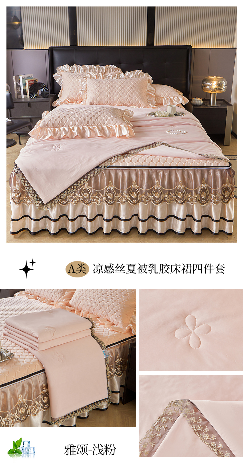 (总)好儿喜家纺 2026新款夏季夏被四件套乳胶床裙款-雅颂系列,雅颂-宾利蓝,雅颂-果绿,雅颂-奶白,雅颂-浅粉,雅颂-浅灰,雅颂-浅紫