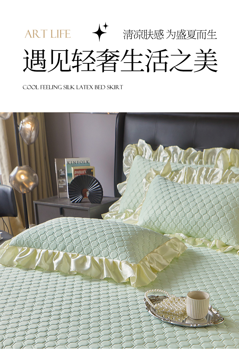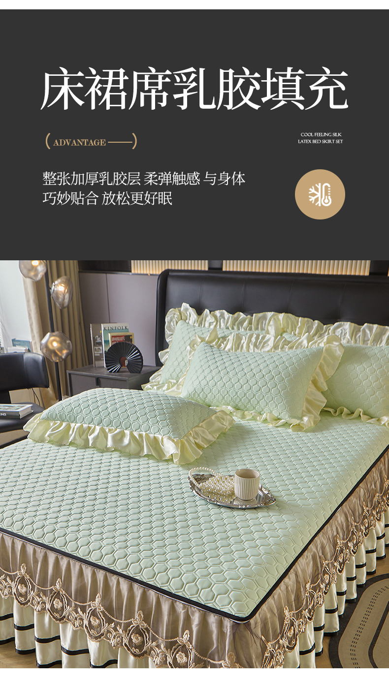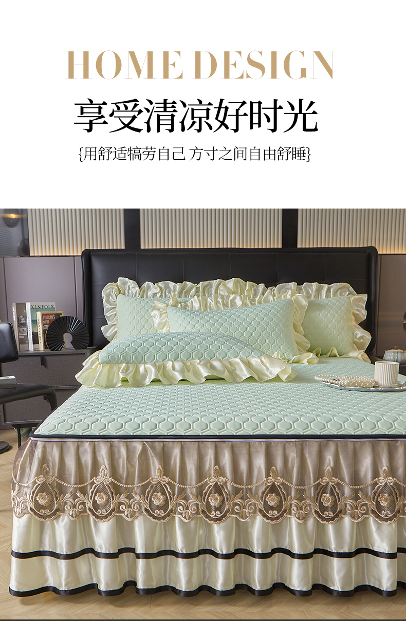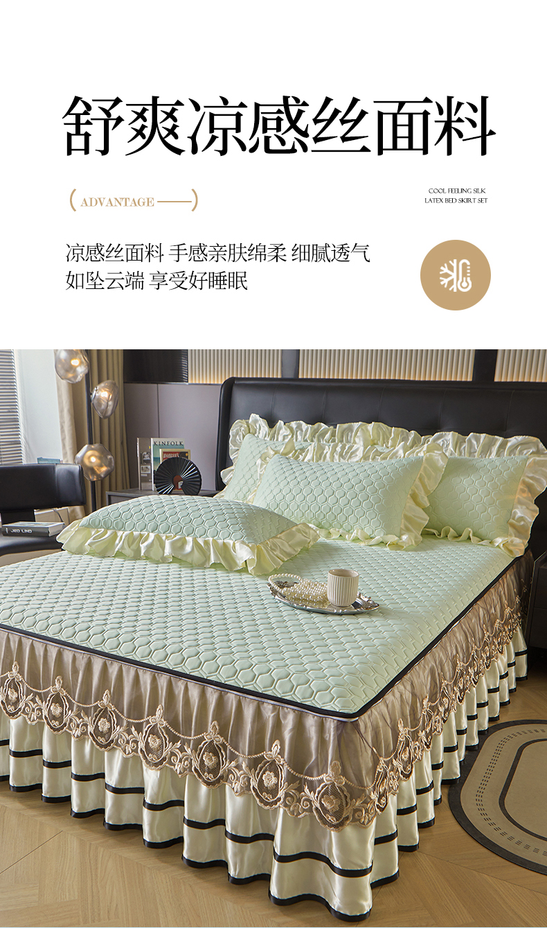 (总)好儿喜家纺 2024新款伊芙琳凉席床裙三件套,浅绿,橄榄绿,奶白,浅粉,浅蓝