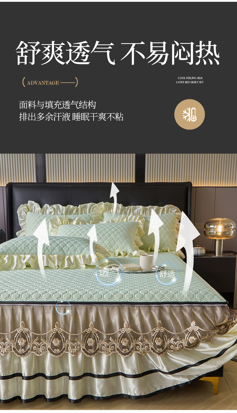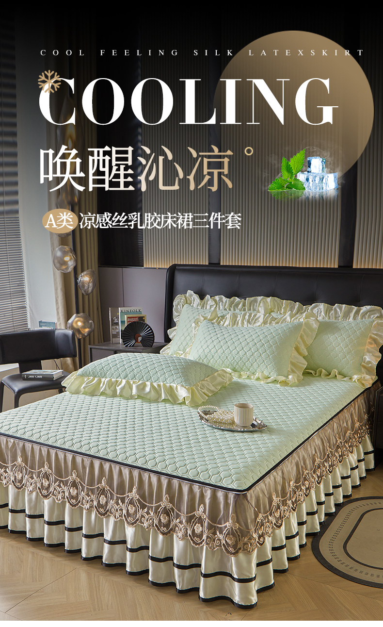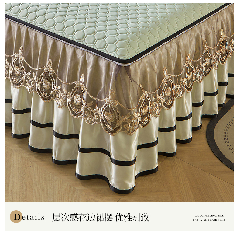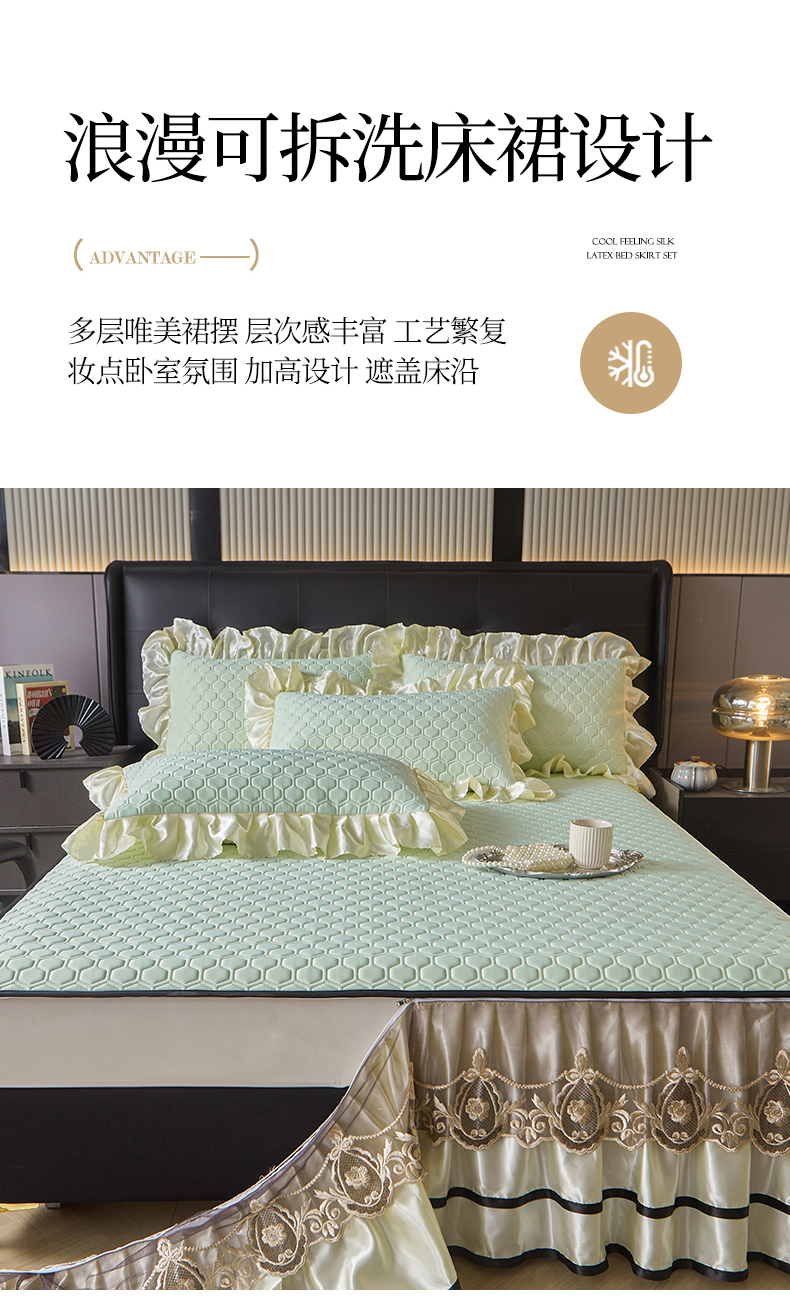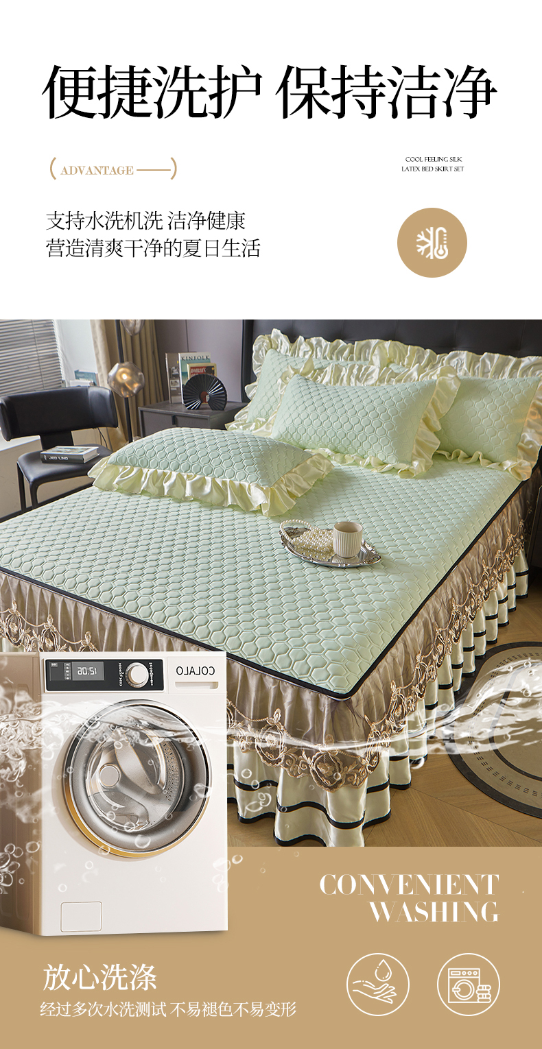 (总)好儿喜家纺 2024新款伊芙琳凉席床裙三件套,浅绿,橄榄绿,奶白,浅粉,浅蓝