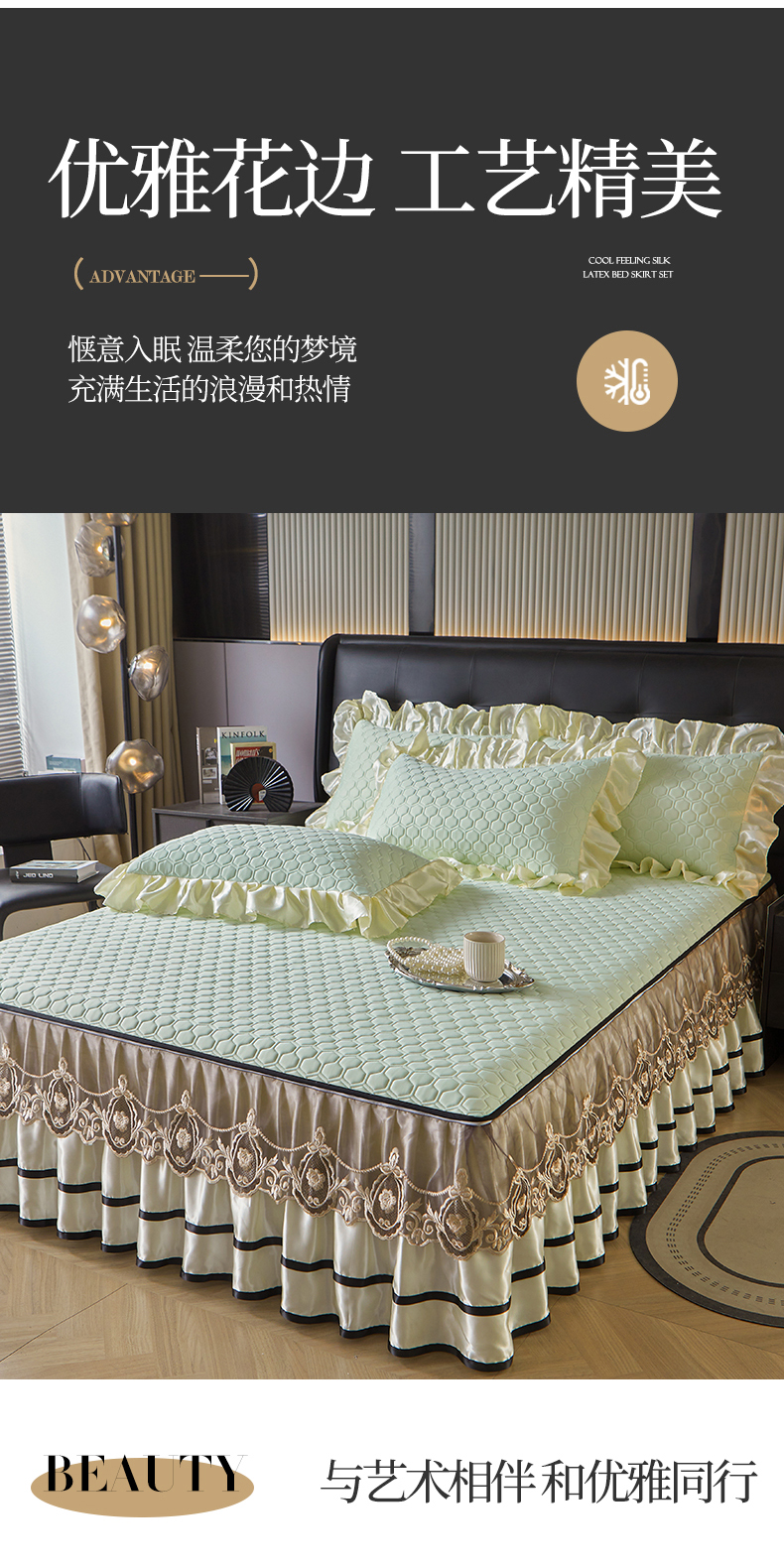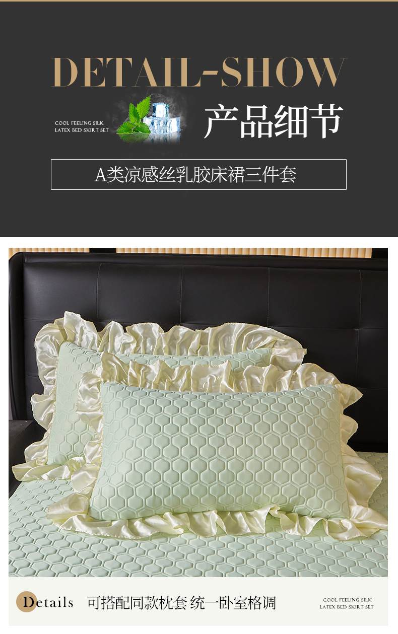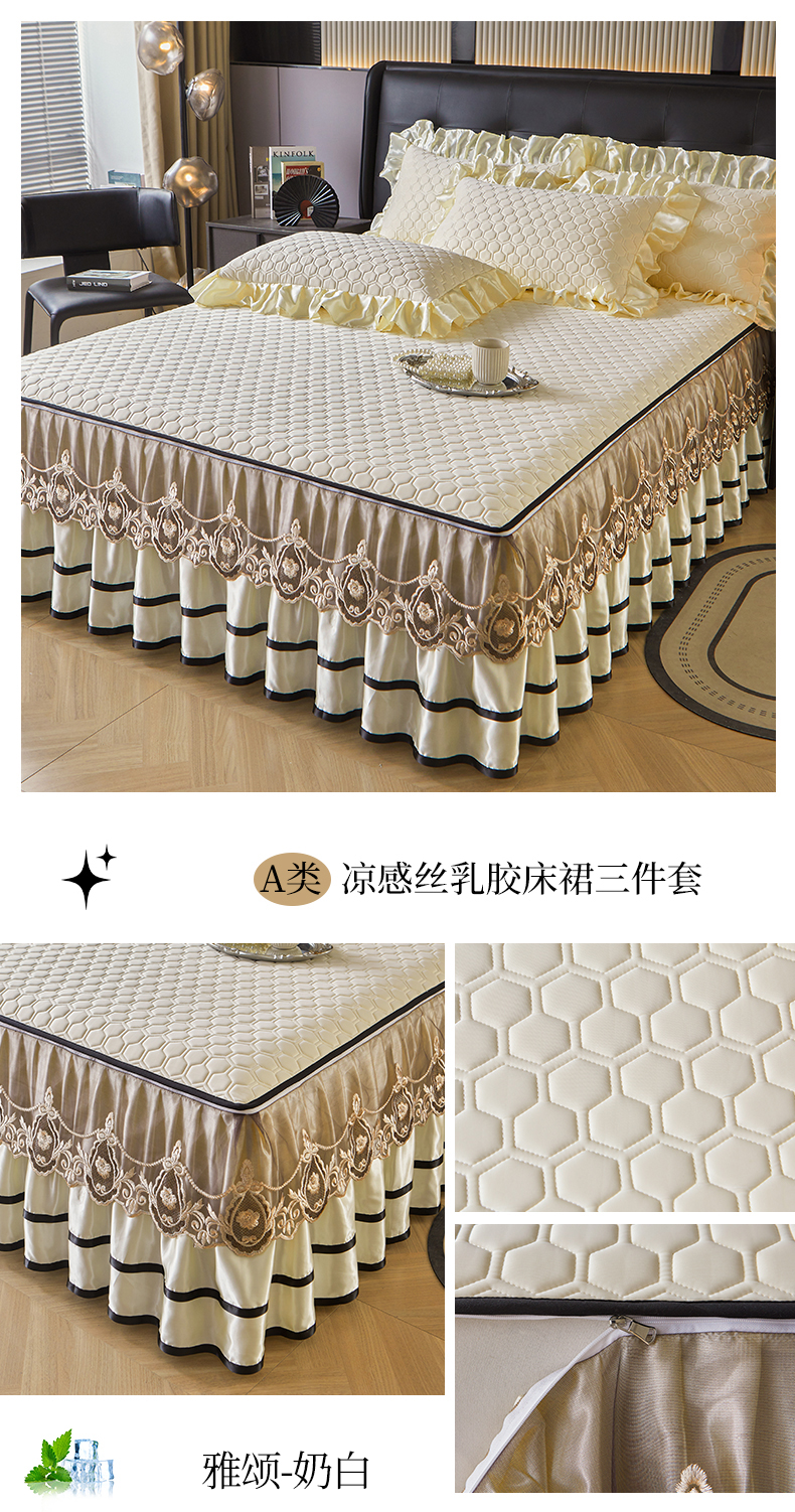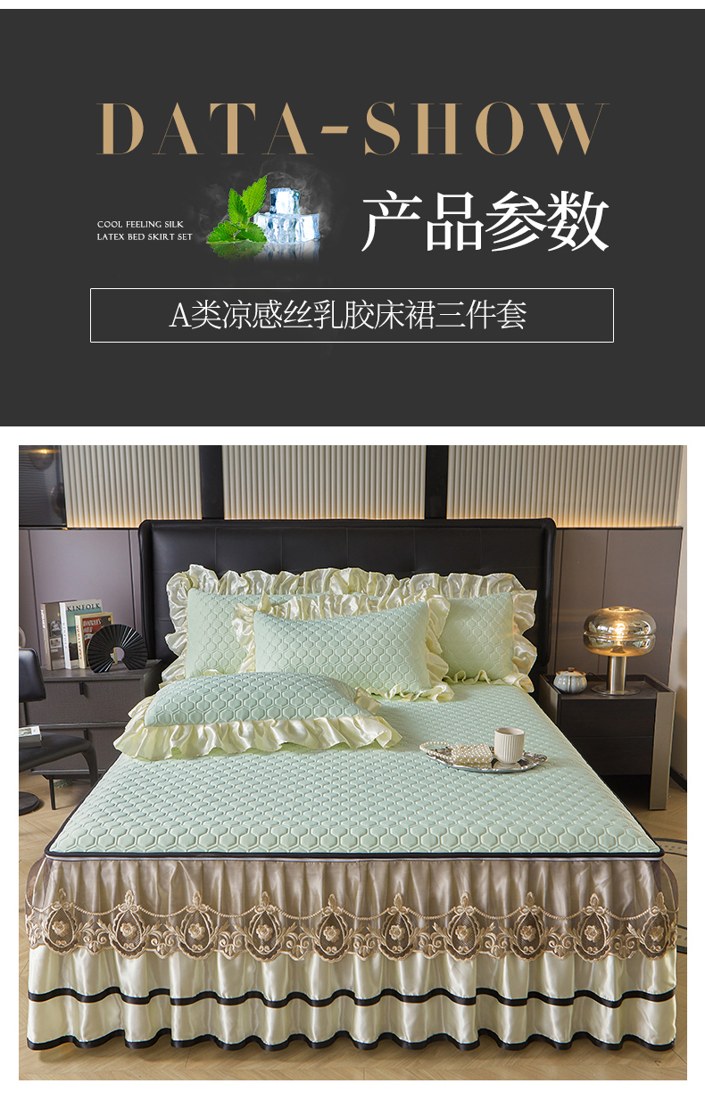 (总)好儿喜家纺 2024新款伊芙琳凉席床裙三件套,浅绿,橄榄绿,奶白,浅粉,浅蓝