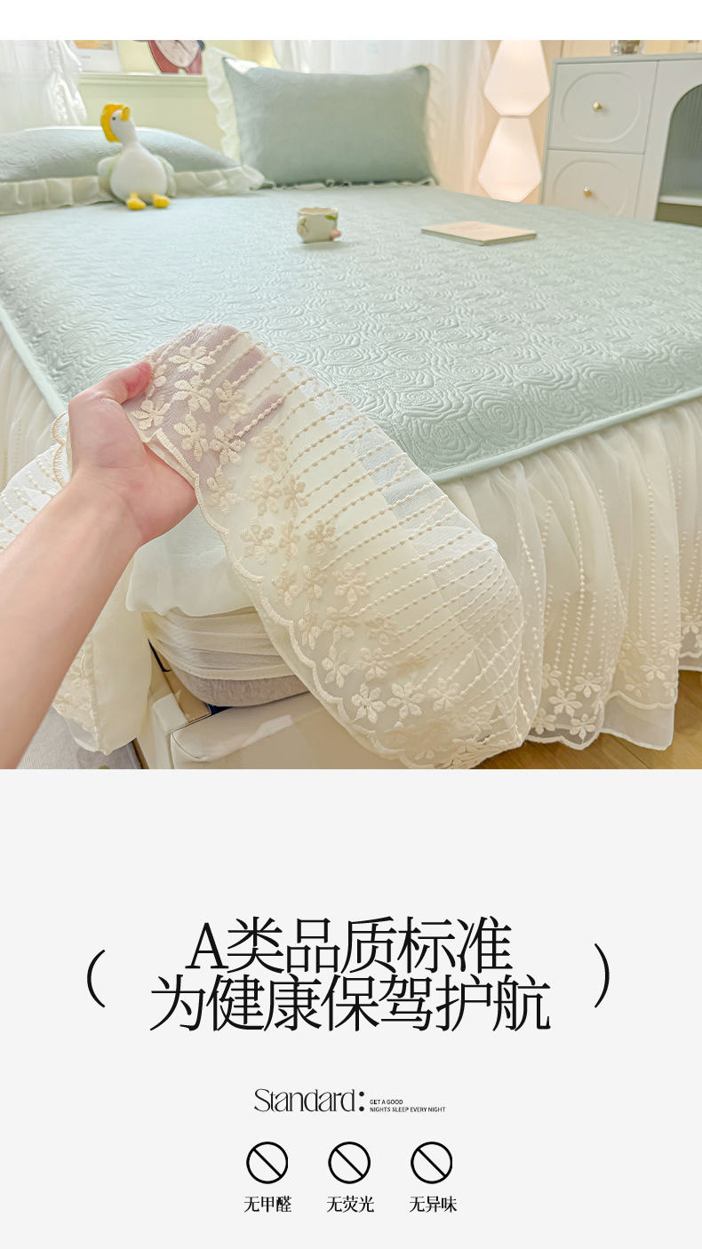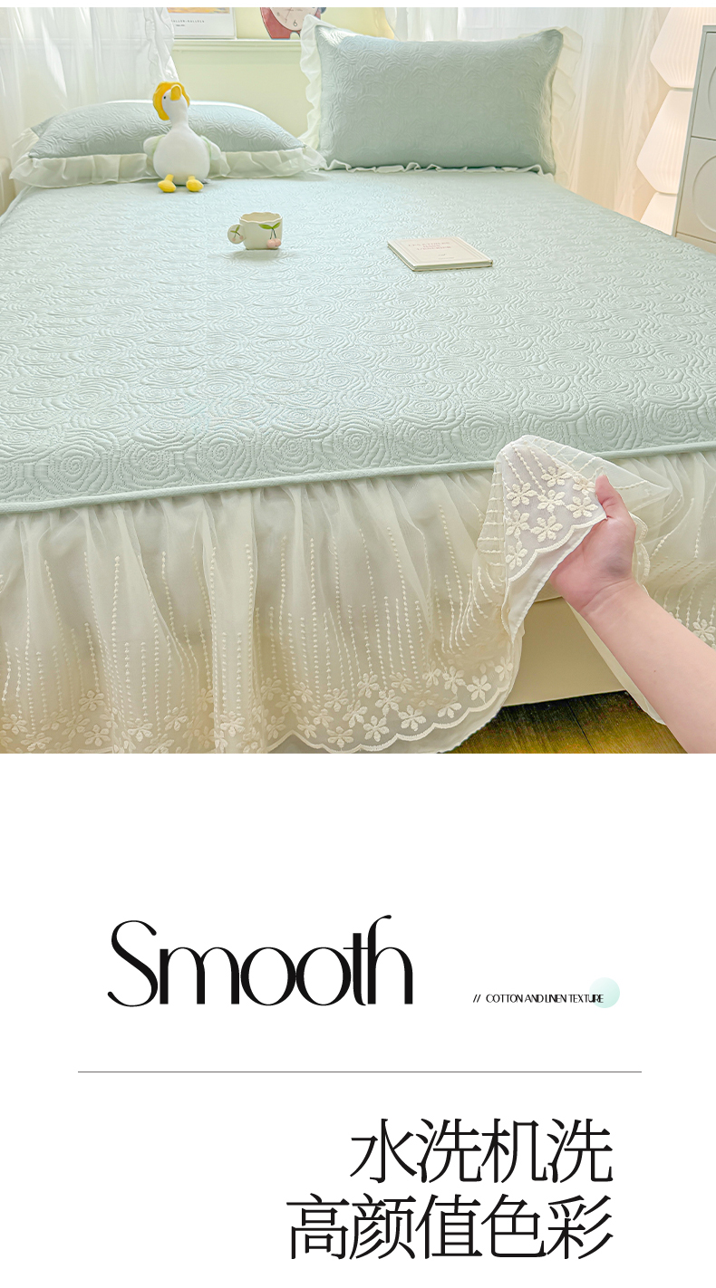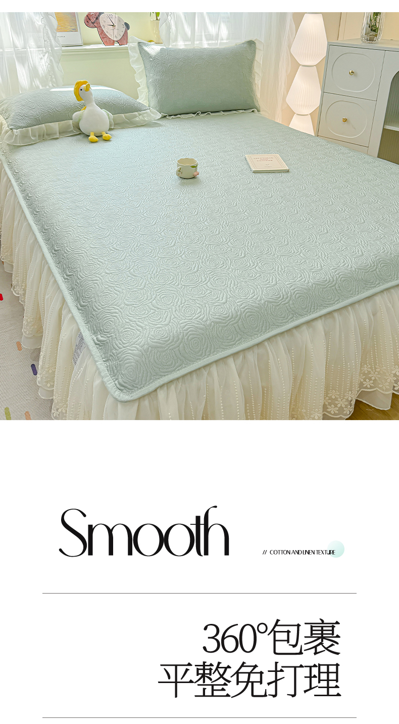 • 91家纺网 家纺一手货源 找家纺 眠势力 2026新款PE提花冰凉豆豆床裙款床笠凉席子冰丝凉感中分子床裙乙纶床裙床笠二合一 晚风-清绿