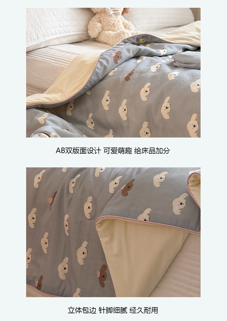 (总)暖生活 2026新款A类“冰纱”母婴级全棉纯棉双层纱夏被夏凉被空调被(礼盒包装),组合图仅供展示不可下单,春日兔语,粉南瓜,灰调小马,可可蘑菇,绿野粉花,奶咖小狗,绒绒小狗,桃枝枝,眼镜熊