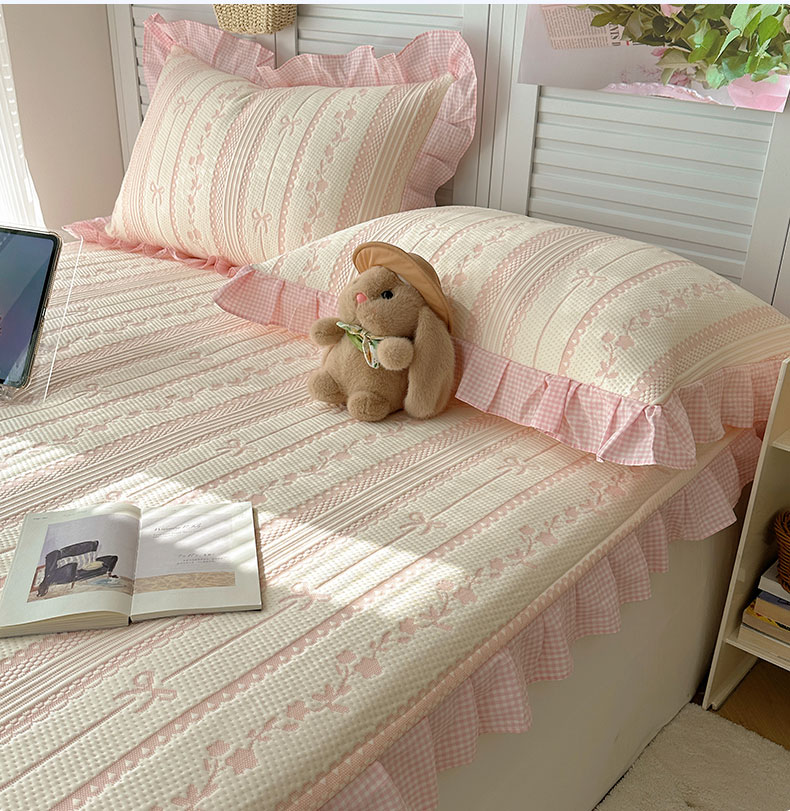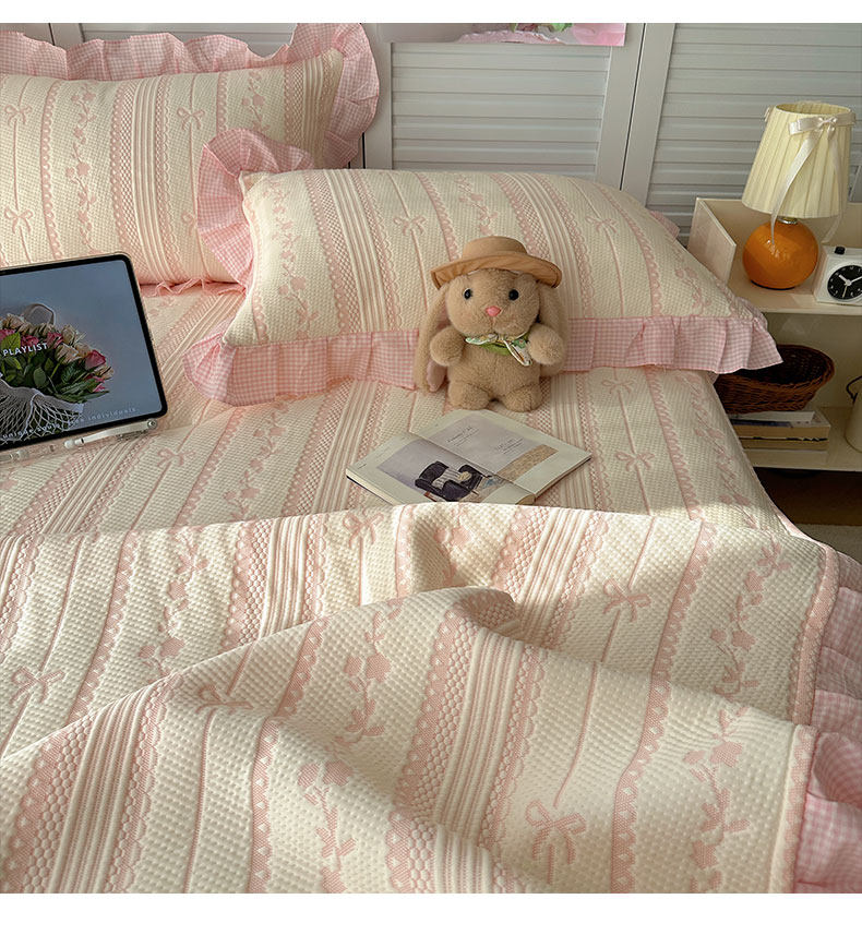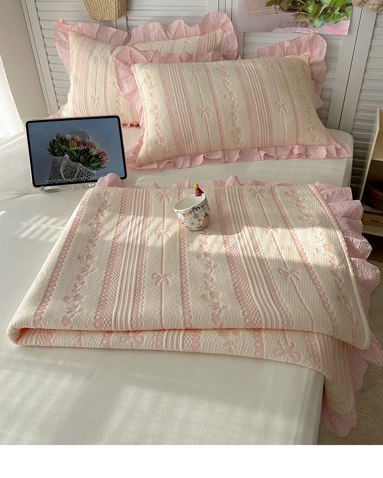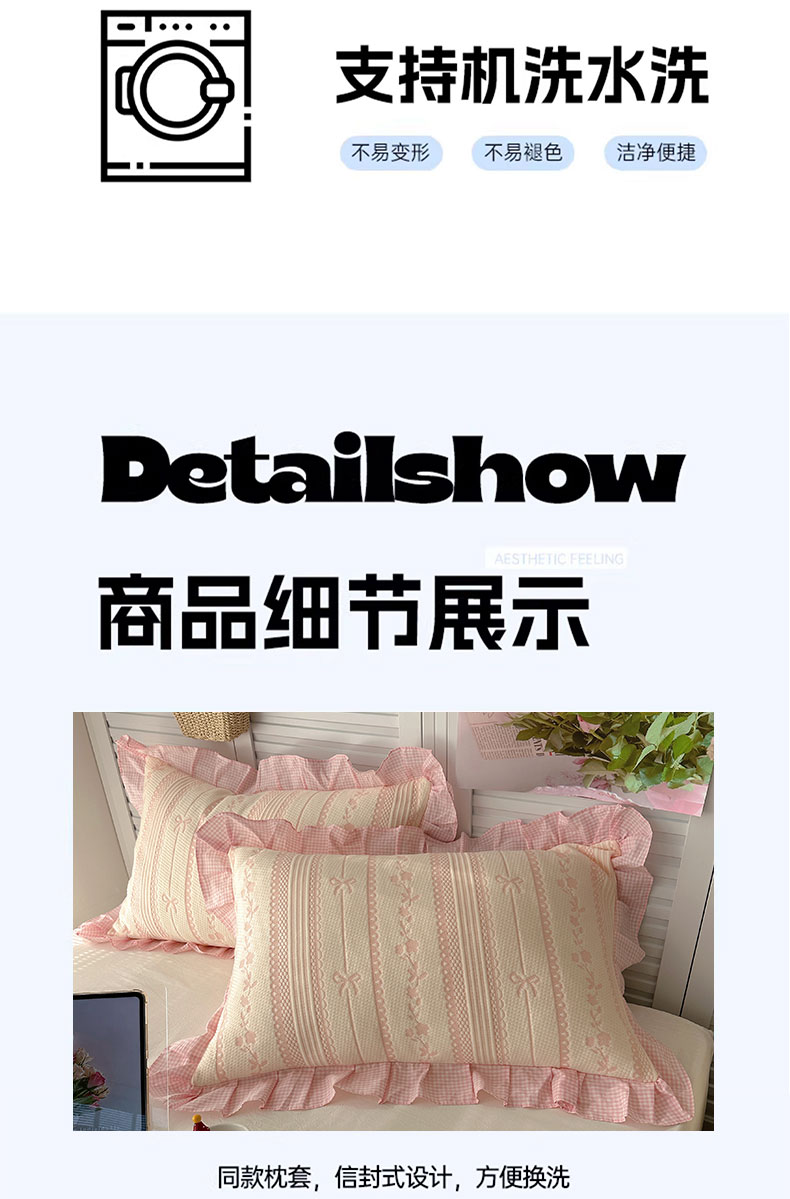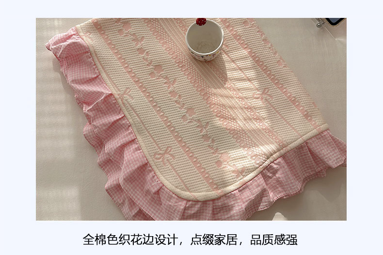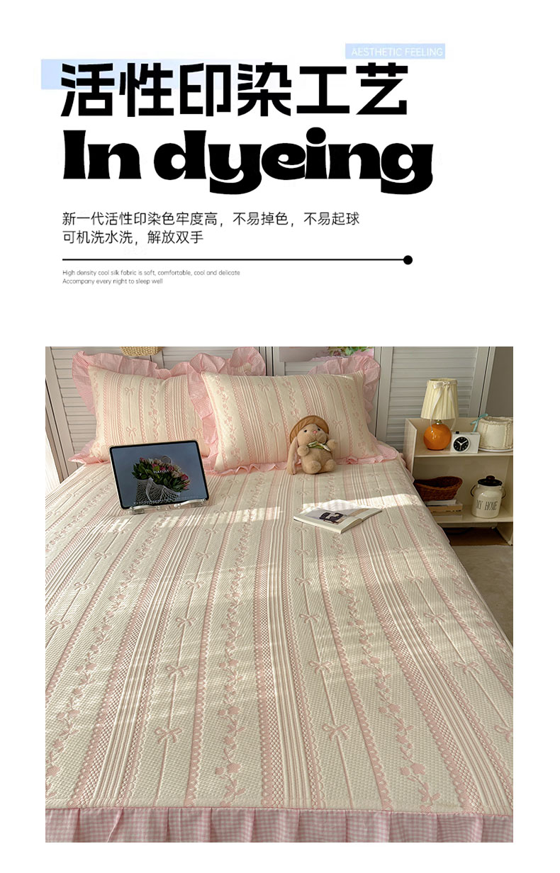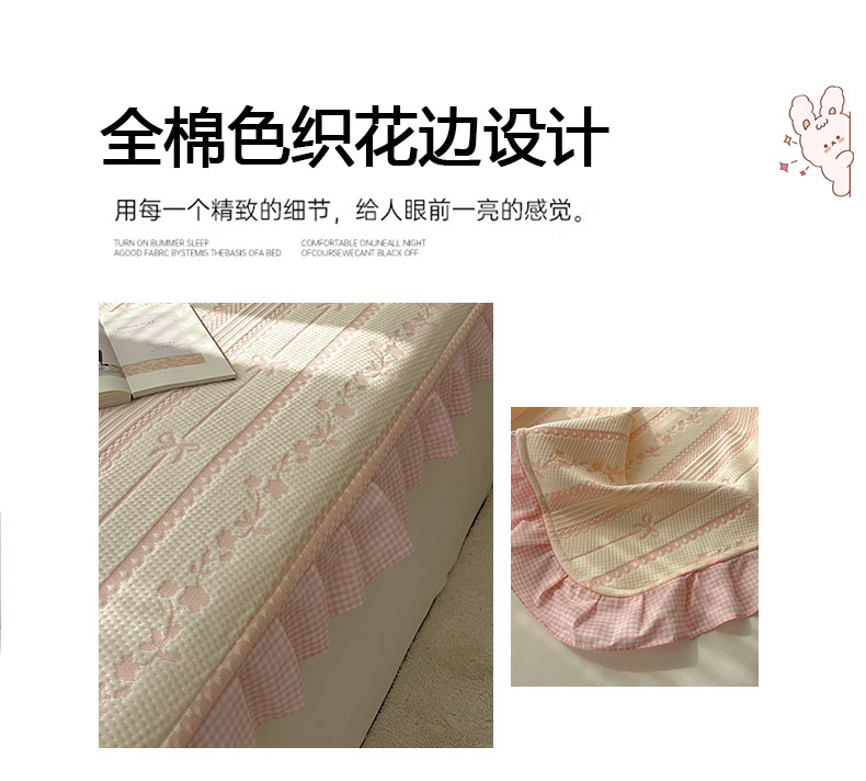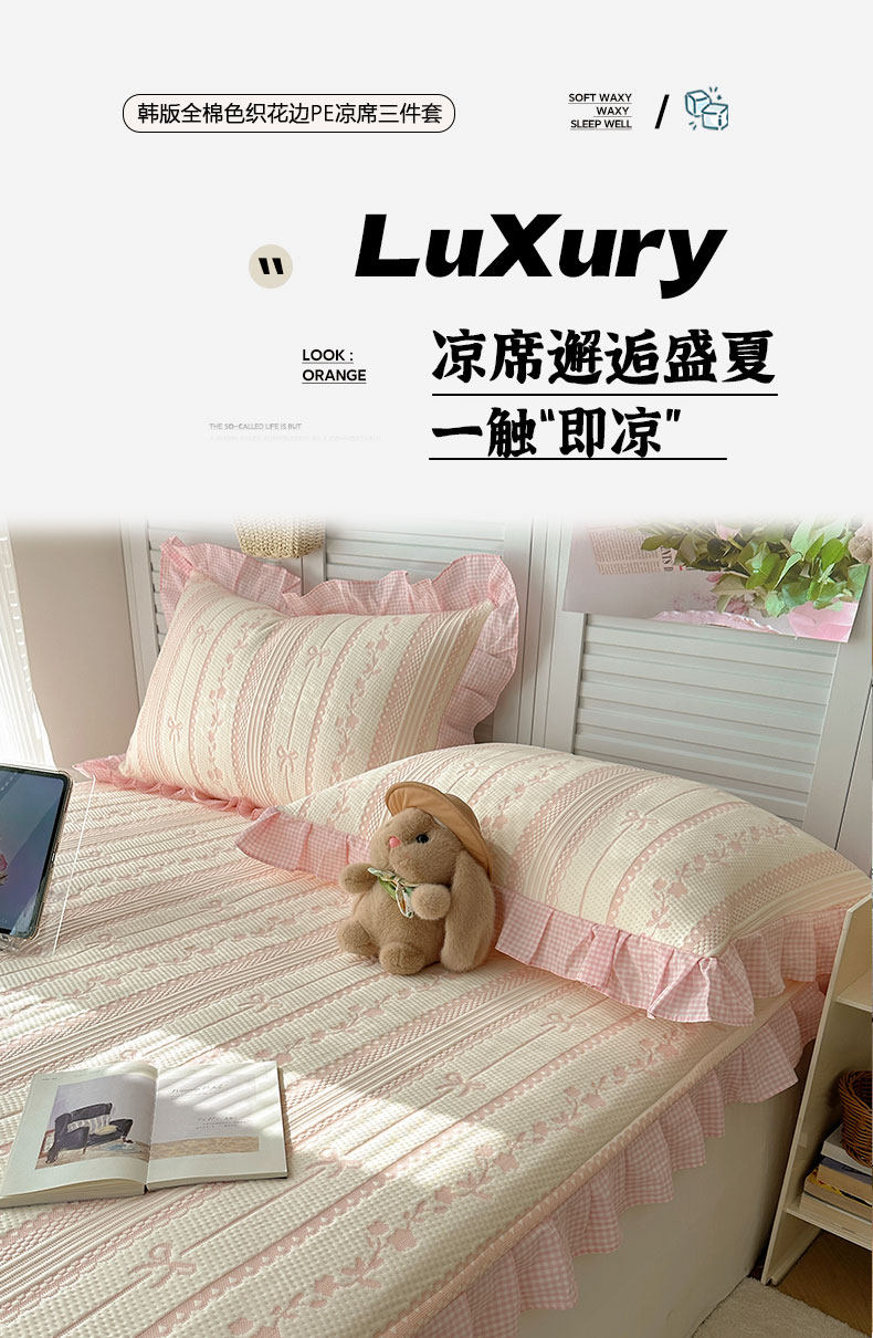 商品名称:(总)桃子家居 2026新款A类韩版全棉色织花边工艺提花PE凉感凉席席子凉席三件套系列