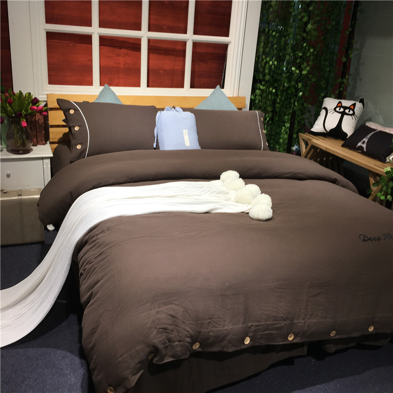 总玖玖爱家纺 纯棉100支贡缎长绒棉刺绣被套三件套四件套加大四件套,白色,高级灰,卡其,蓝灰,绿色,浅桔,深蓝,紫豆沙