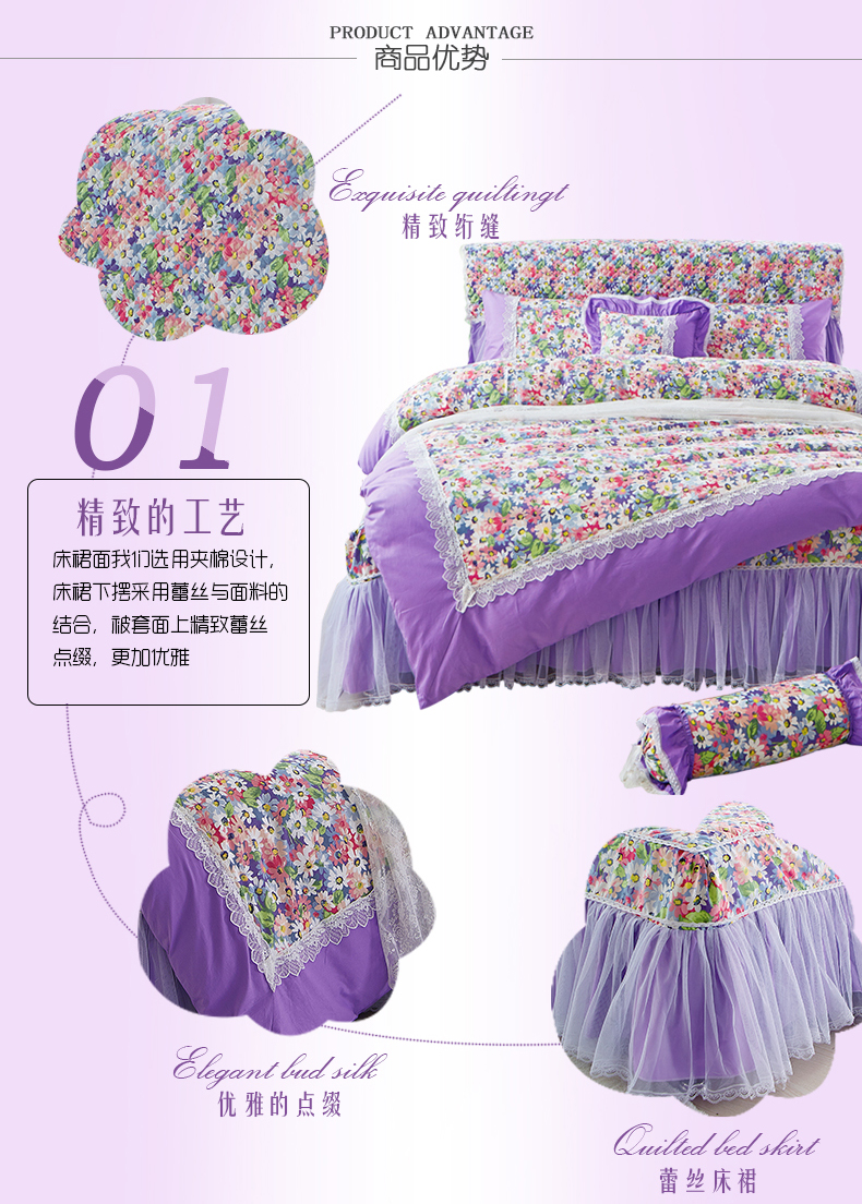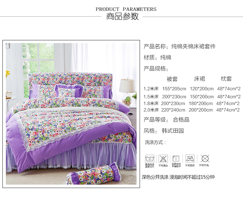 商品名称:菊上新品韩版全棉加厚加棉田园公主风床裙款四件套-伊甸园