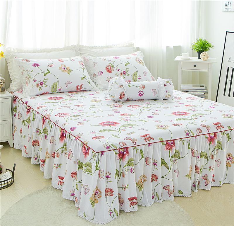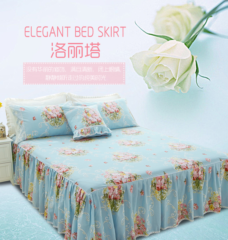 菊上家纺 欧美风简约田园花卉蕾丝床裙系列12款