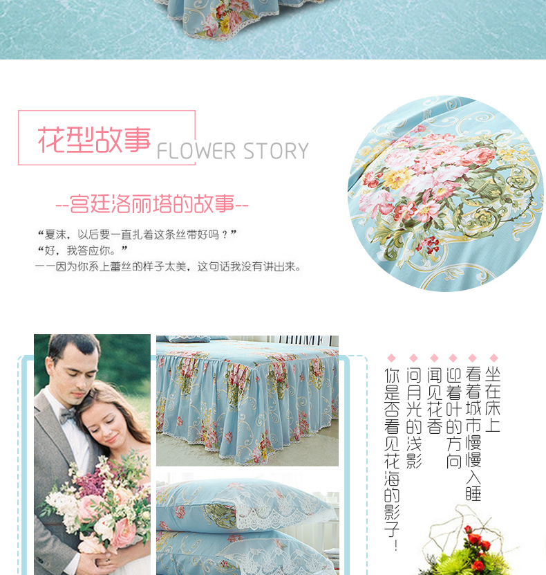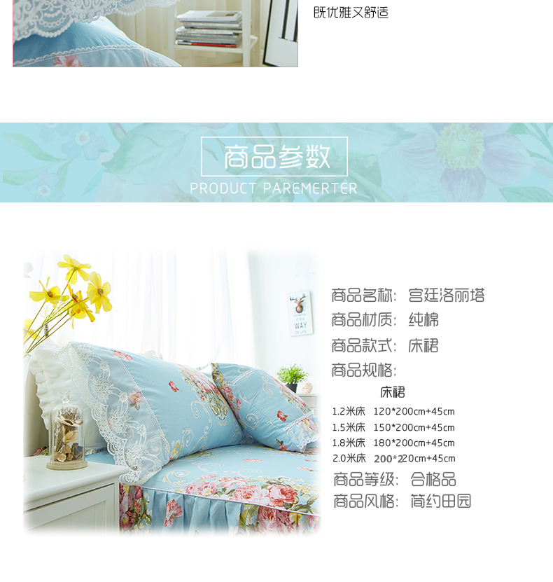 商品名称:菊上家纺 欧美风简约田园花卉蕾丝床裙系列12款