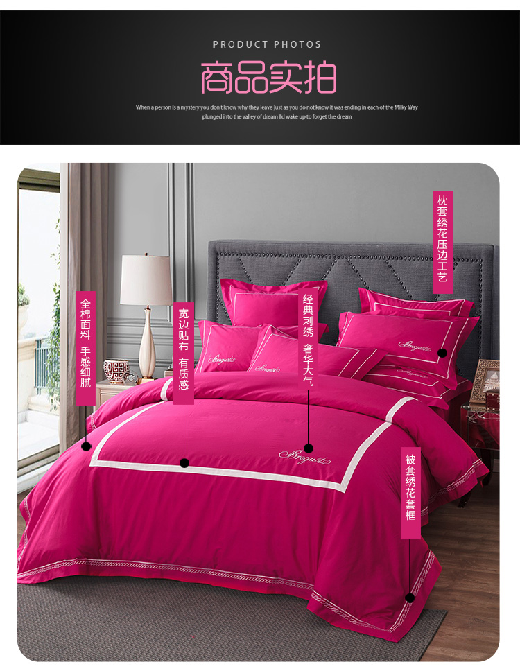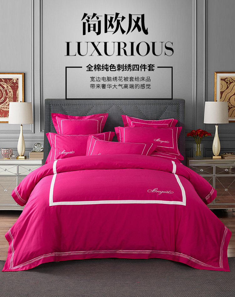 当前位置: 91家纺网 > 商品网购 > 床品套件 > 四件套 > 全棉普通四件套 > 兴美佳家纺 简约酒店风纯色全棉四件套 玫红