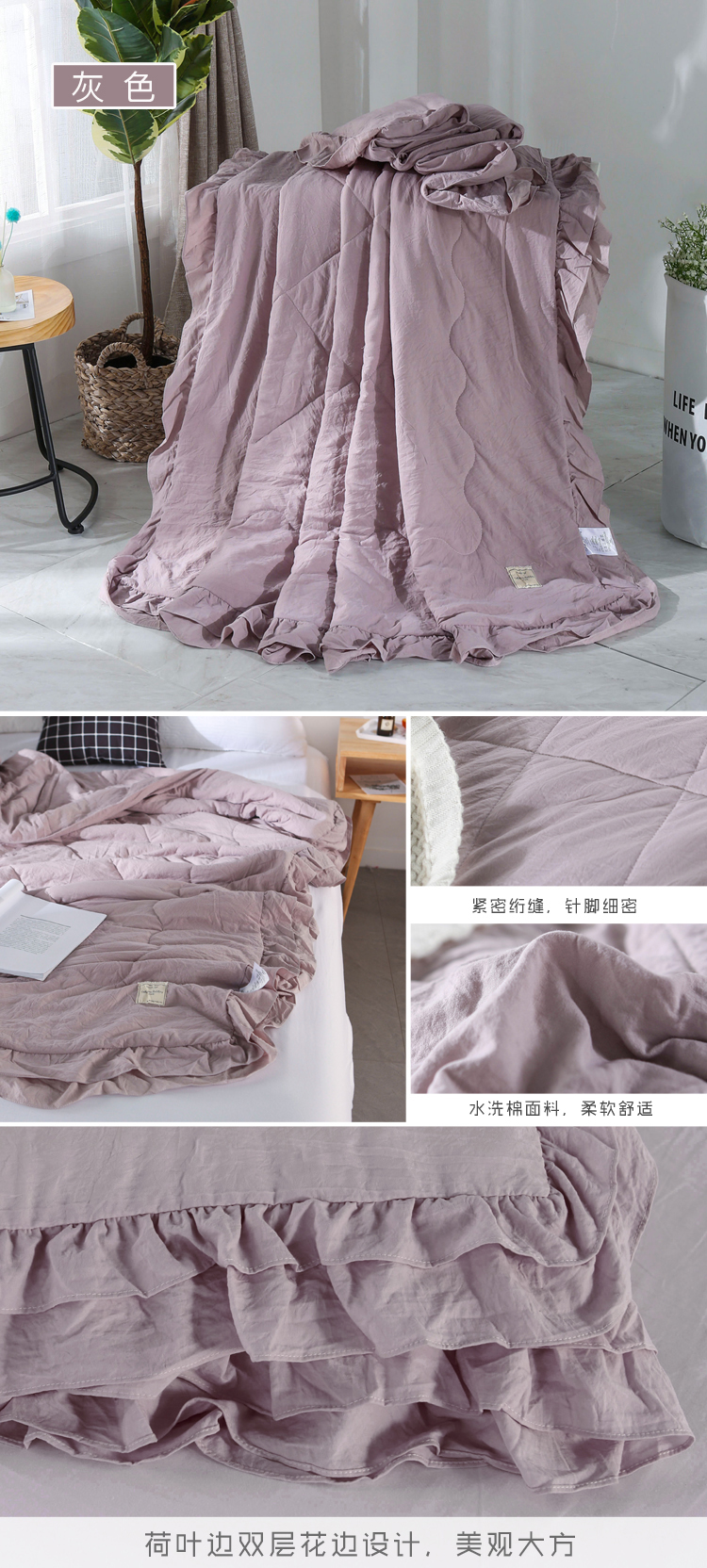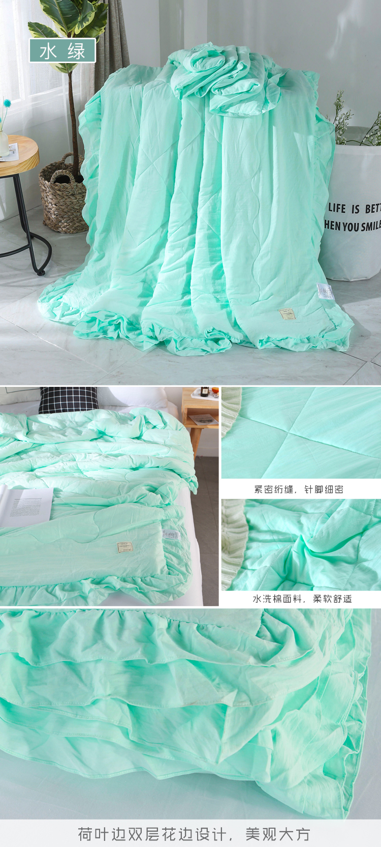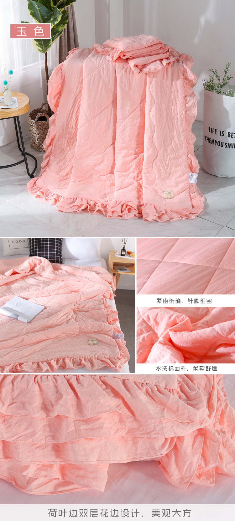 (总)畅畅家纺 双层荷叶边水洗棉夏被空调被夏凉被可搭配四件套