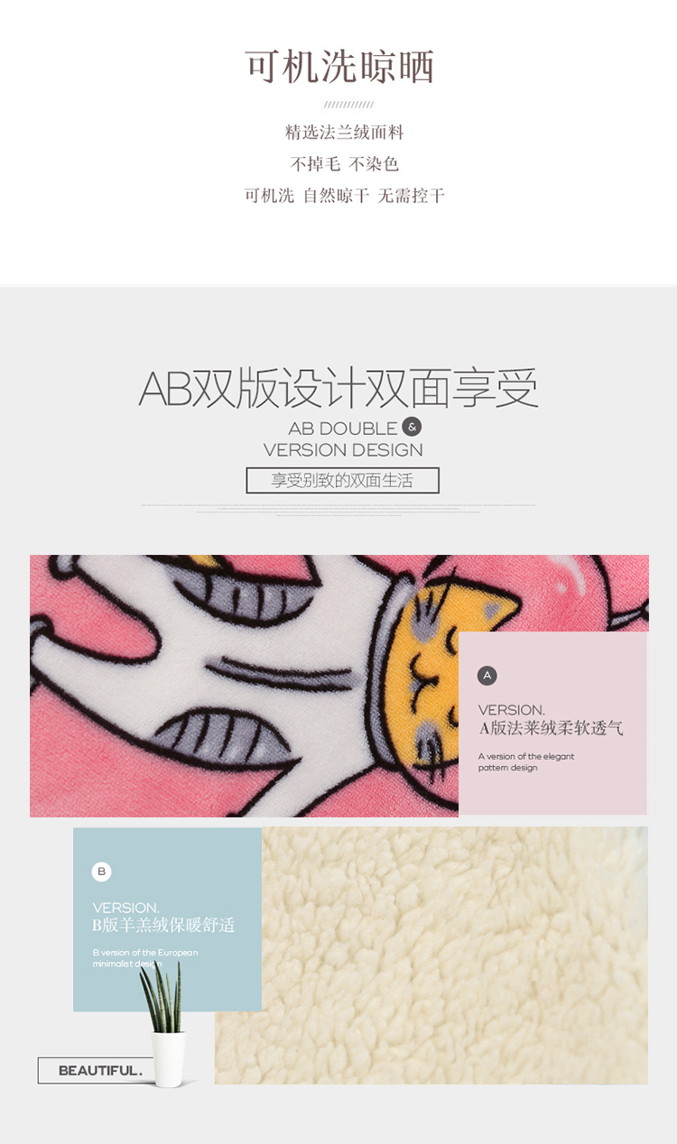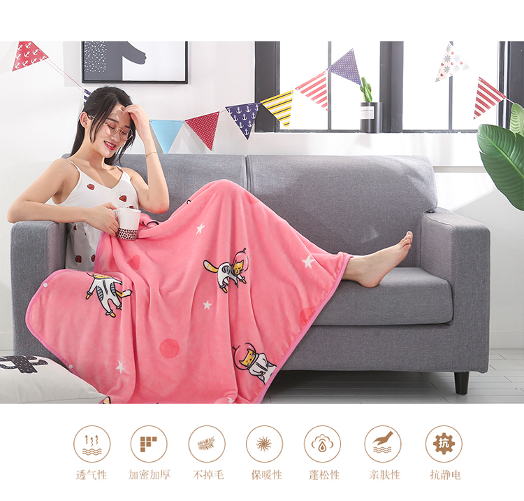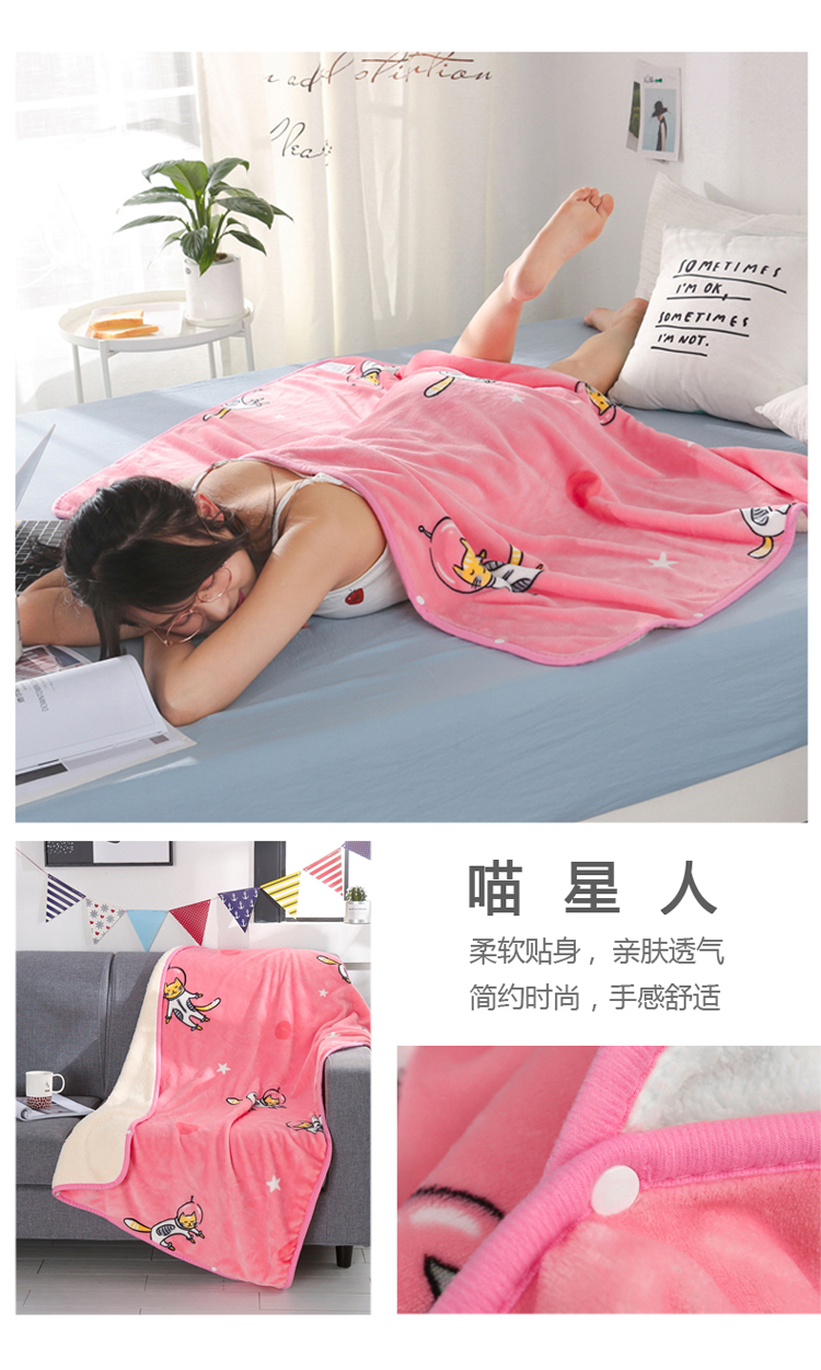 商品名称:羋多家纺 双层(法莱绒+羊羔绒 )多功能毯童毯披肩毯 喵星人