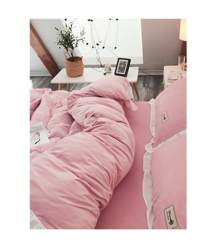 漫调家纺 2018秋冬夹棉仙女款床裙四件套 浅豆沙
