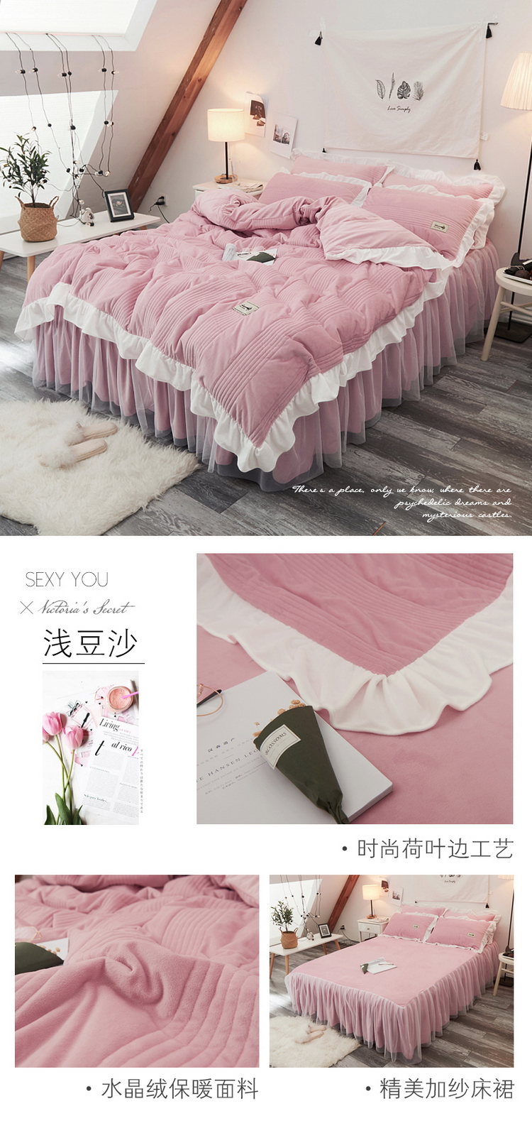 商品名称:漫调家纺 2018秋冬夹棉仙女款床裙四件套 浅豆沙