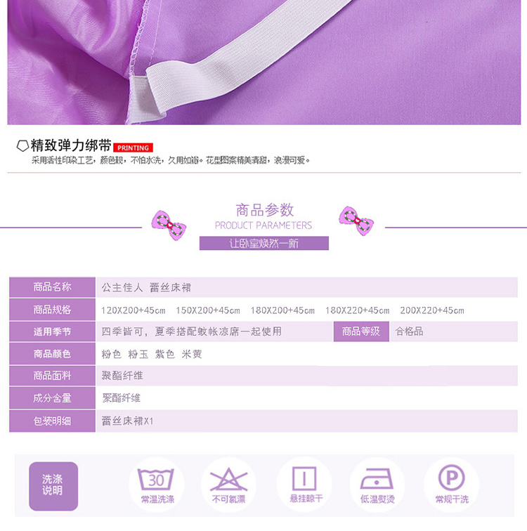 商品名称:情恒家纺 2019新款蕾丝床裙系列公主佳人 紫色