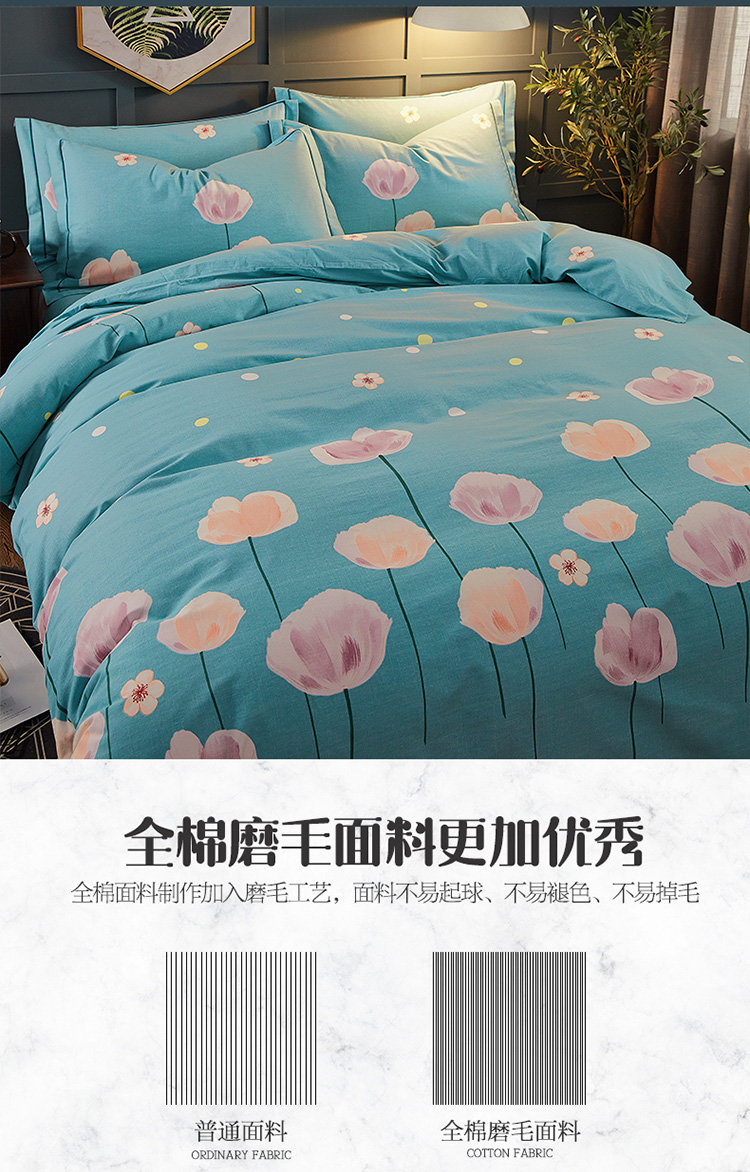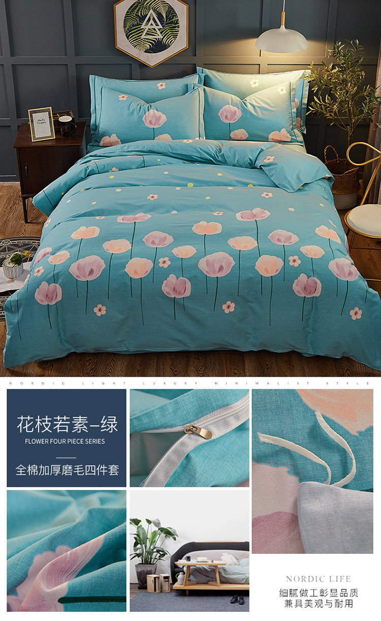 商品名称:雲归梦 2019新款多规格全棉加厚生态磨毛四件套 花枝若素-绿
