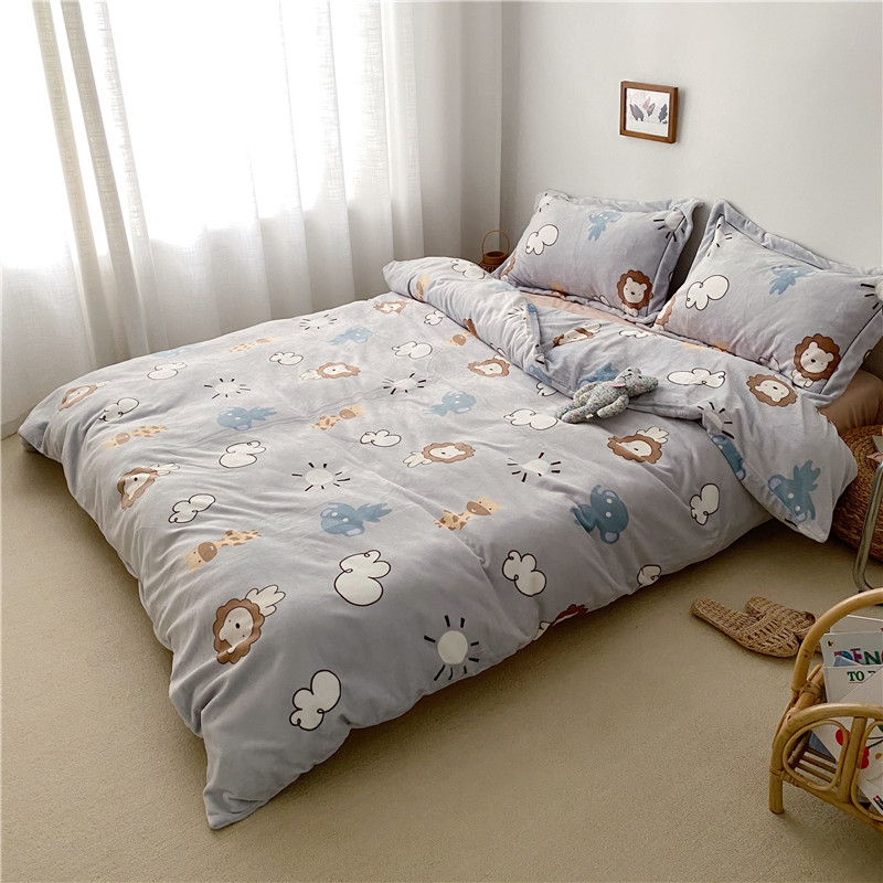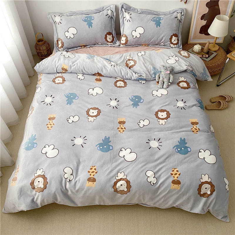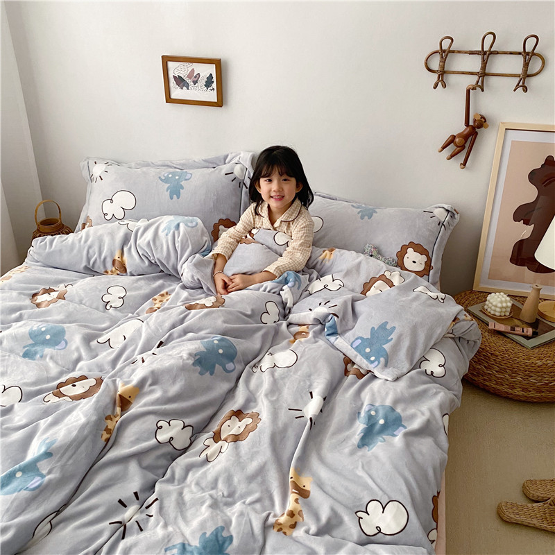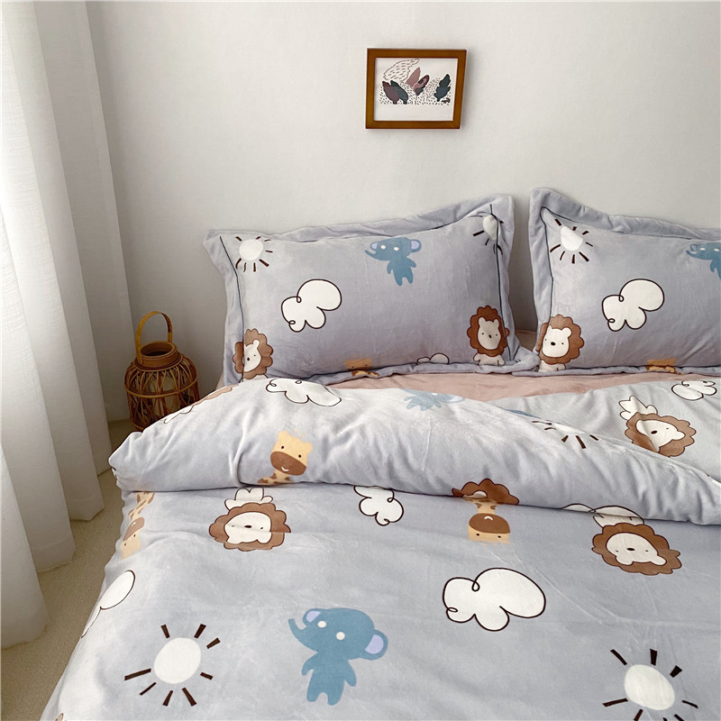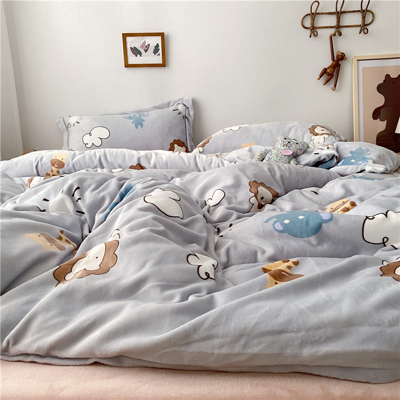 商品名称:时年 2019牛奶绒印花保暖四件套童模图 动物伙伴