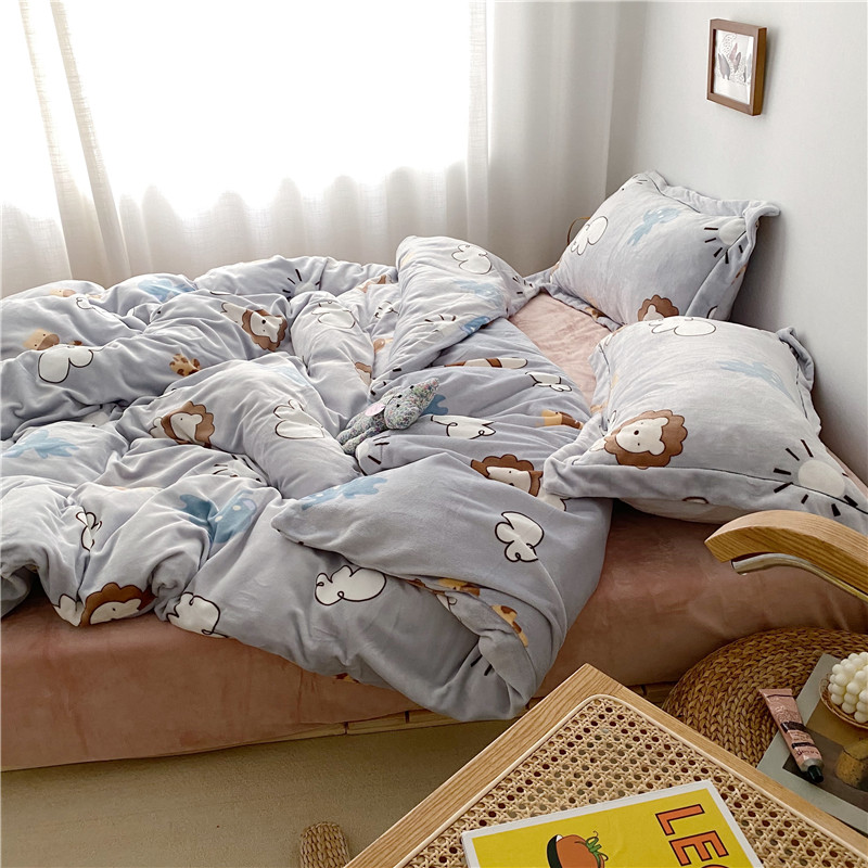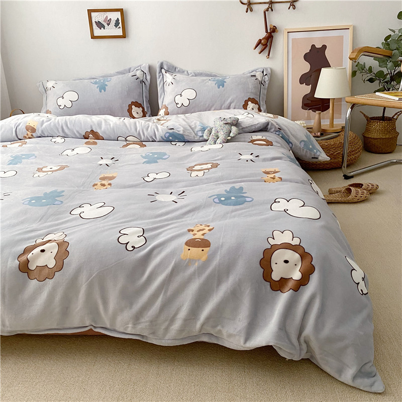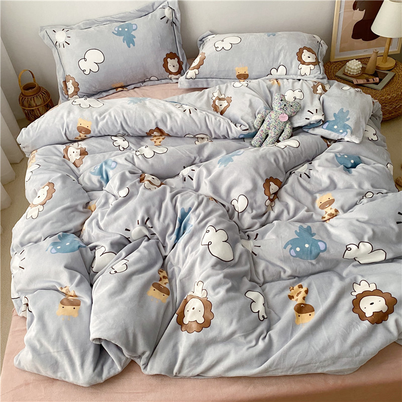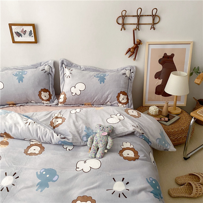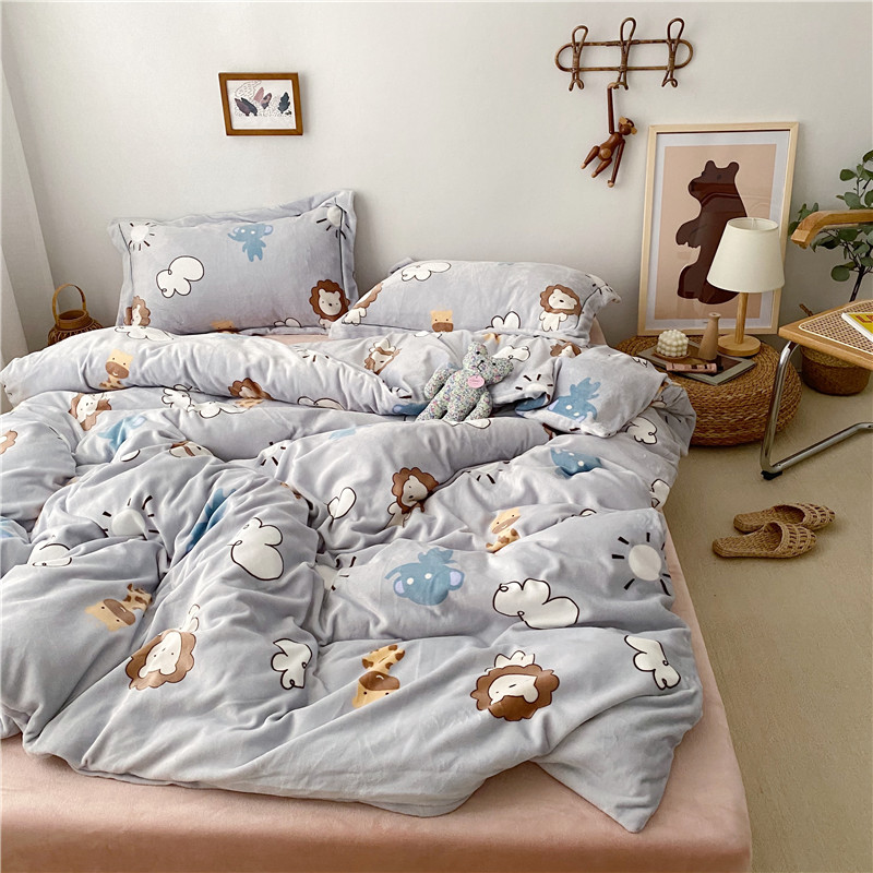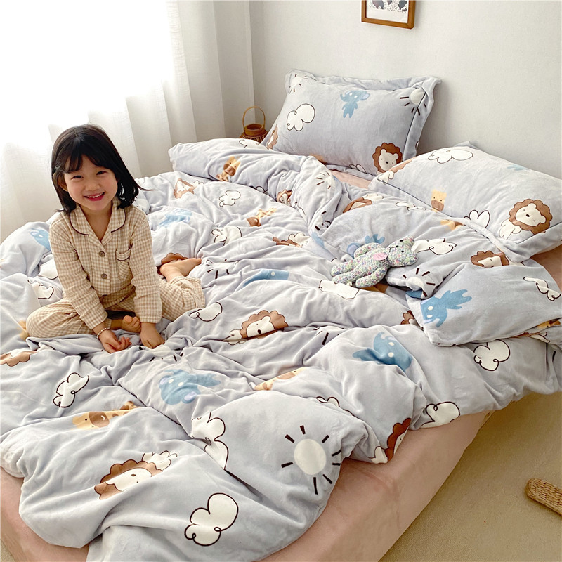 商品名称:时年 2019牛奶绒印花保暖四件套童模图 动物伙伴