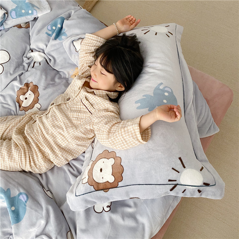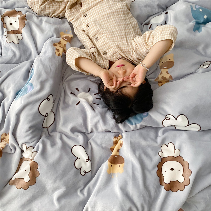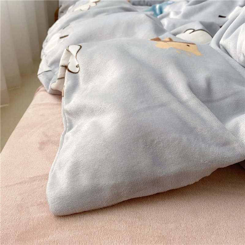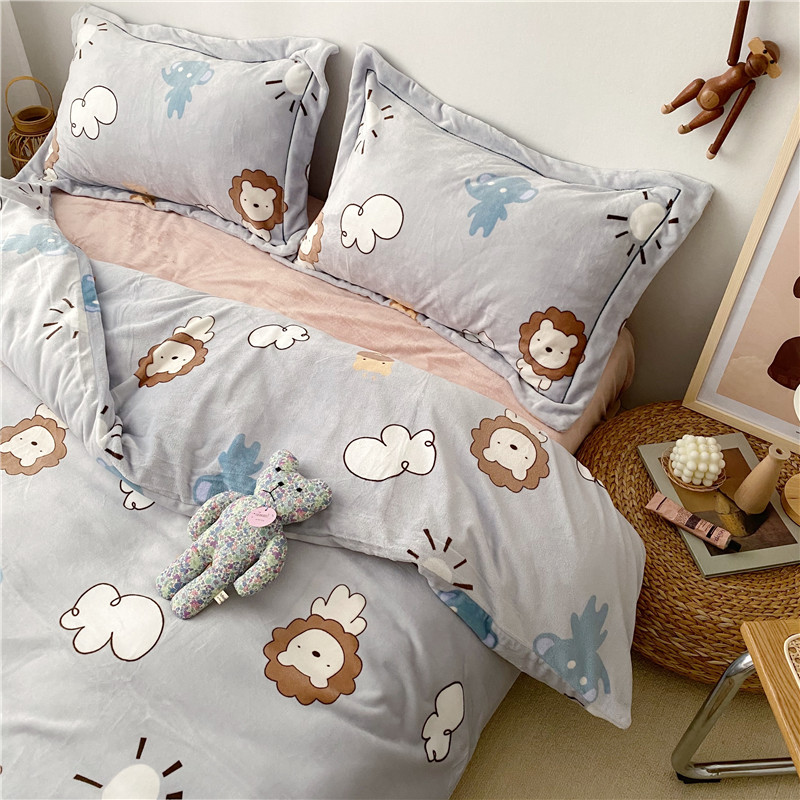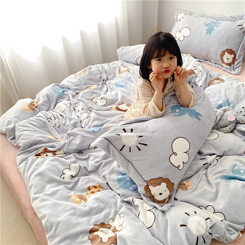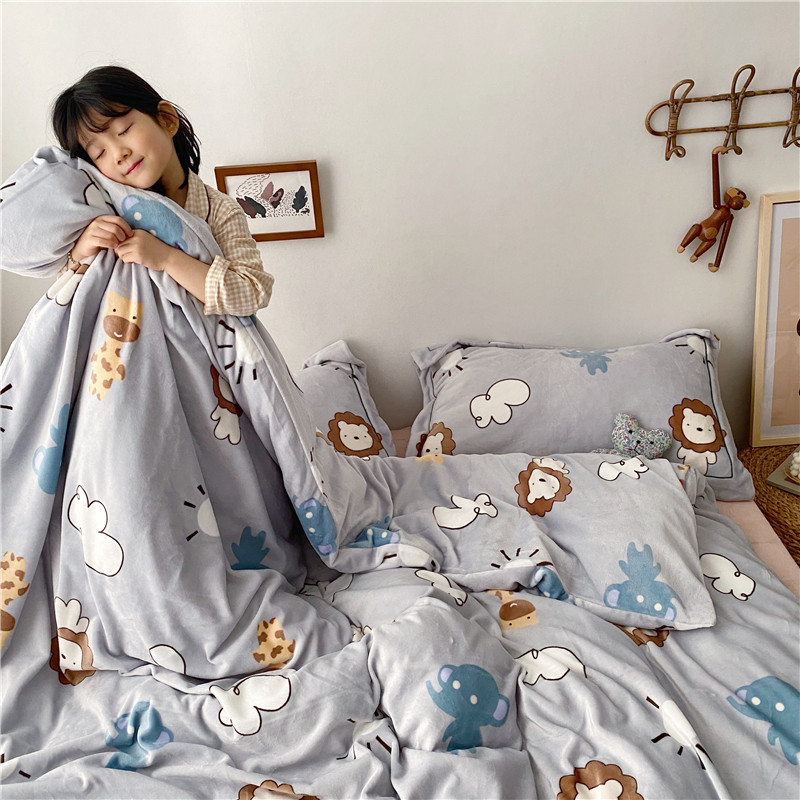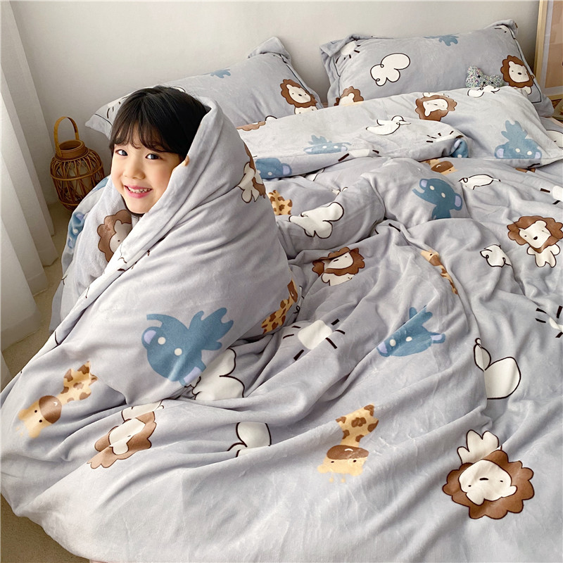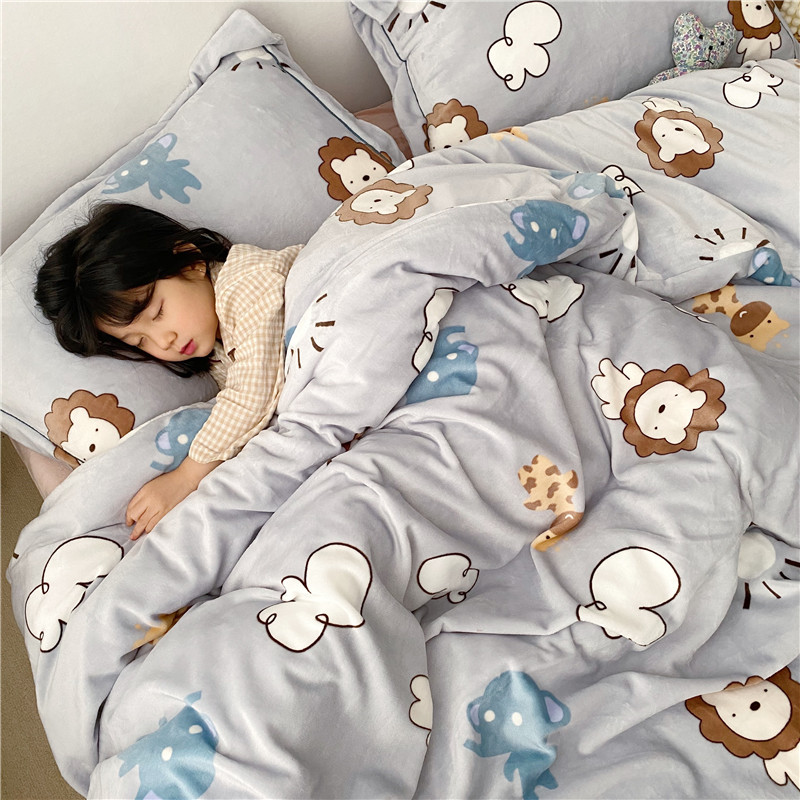 时年 2019牛奶绒印花保暖四件套童模图 动物伙伴