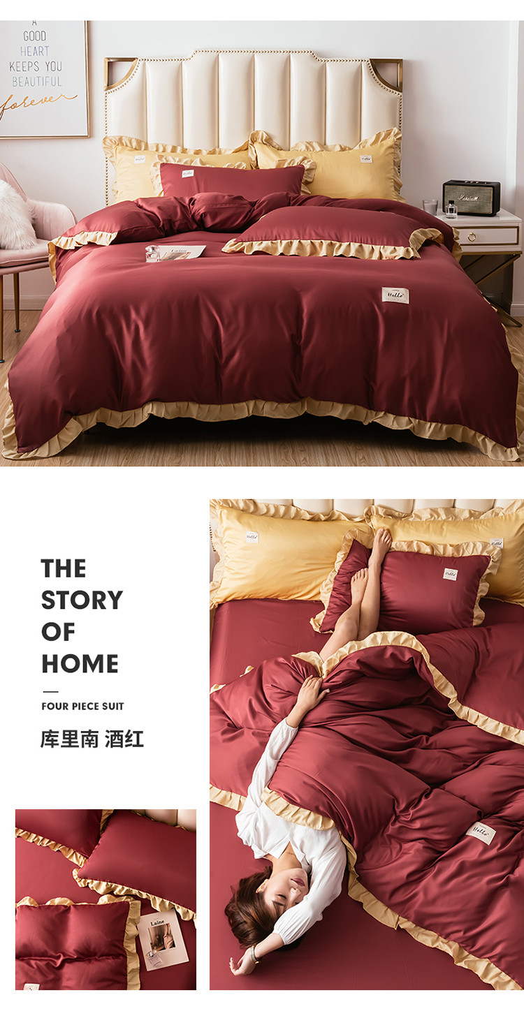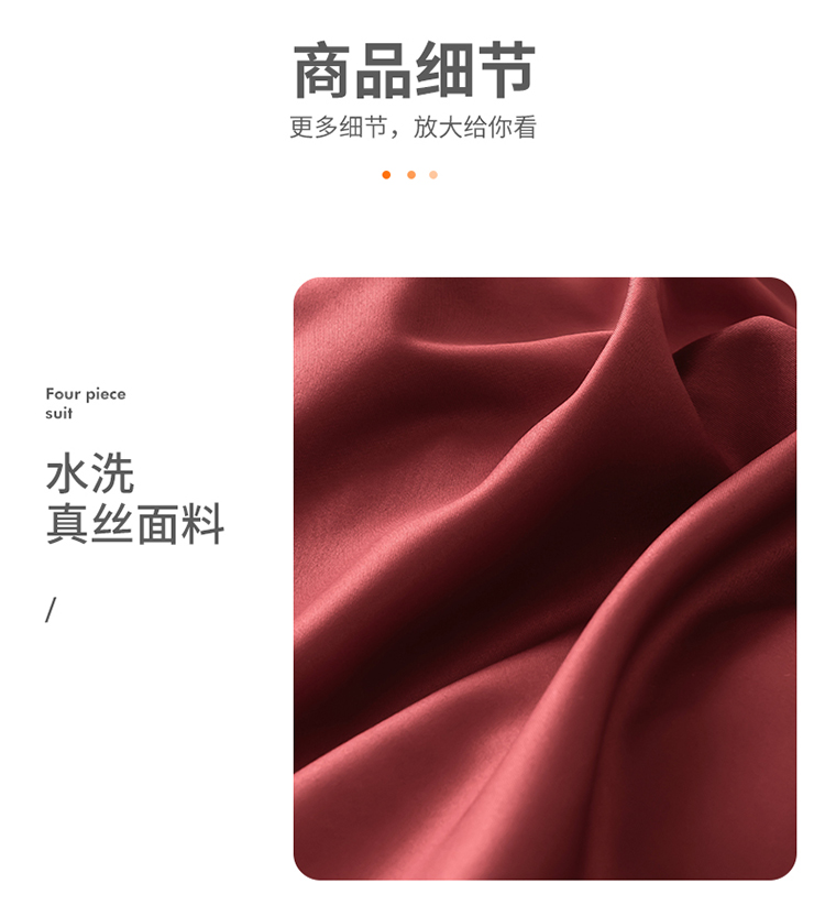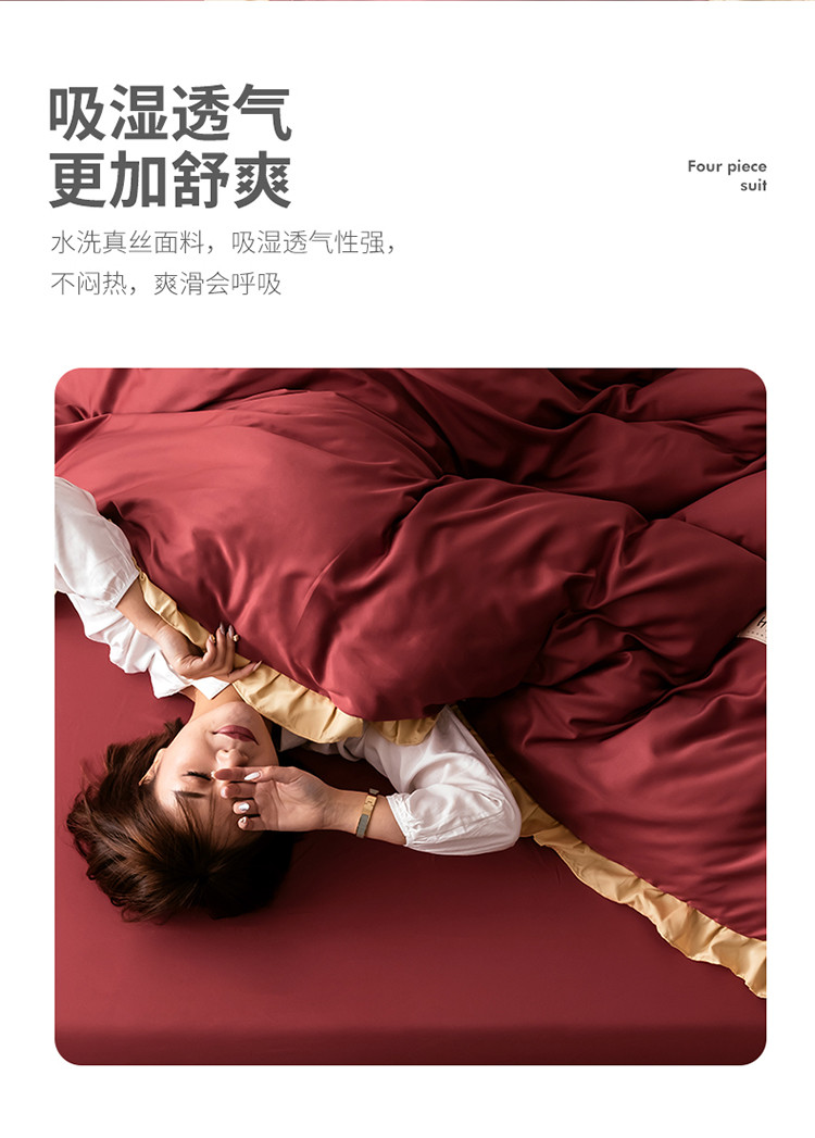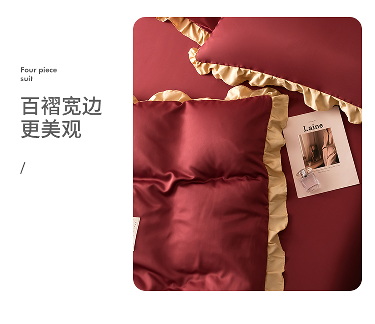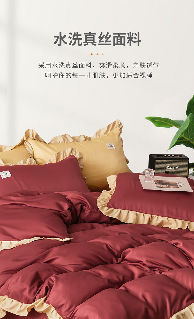 商品名称:芃成 2020新款水洗真丝库里南花边四件套 库里南-酒红