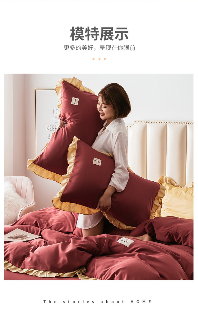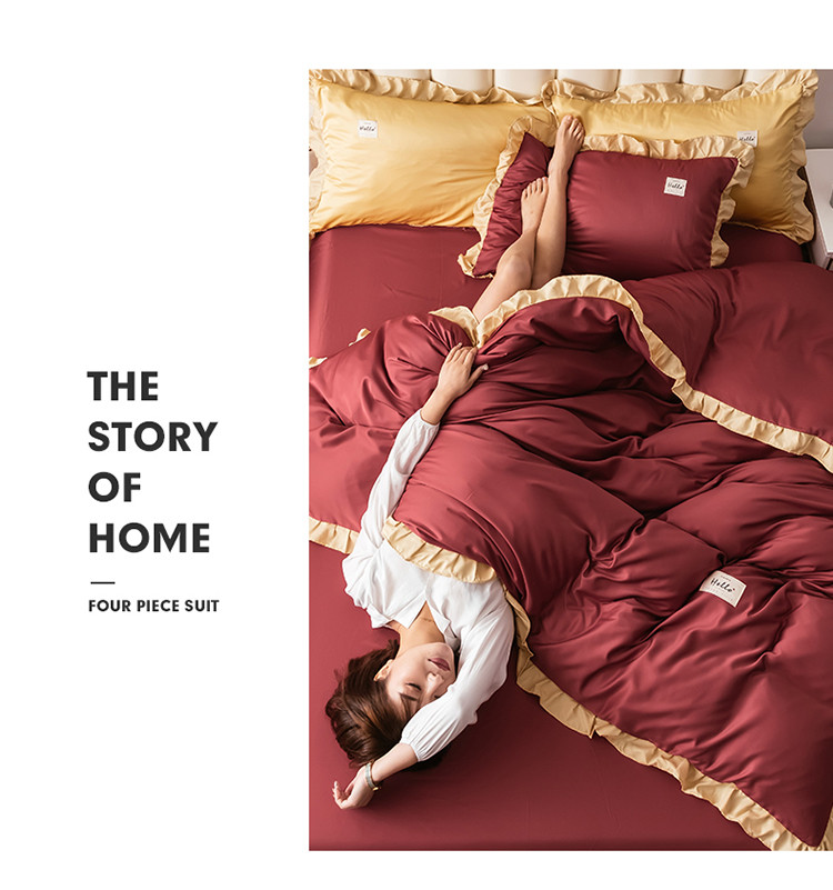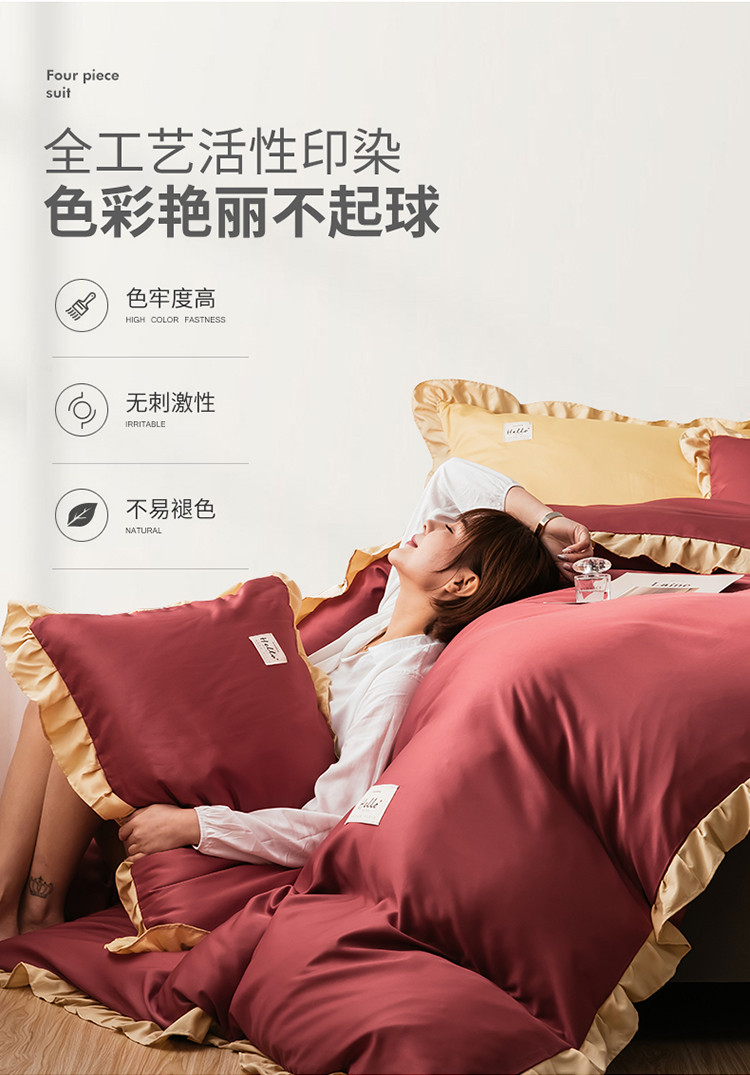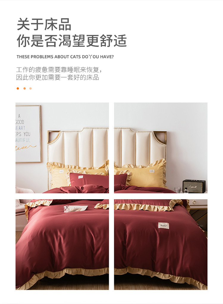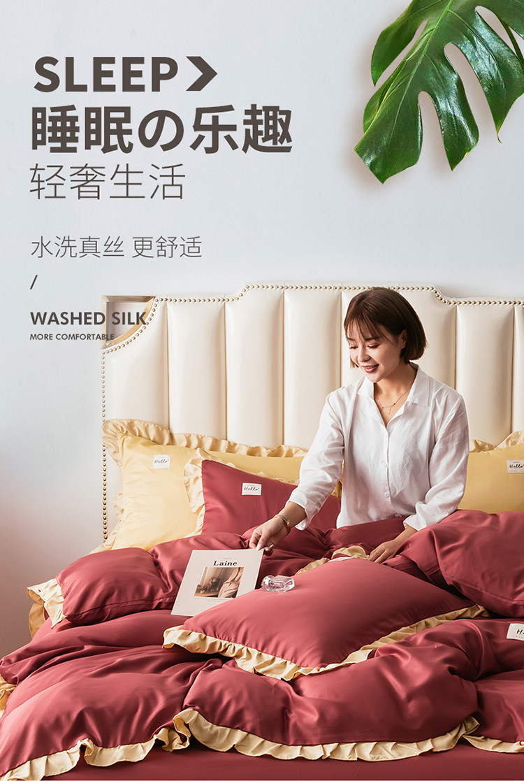 商品名称:芃成 2020新款水洗真丝库里南花边四件套 库里南-酒红