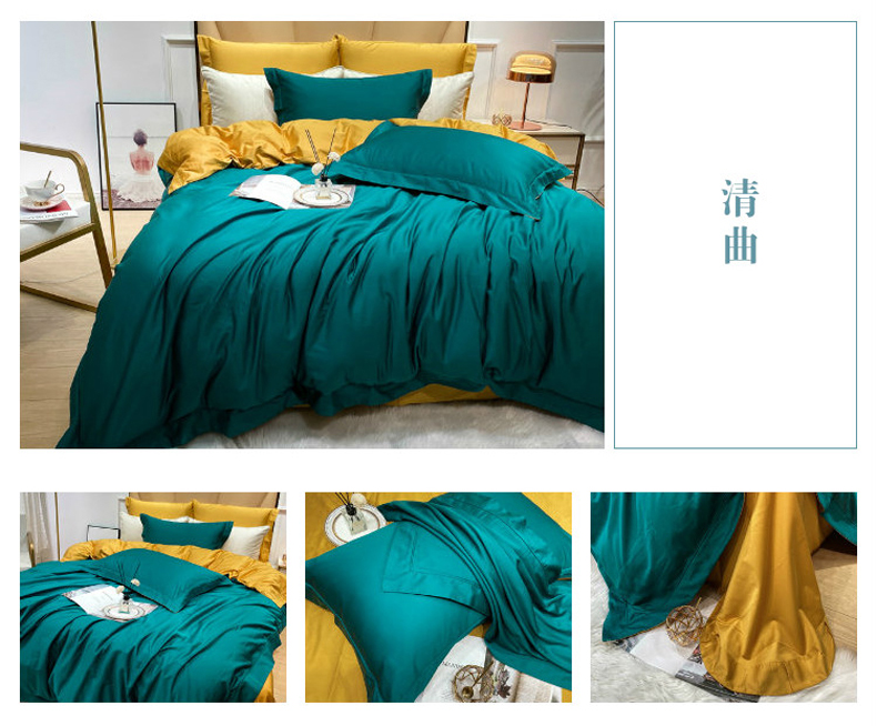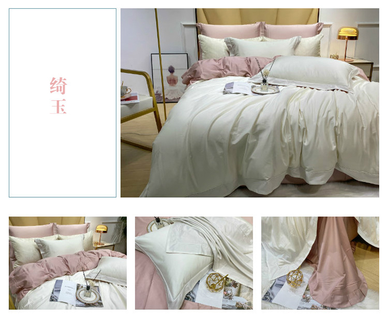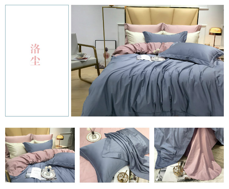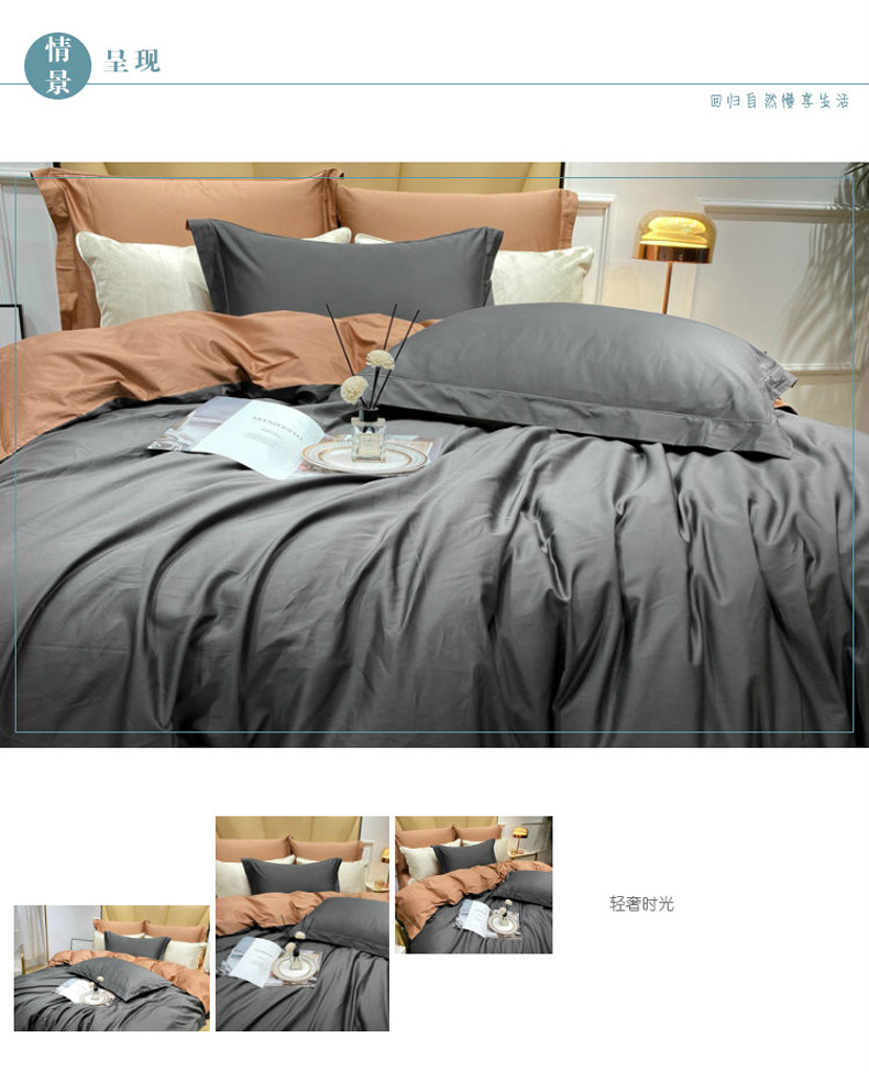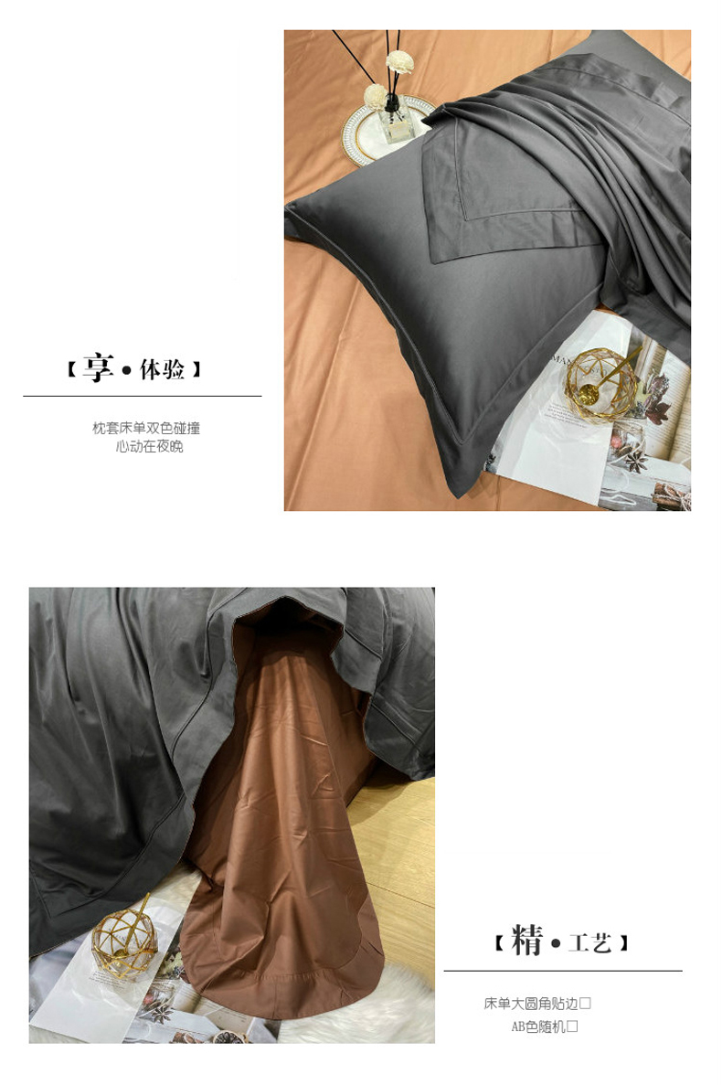 商品名称:十九色家纺 新款50*50撞色长绒棉高端埋线款全棉四件套 墨笙