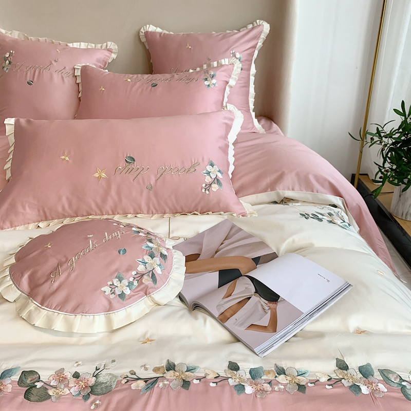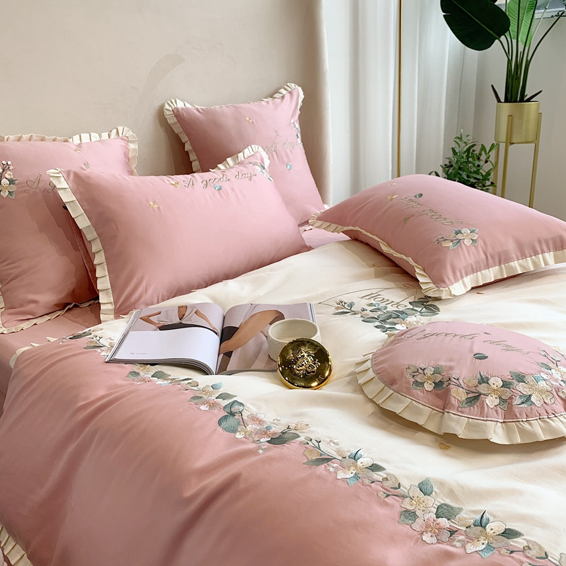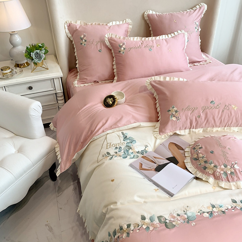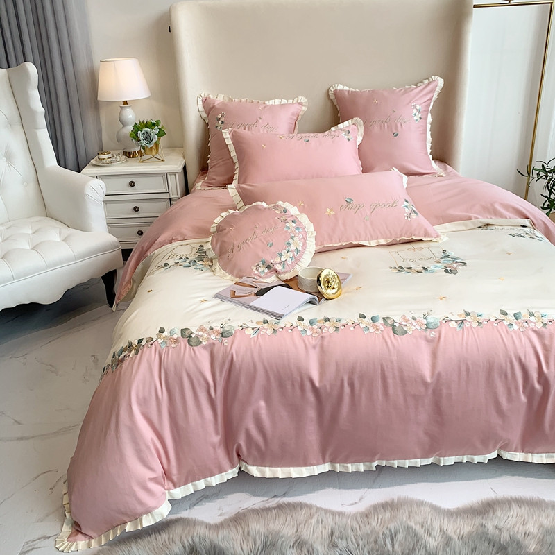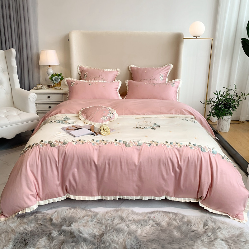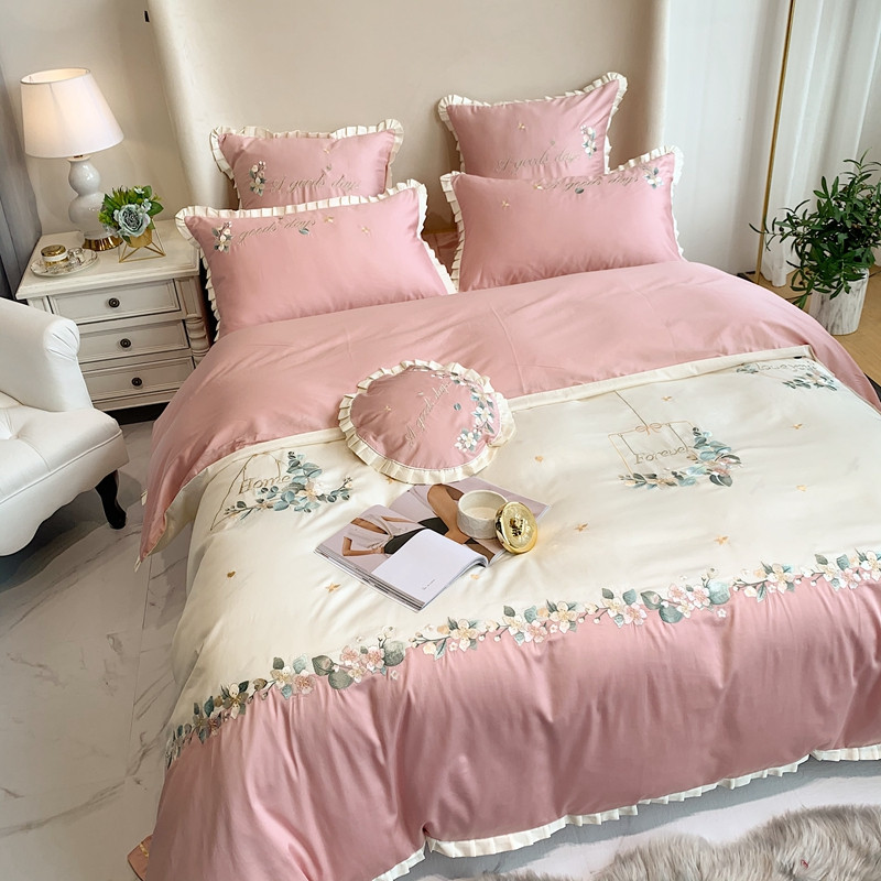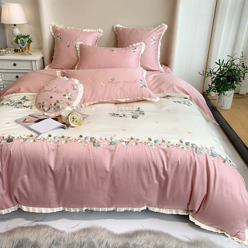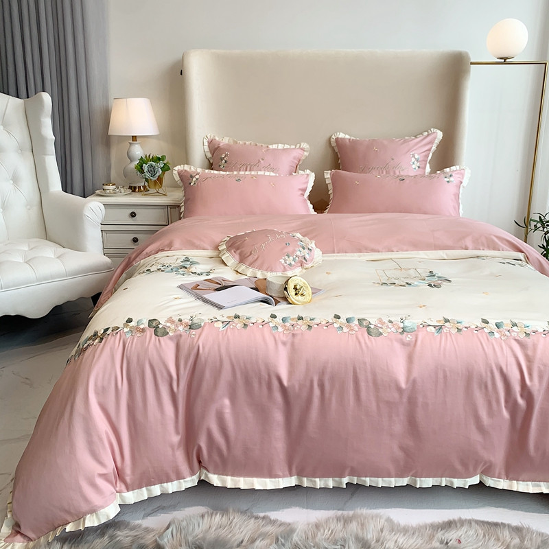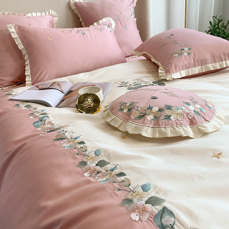 商品名称:馨蕊家居 2021新款60s双股埃及长绒棉四件套花开半夏-粉