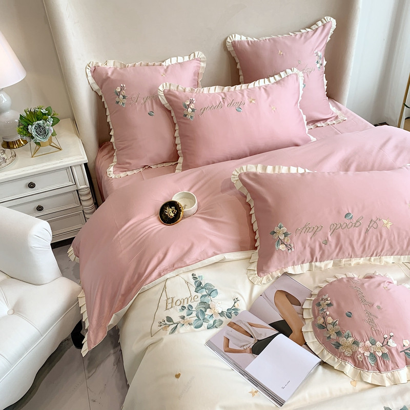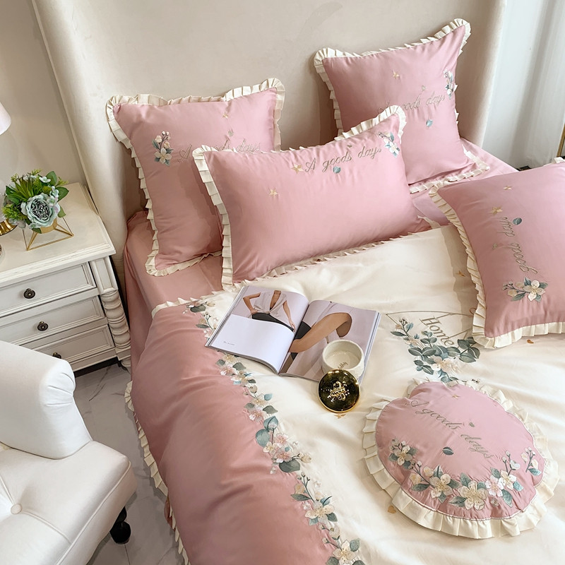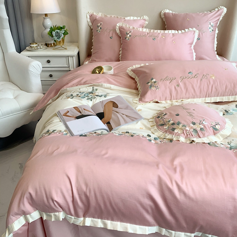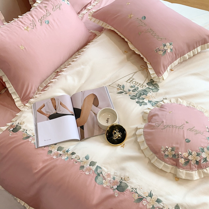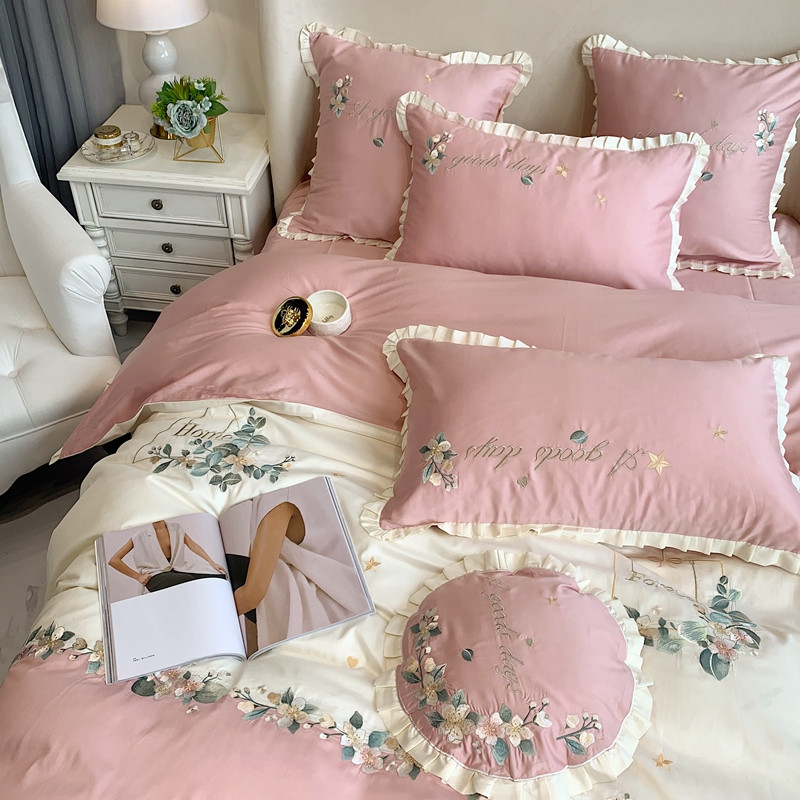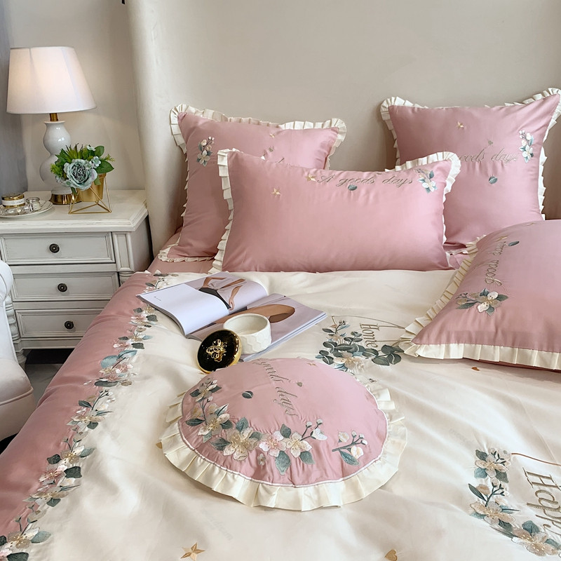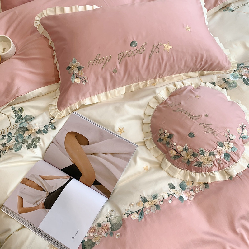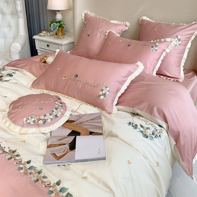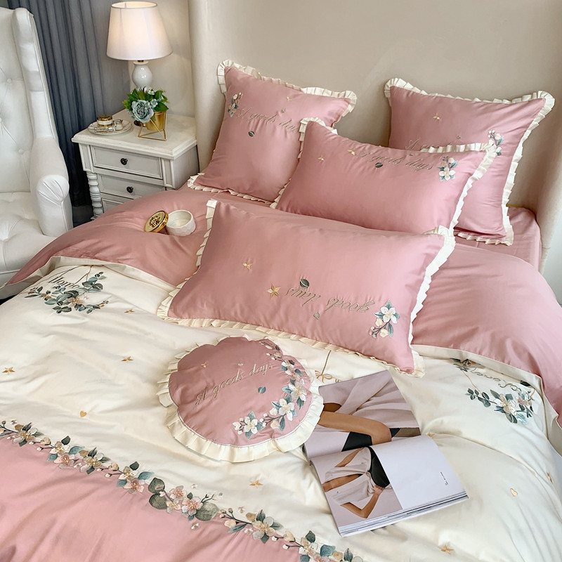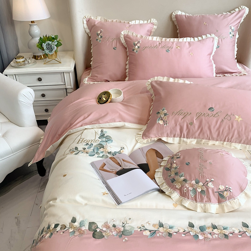 商品名称:馨蕊家居 2021新款60s双股埃及长绒棉四件套花开半夏-粉