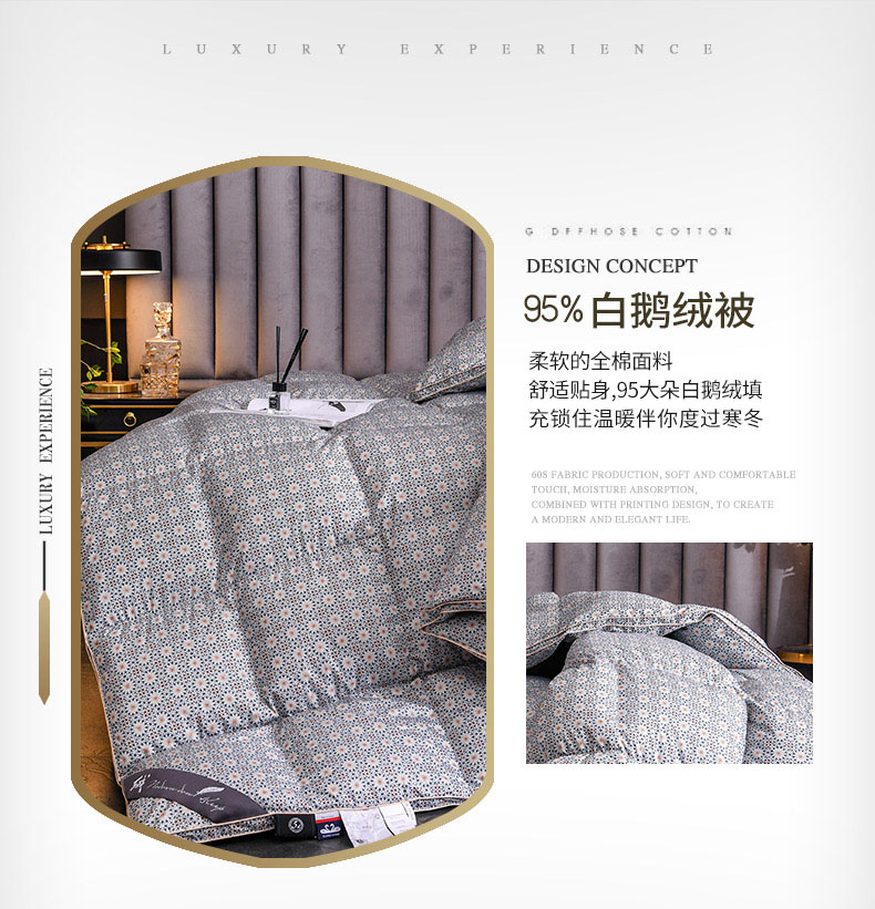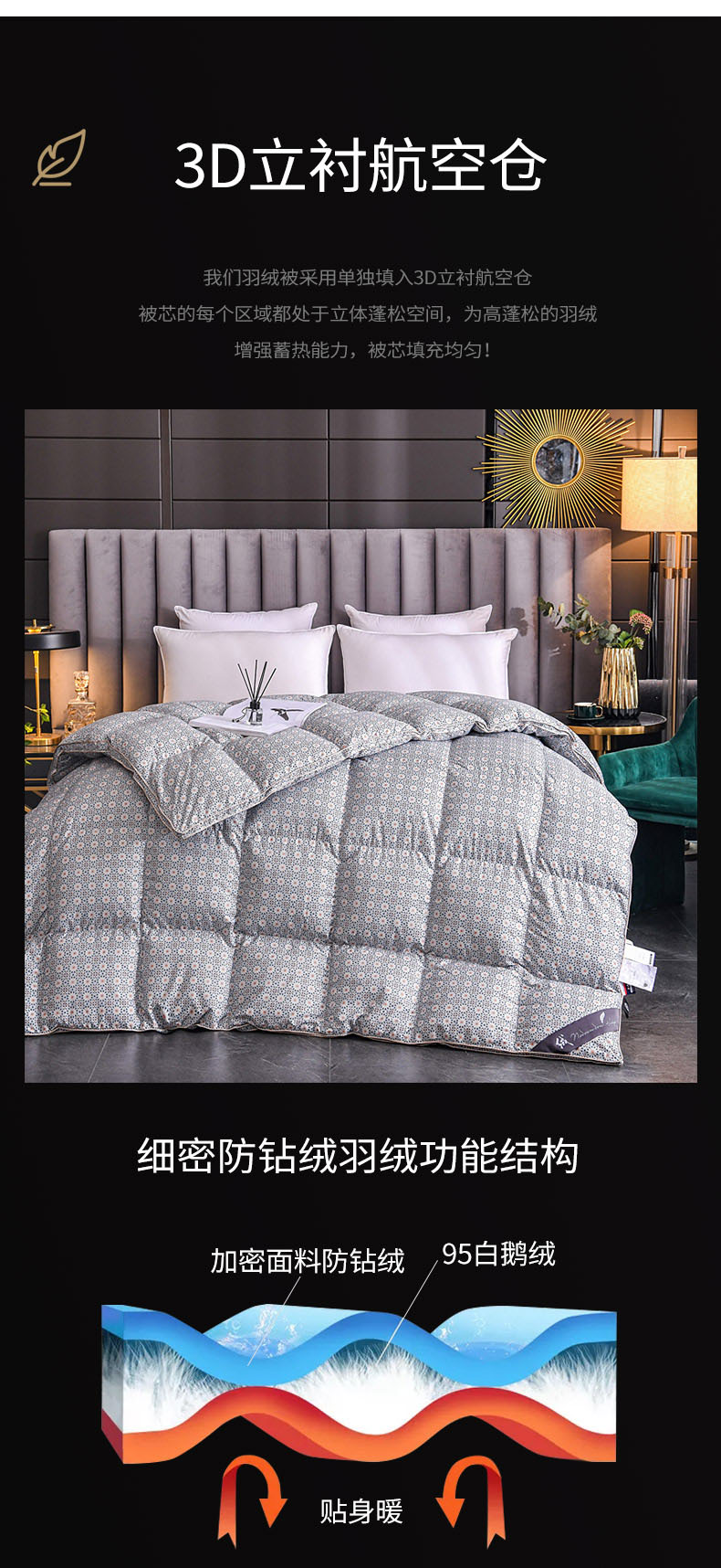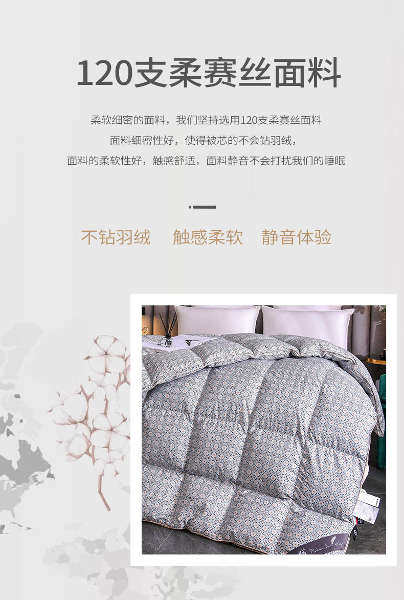 (总)绒研羽绒 2025新款60支长绒棉95白鹅绒立体扭花被,白色,灰色,豆沙