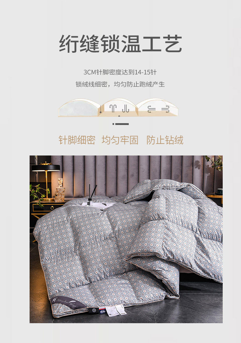 绒研羽绒 2025新款魅力人生真丝大提花鹅绒被灰色,灰色