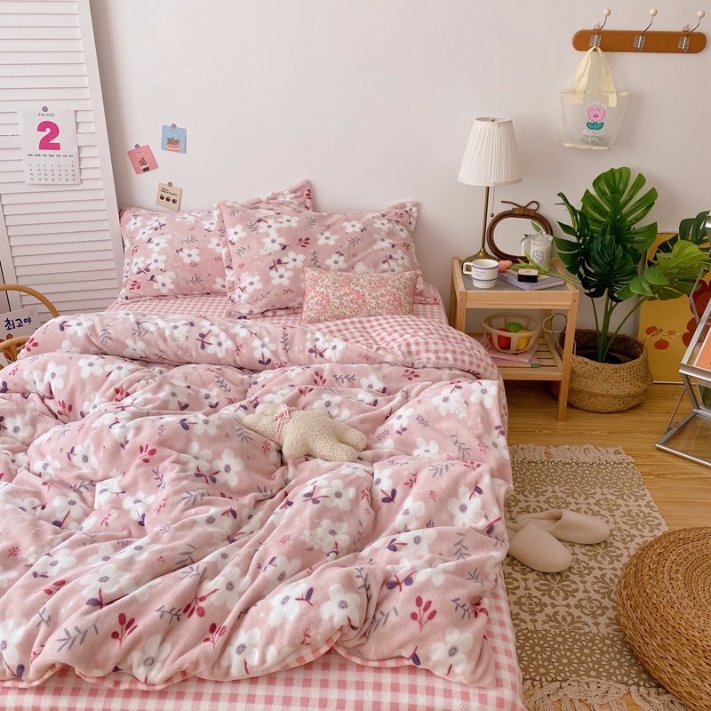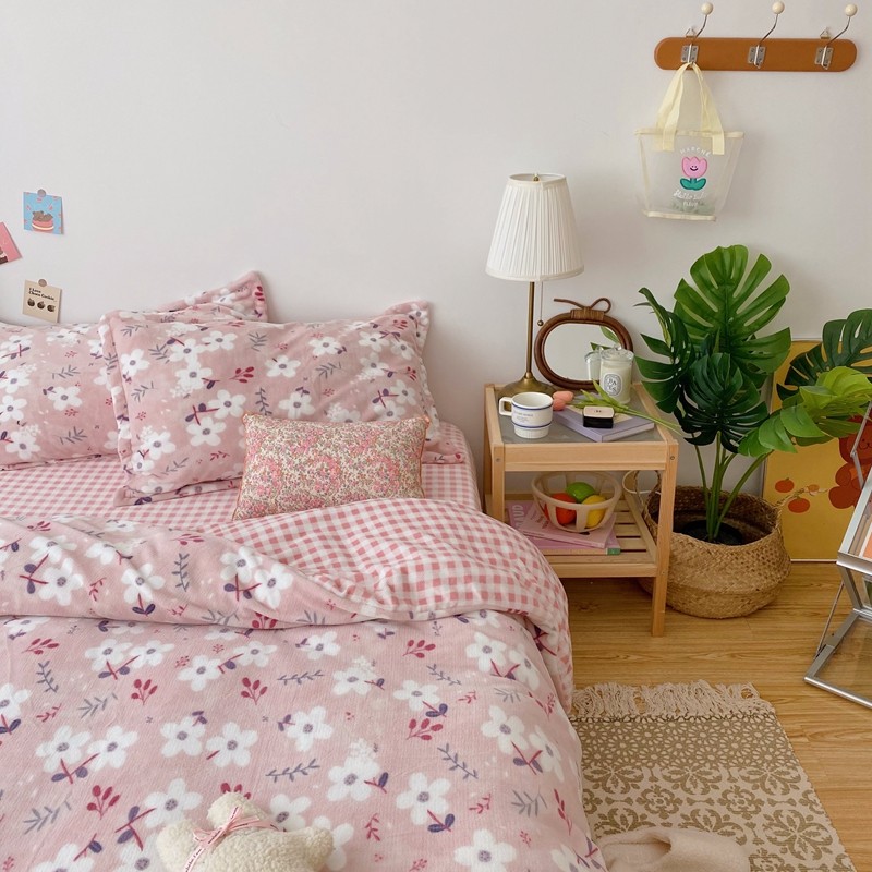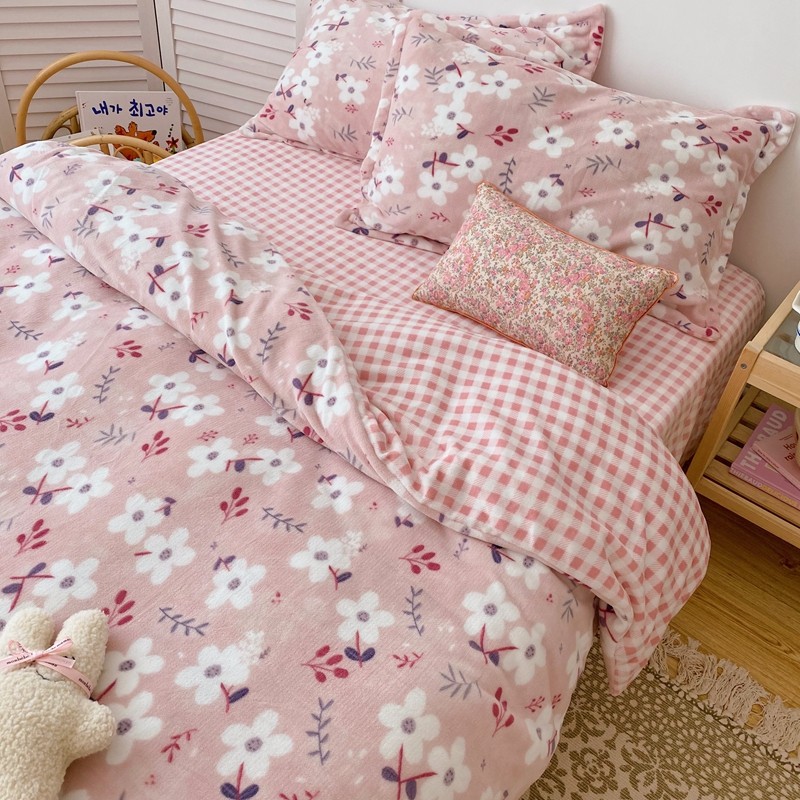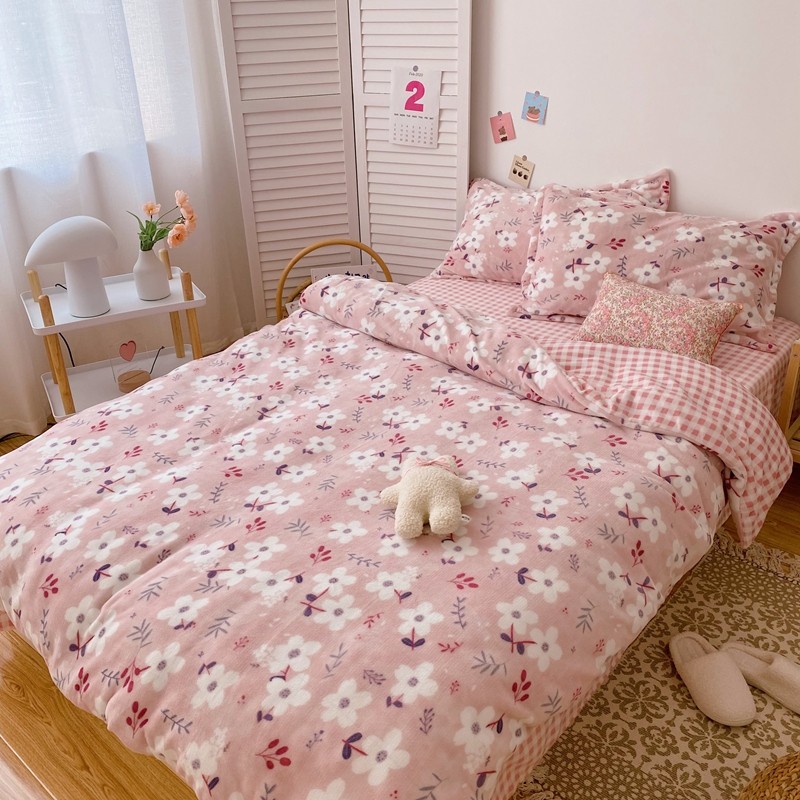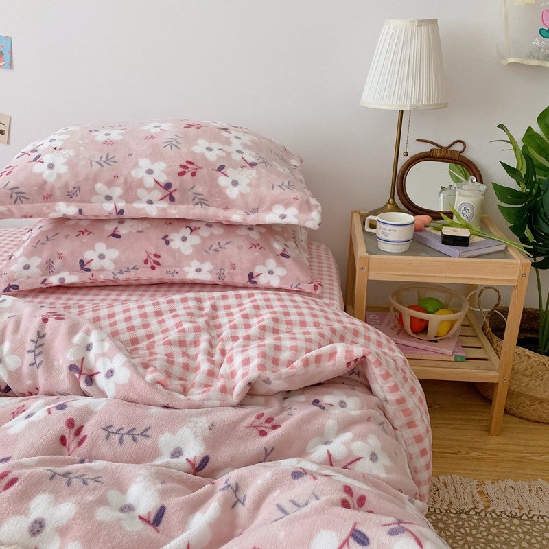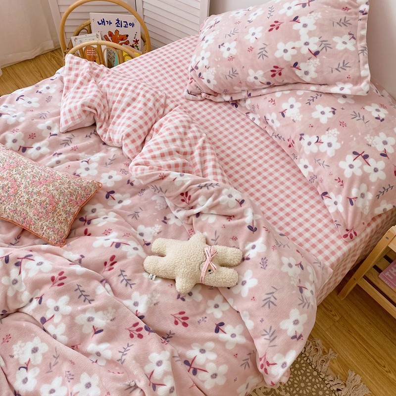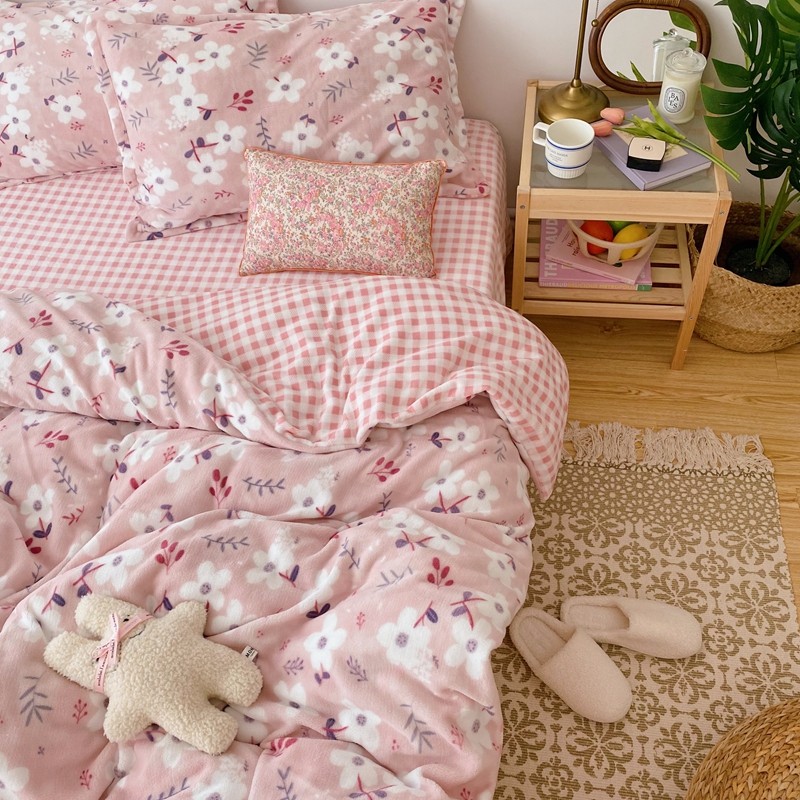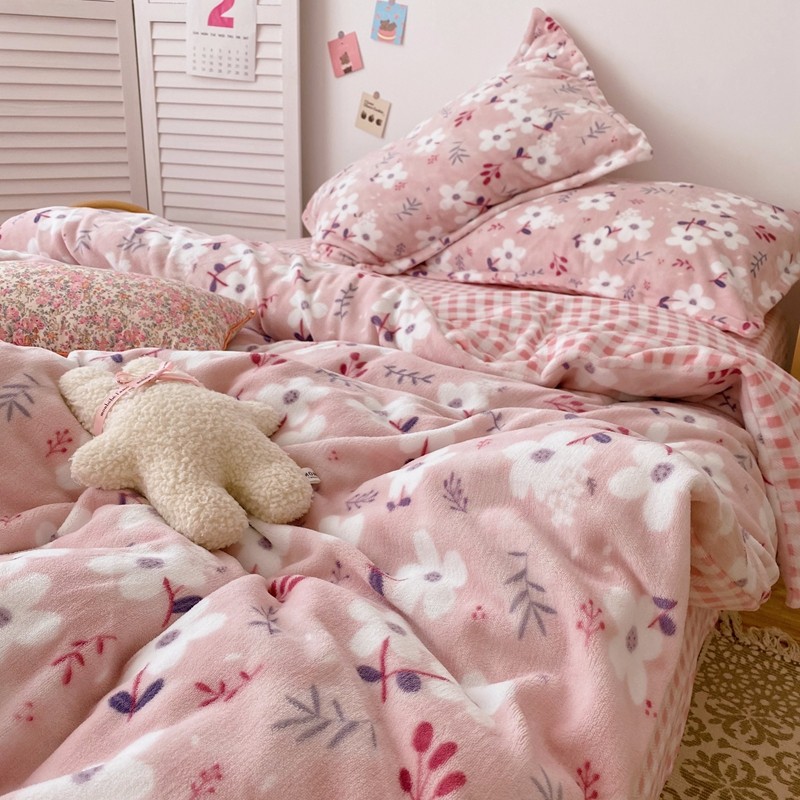 星期八 2020新款秋冬加厚保暖牛奶绒四件套 漫花粉