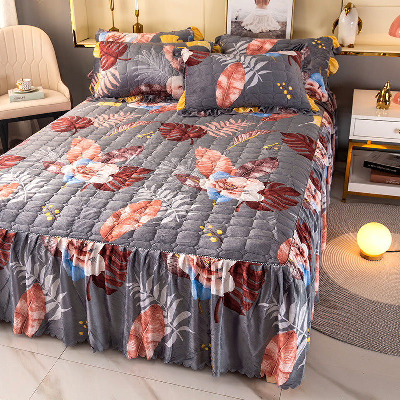 商品名称:纽缦 2020新款绒夹棉床裙 花语灰