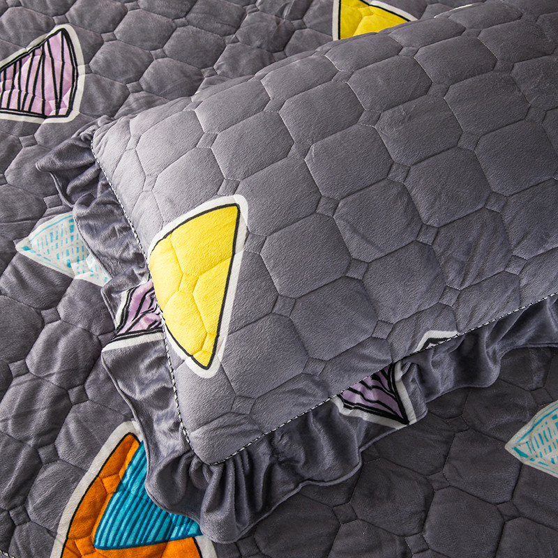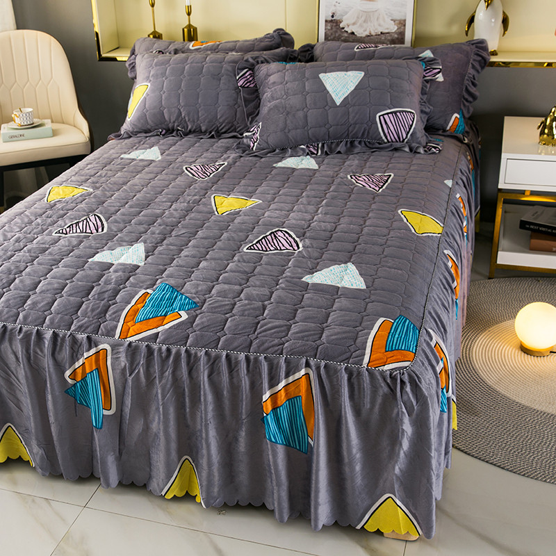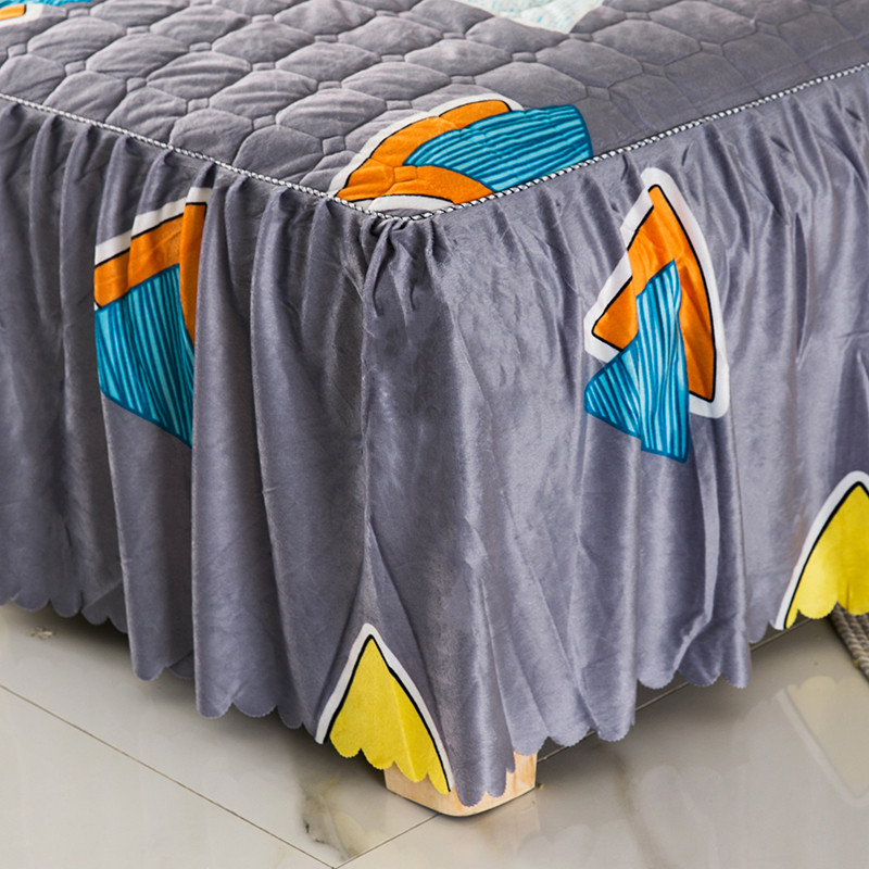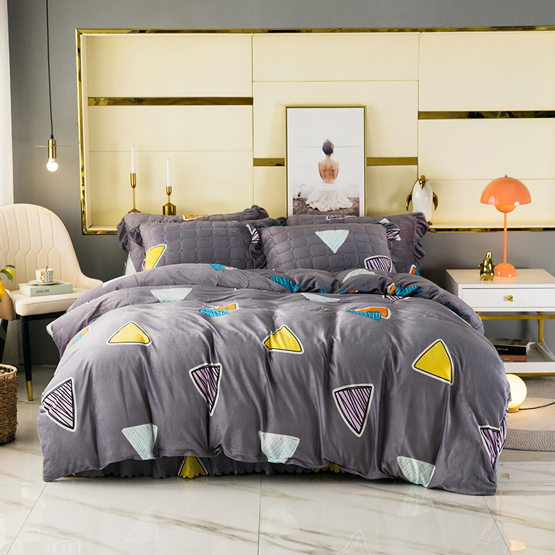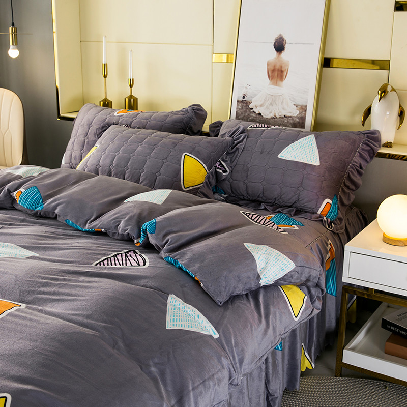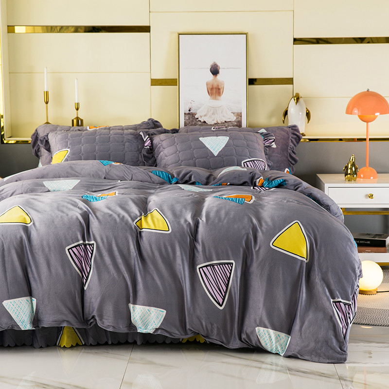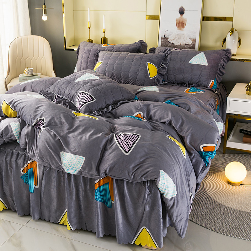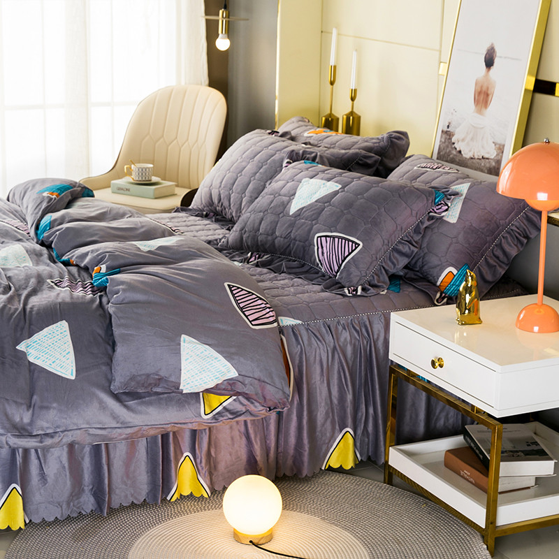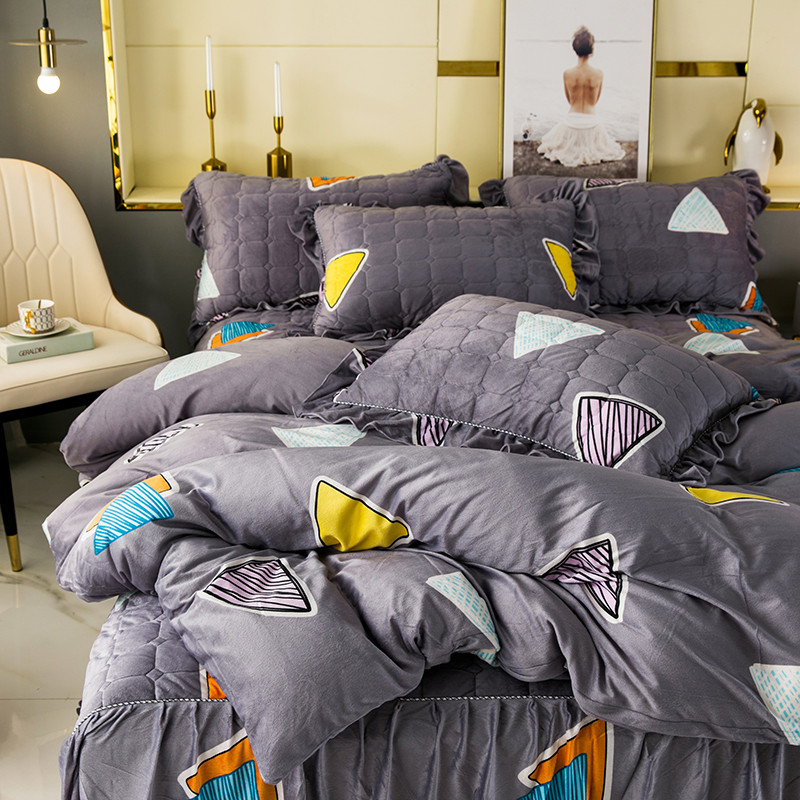 商品名称:纽缦 2020新款绒夹棉床裙四件套 几何图案灰