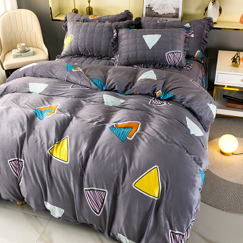 纽缦 2020新款绒夹棉床裙四件套 几何图案灰