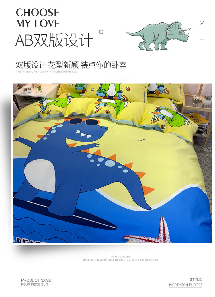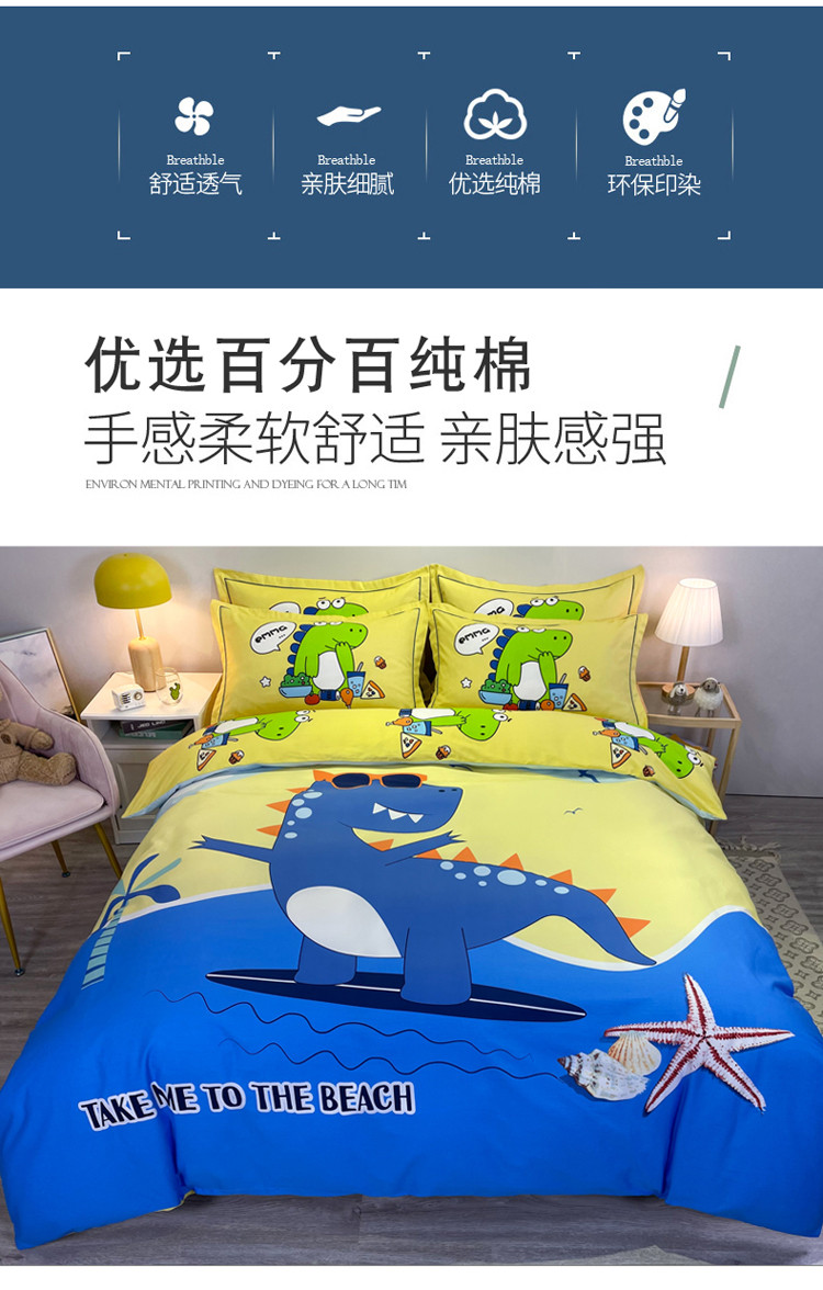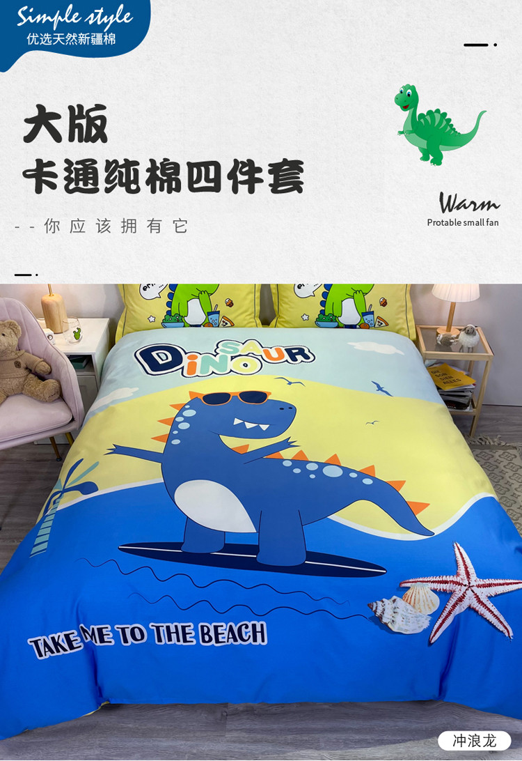 当前位置: 91家纺网 > 商品网购 > 床品套件 > 四件套 > 全棉普通四件套 > 金爱家 2021新款13372大版全棉卡通四件套 冲浪龙