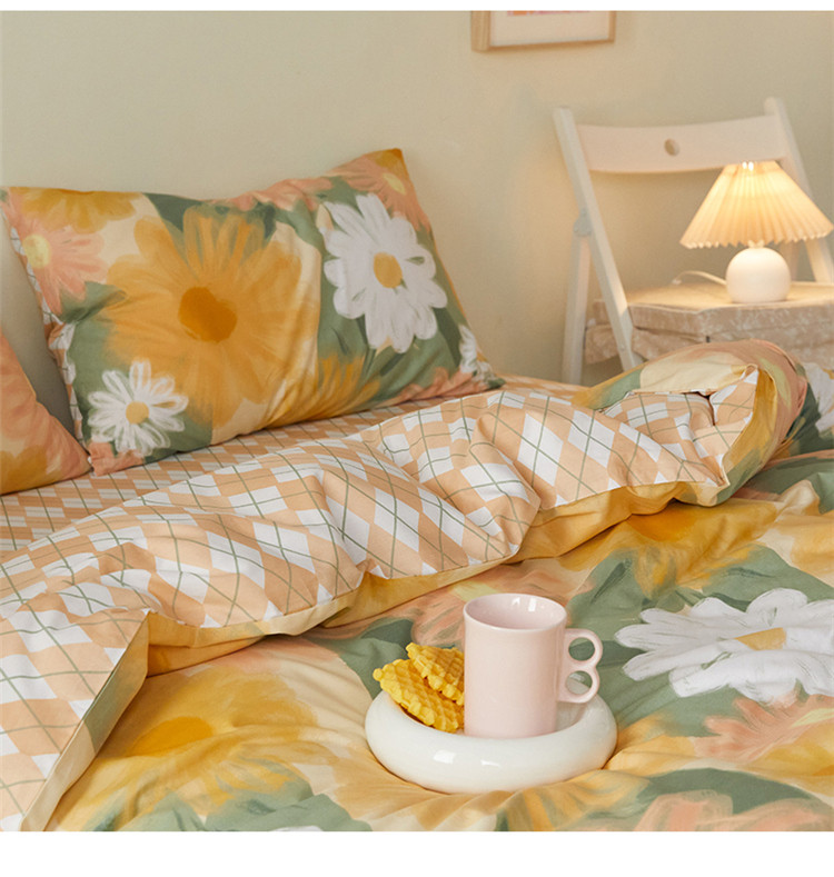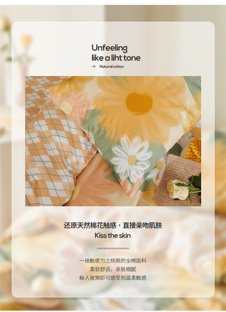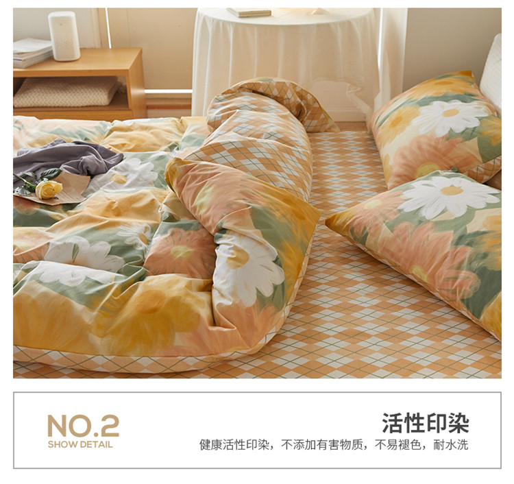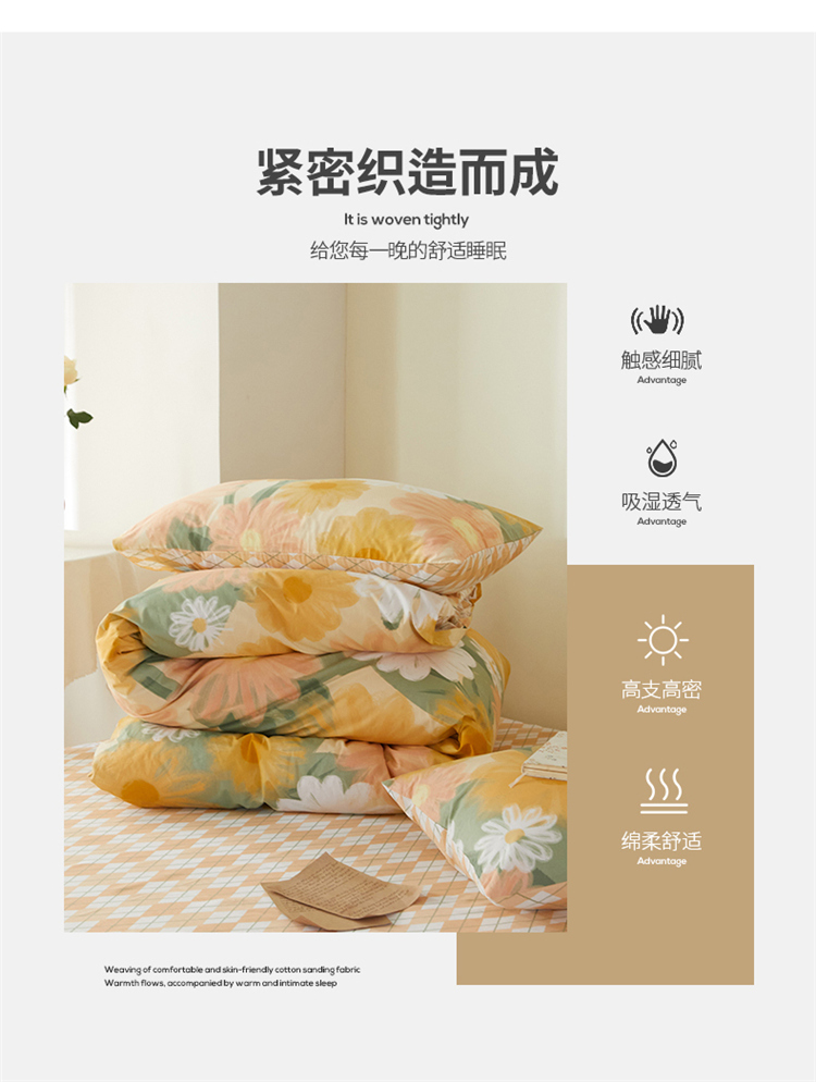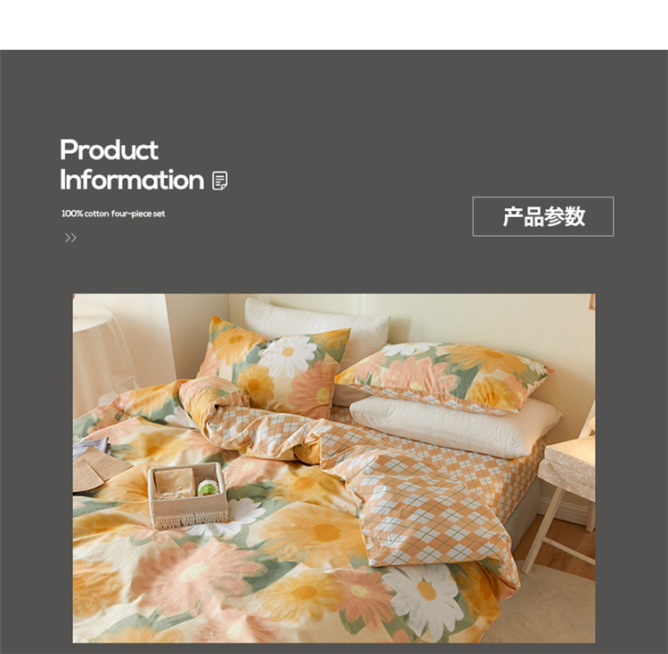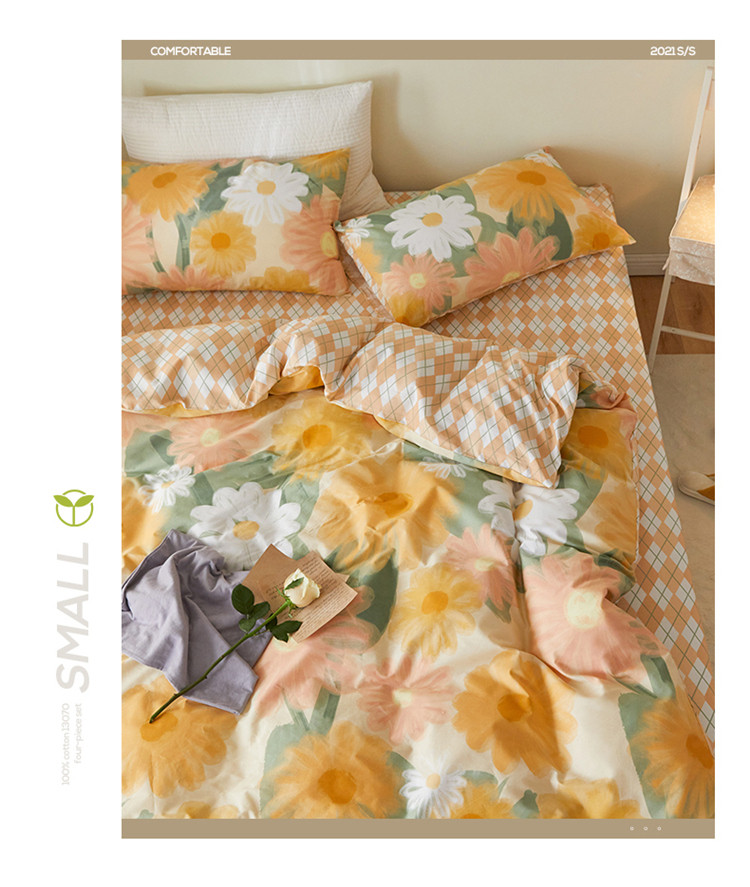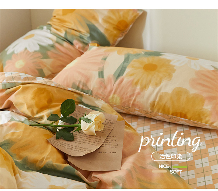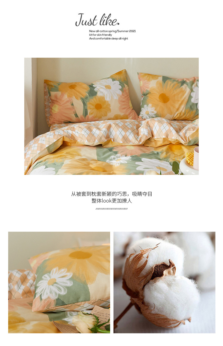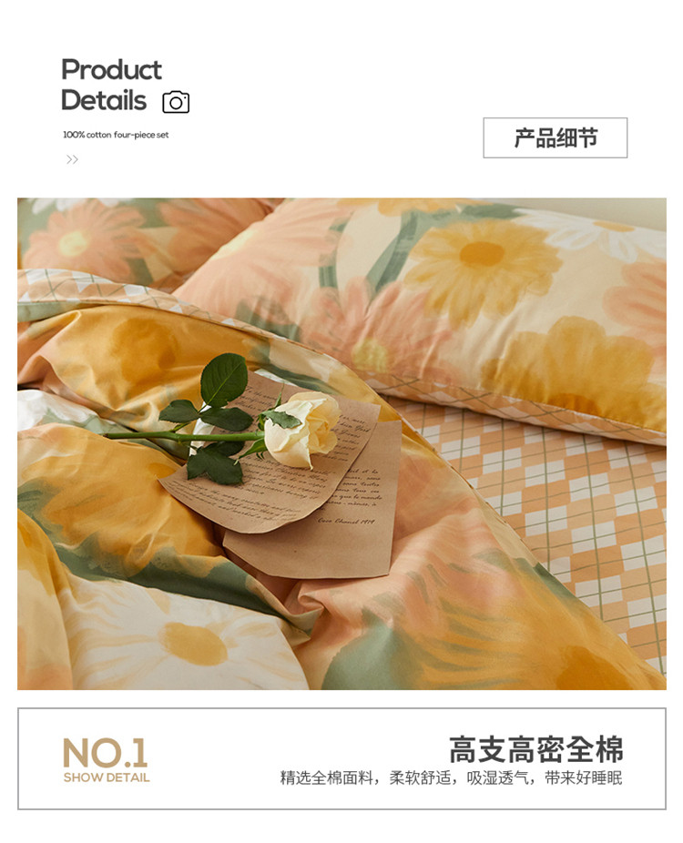 商品名称:窝米 2021新款全棉四件套花卉系列 阳光花语-黄