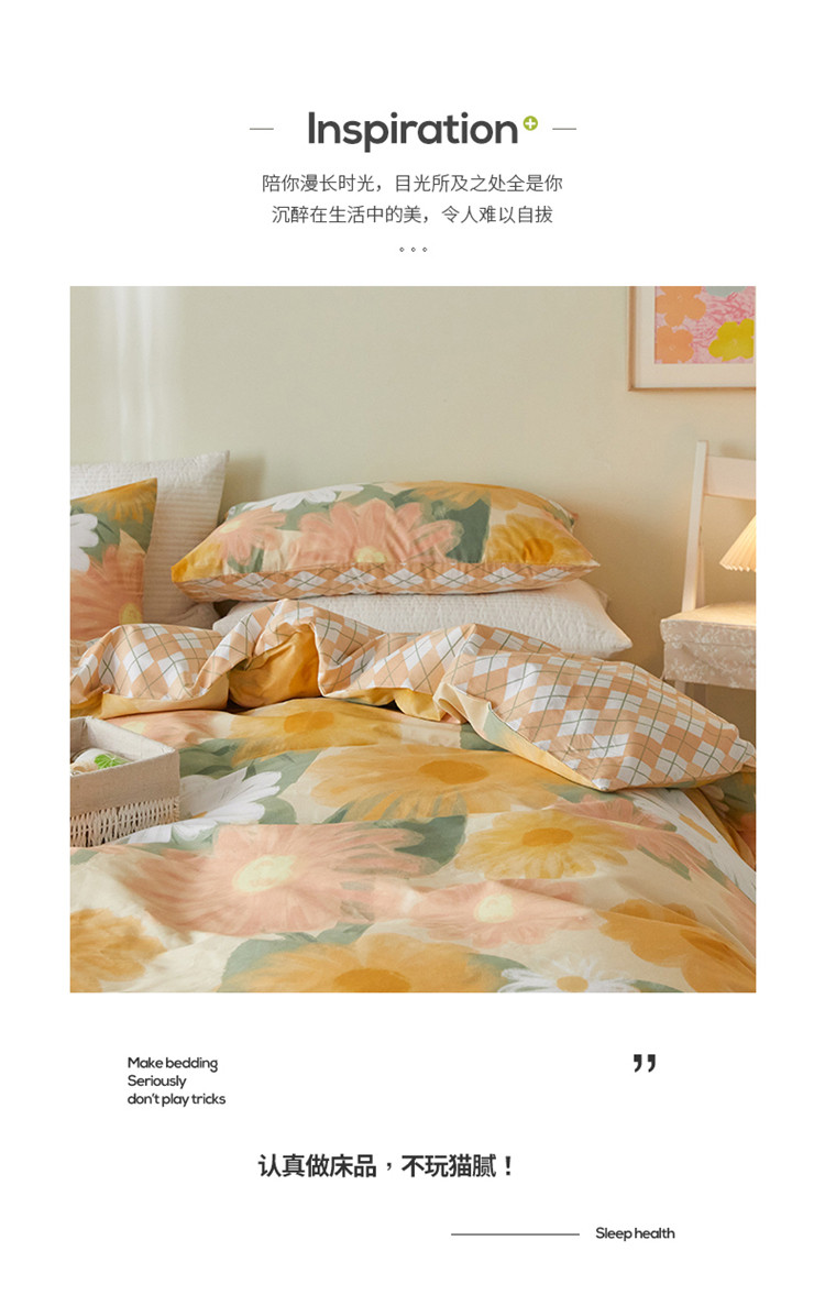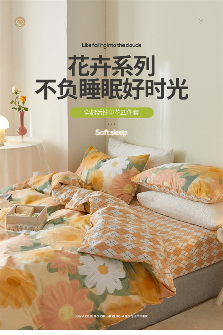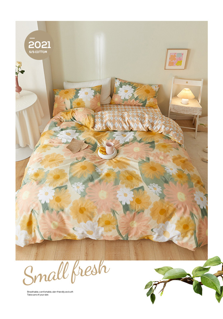 窝米 2021新款全棉四件套花卉系列 阳光花语-黄