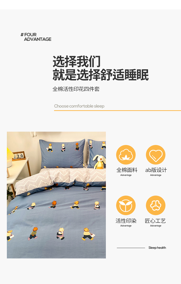 商品名称:捌月13372喷气全棉摩登熊四件套 购物熊