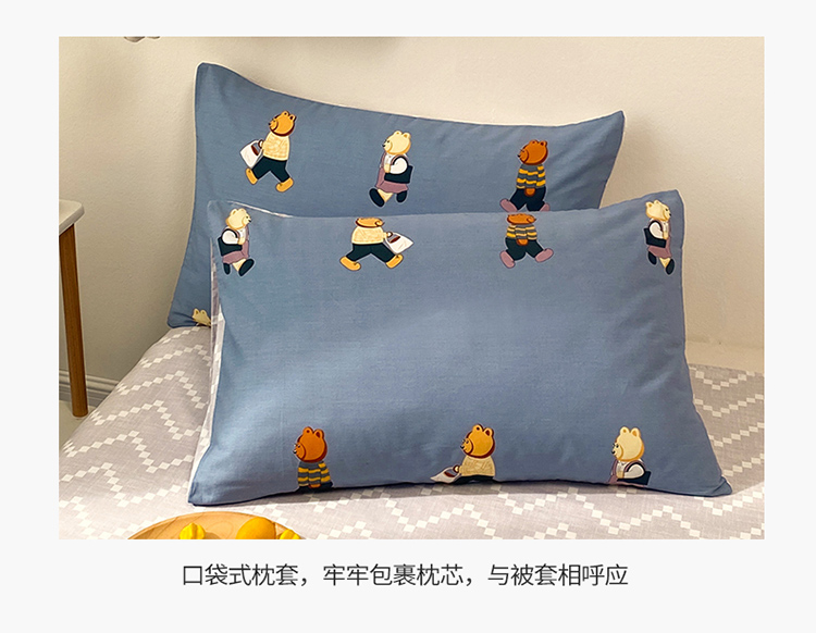 捌月13372喷气全棉摩登熊四件套 购物熊