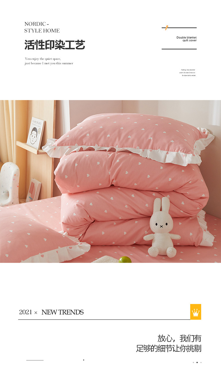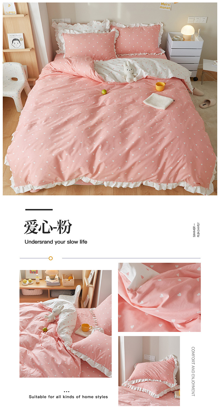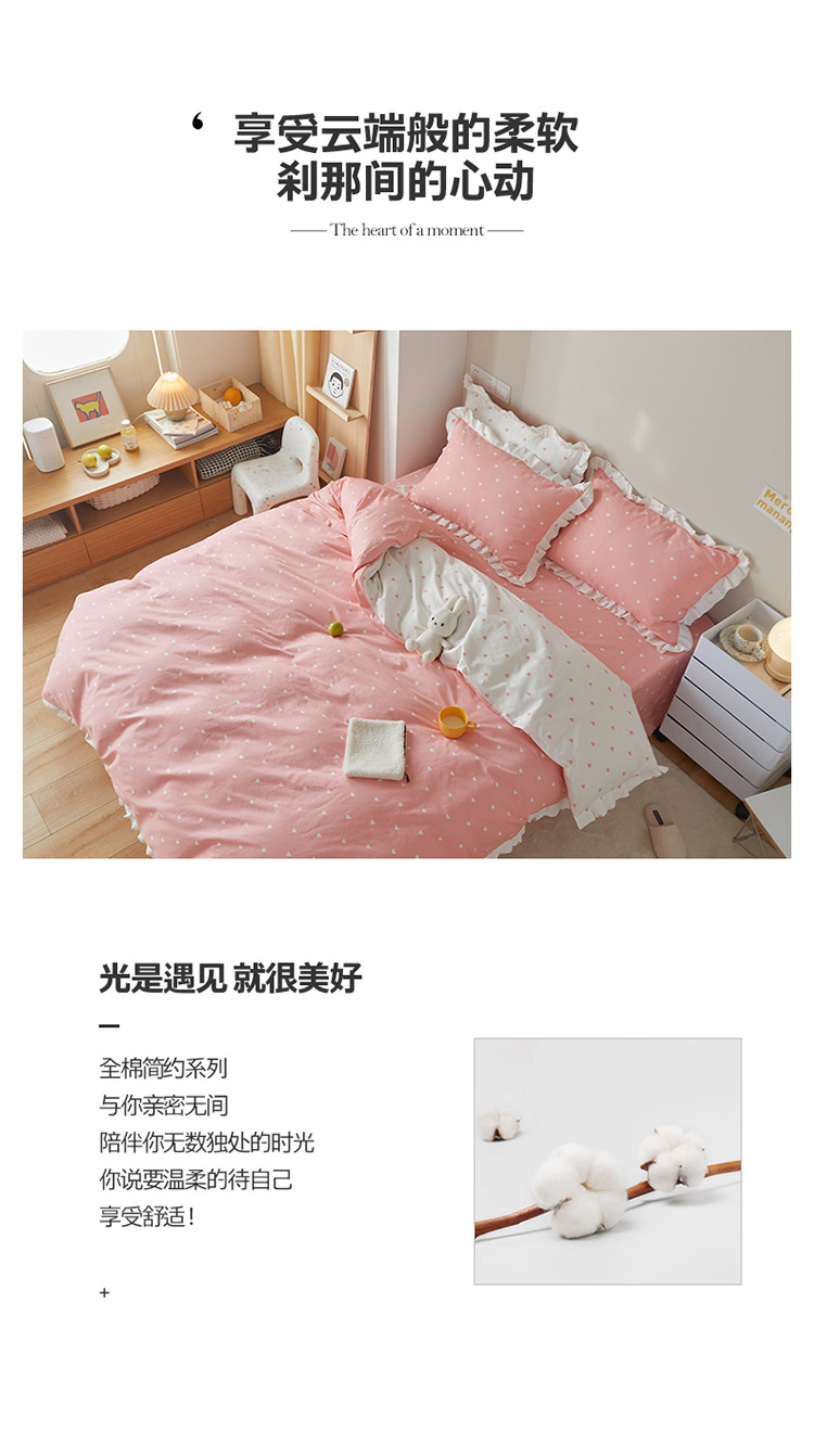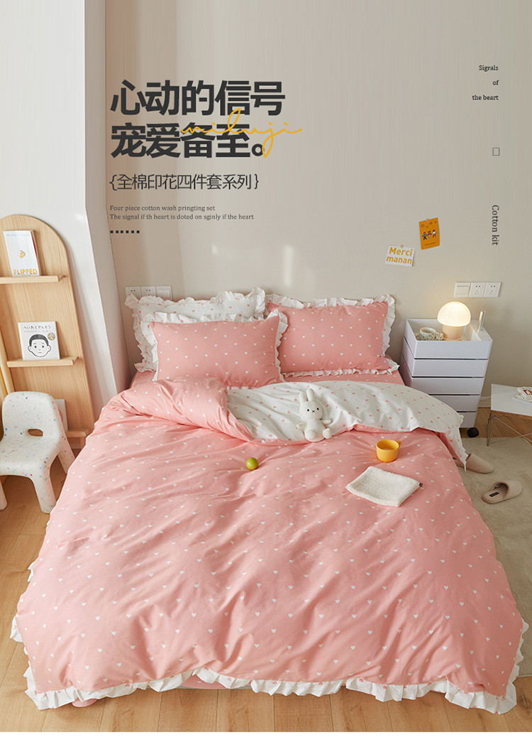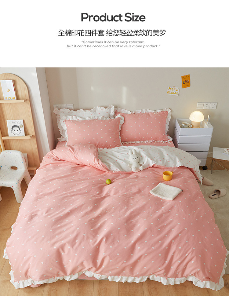 沐棉家居2022年新款全棉印花13372荷叶边系列四件套直播爆款 爱心-粉
