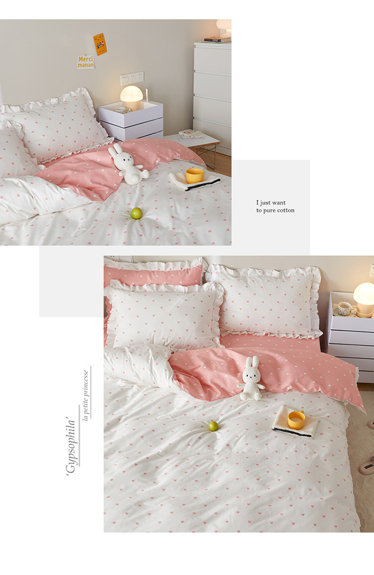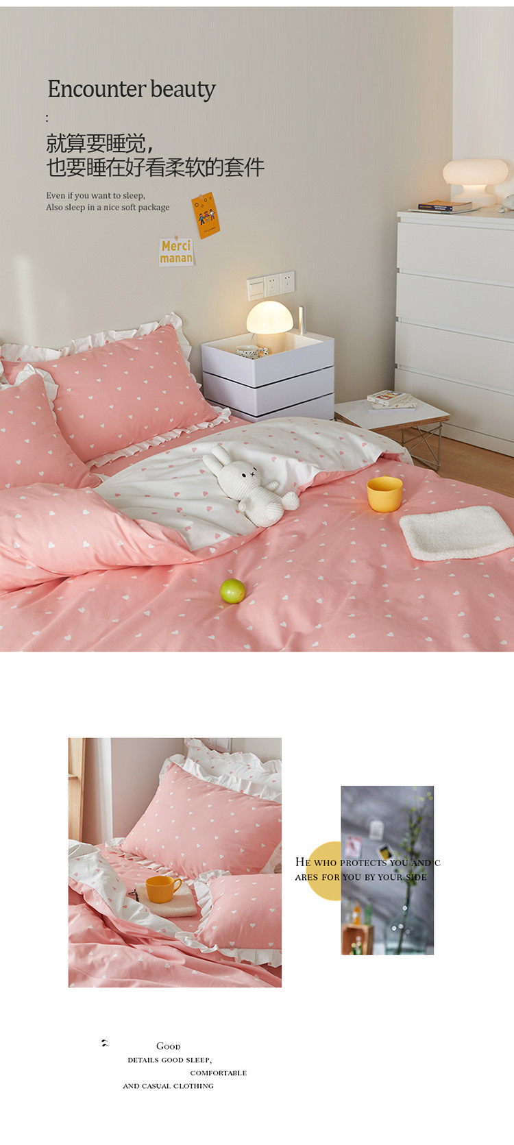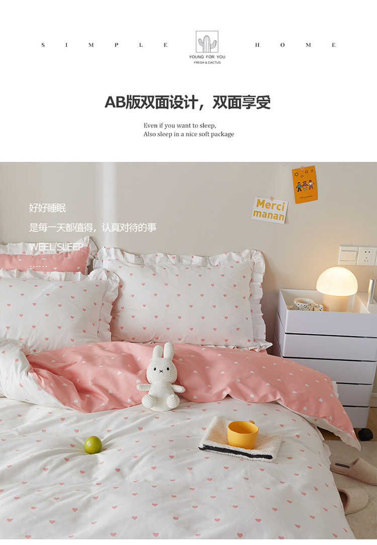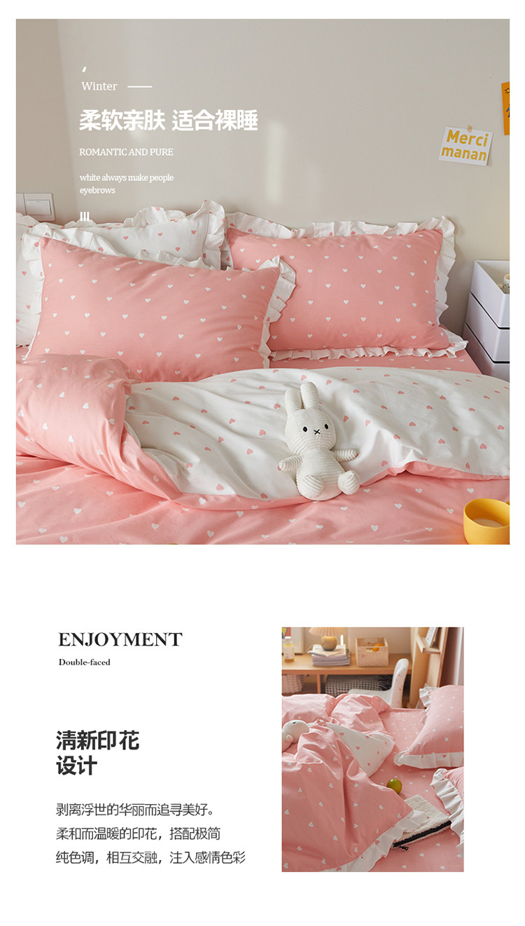 沐棉家居2022年新款全棉印花13372荷叶边系列四件套直播爆款 爱心-粉