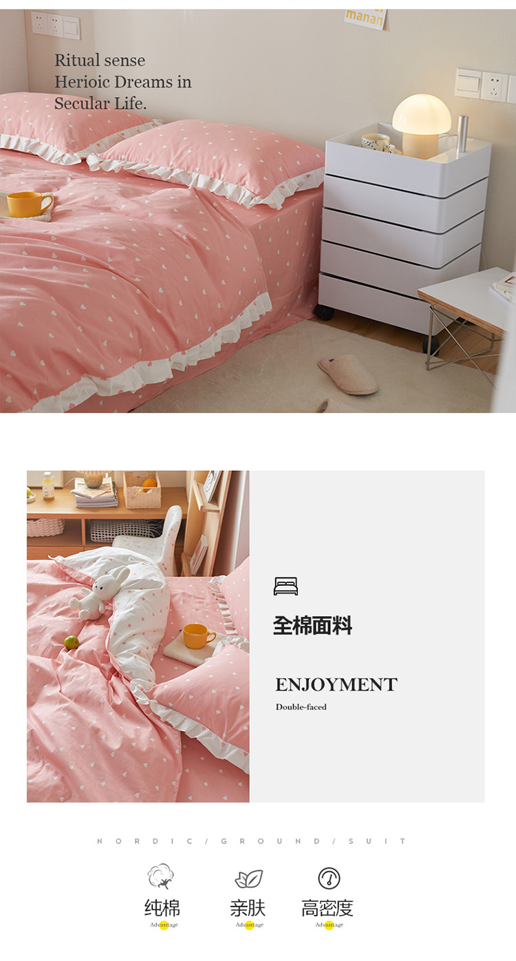 商品名称:沐棉家居2022年新款全棉印花13372荷叶边系列四件套直播爆款 爱心-粉