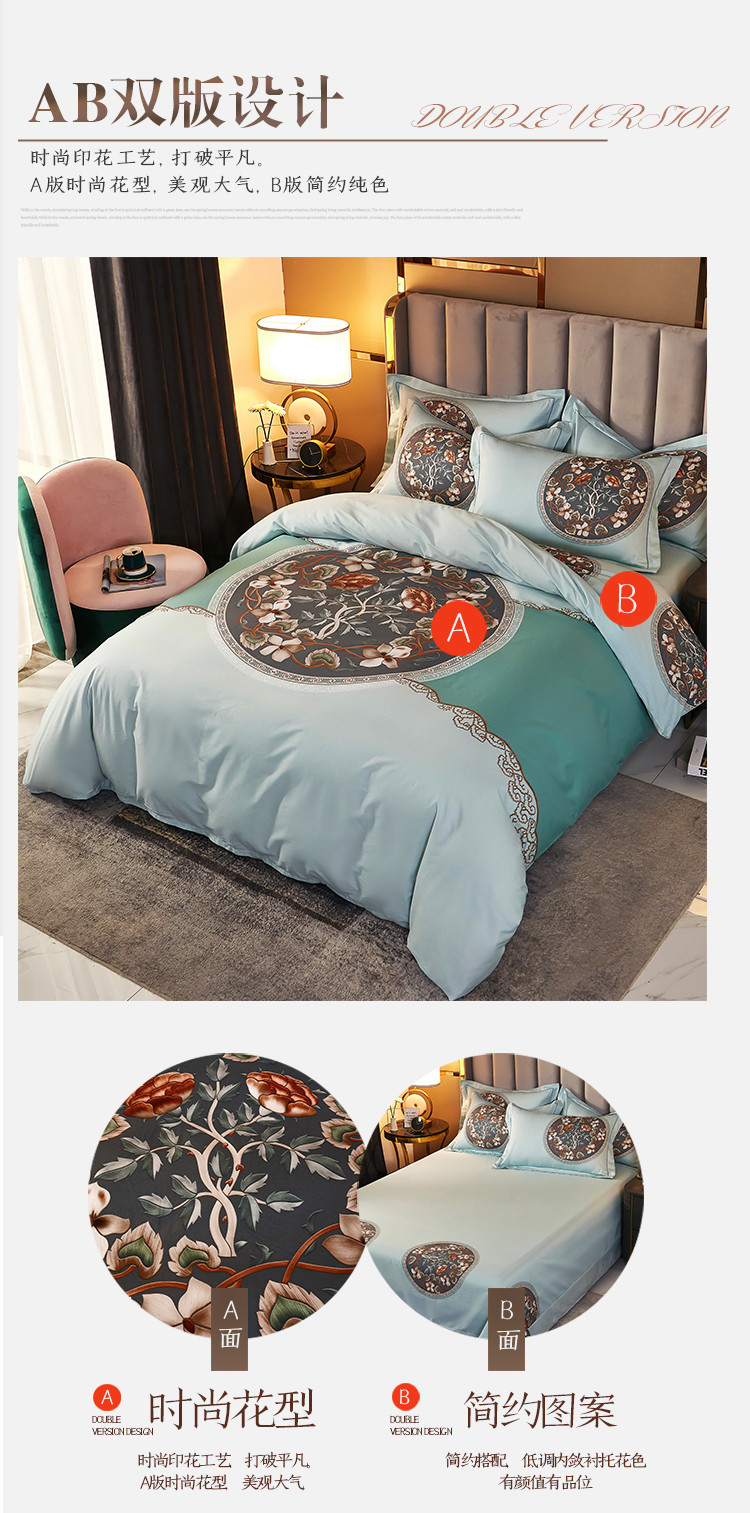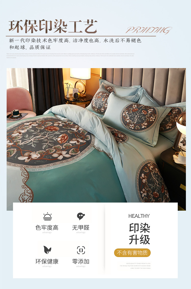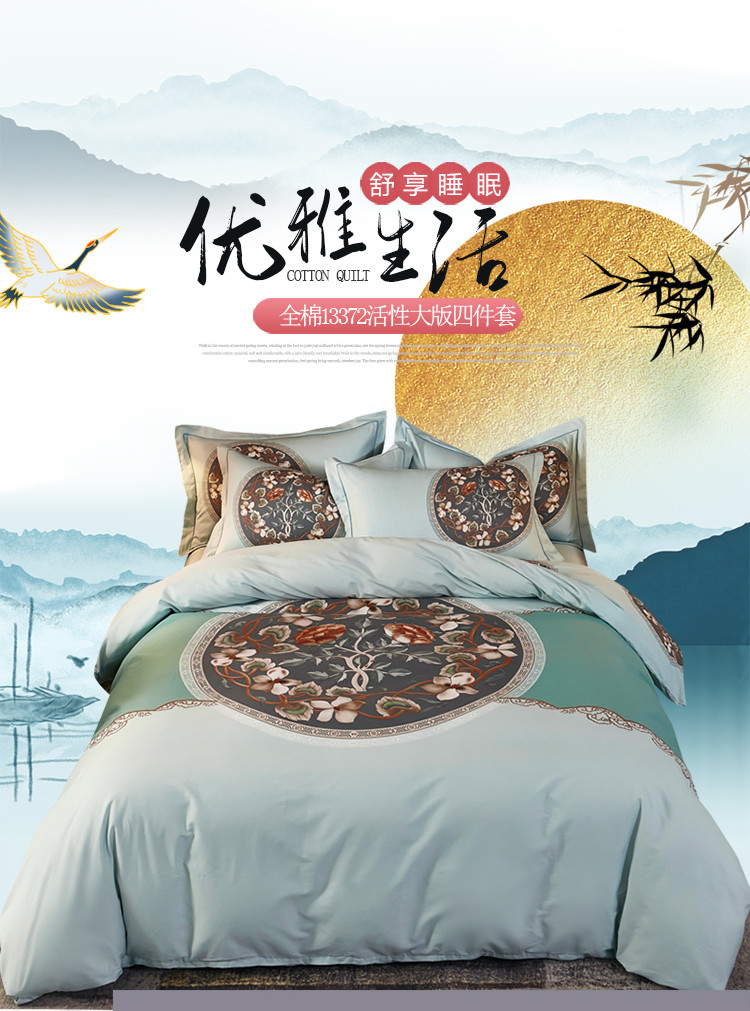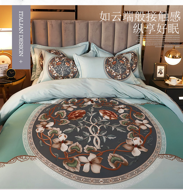 雲归梦2021全棉大版四件套第二批花卉格调系列 东方韵绿