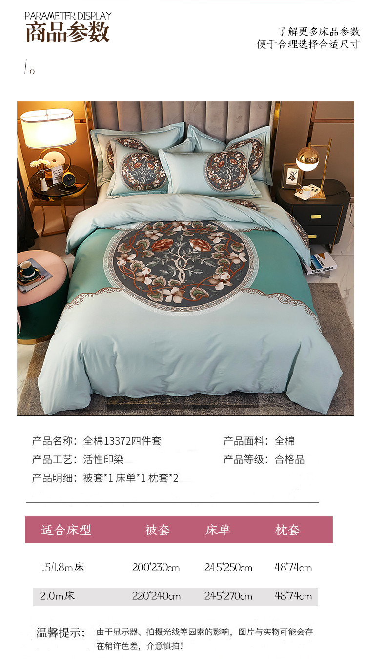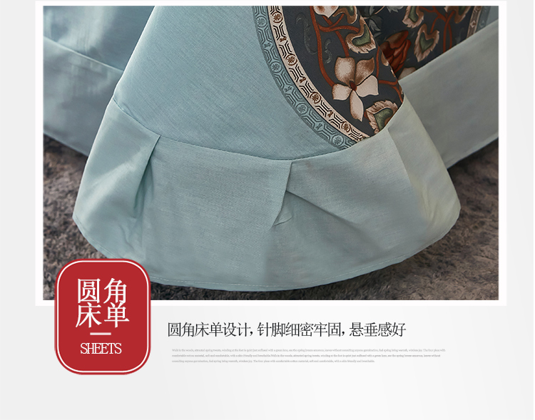 商品名称:雲归梦2021全棉大版四件套第二批花卉格调系列 东方韵绿