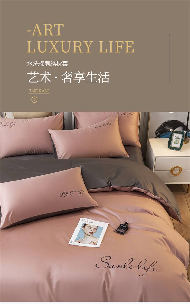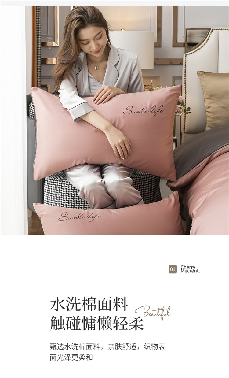 商品名称:古吉梦 2024新款水洗棉-S双拼单品枕套 紫豆沙
