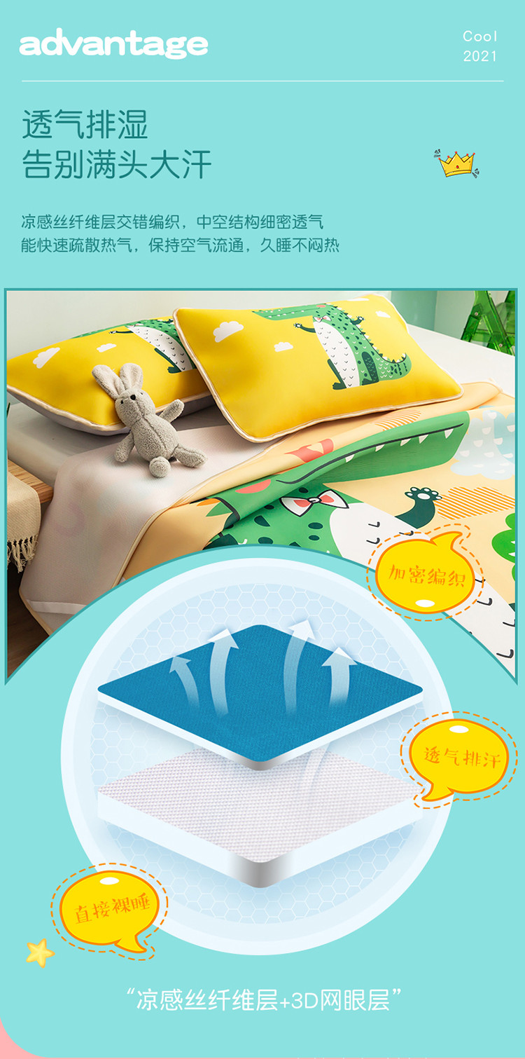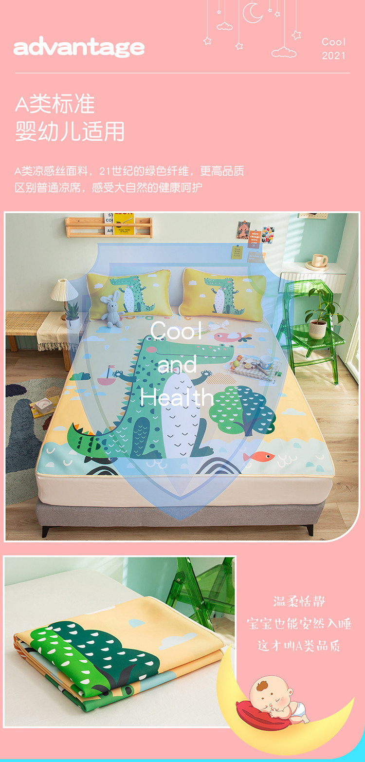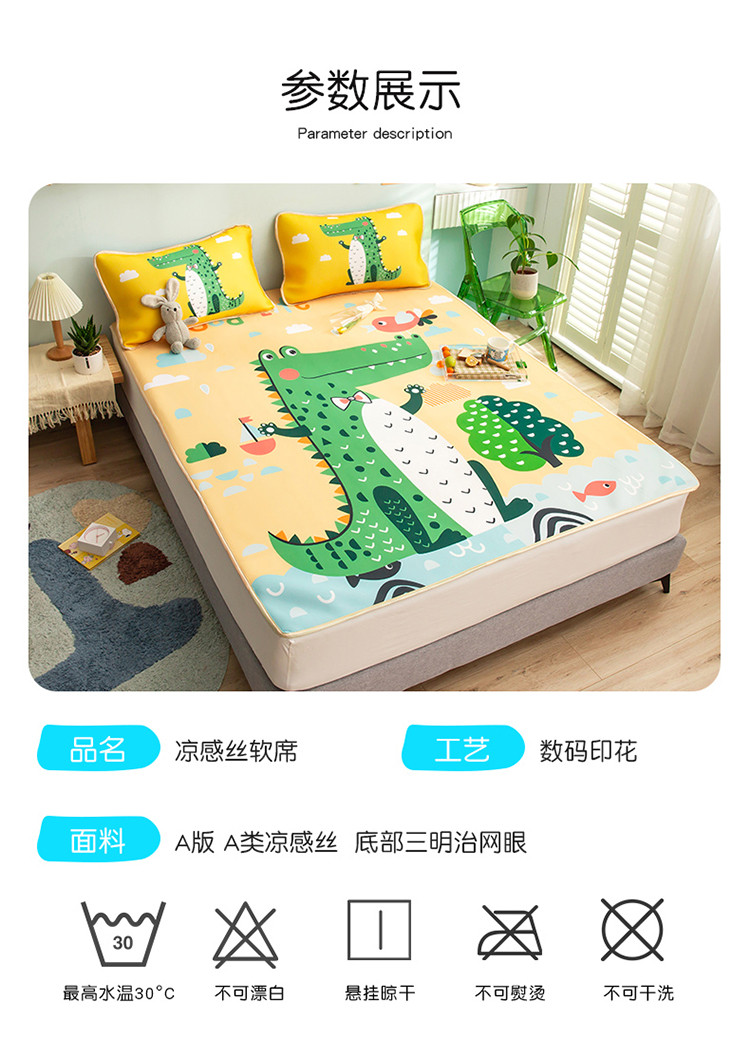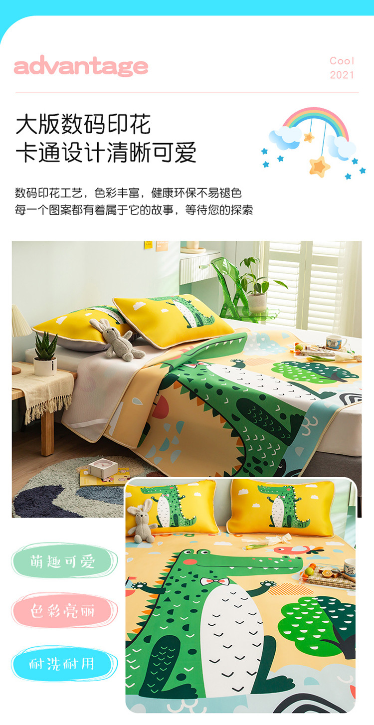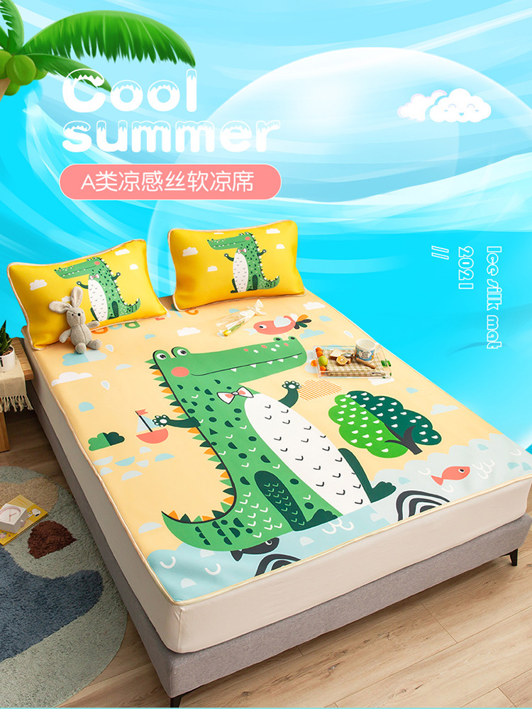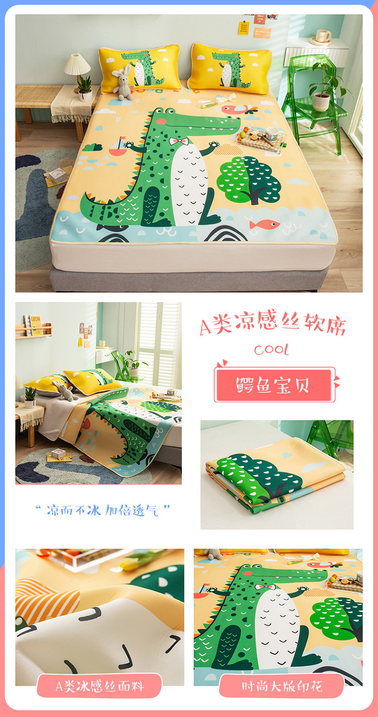 商品名称:塔塔 2025新款凉感丝大版印花软席凉席三件套 鳄鱼宝贝