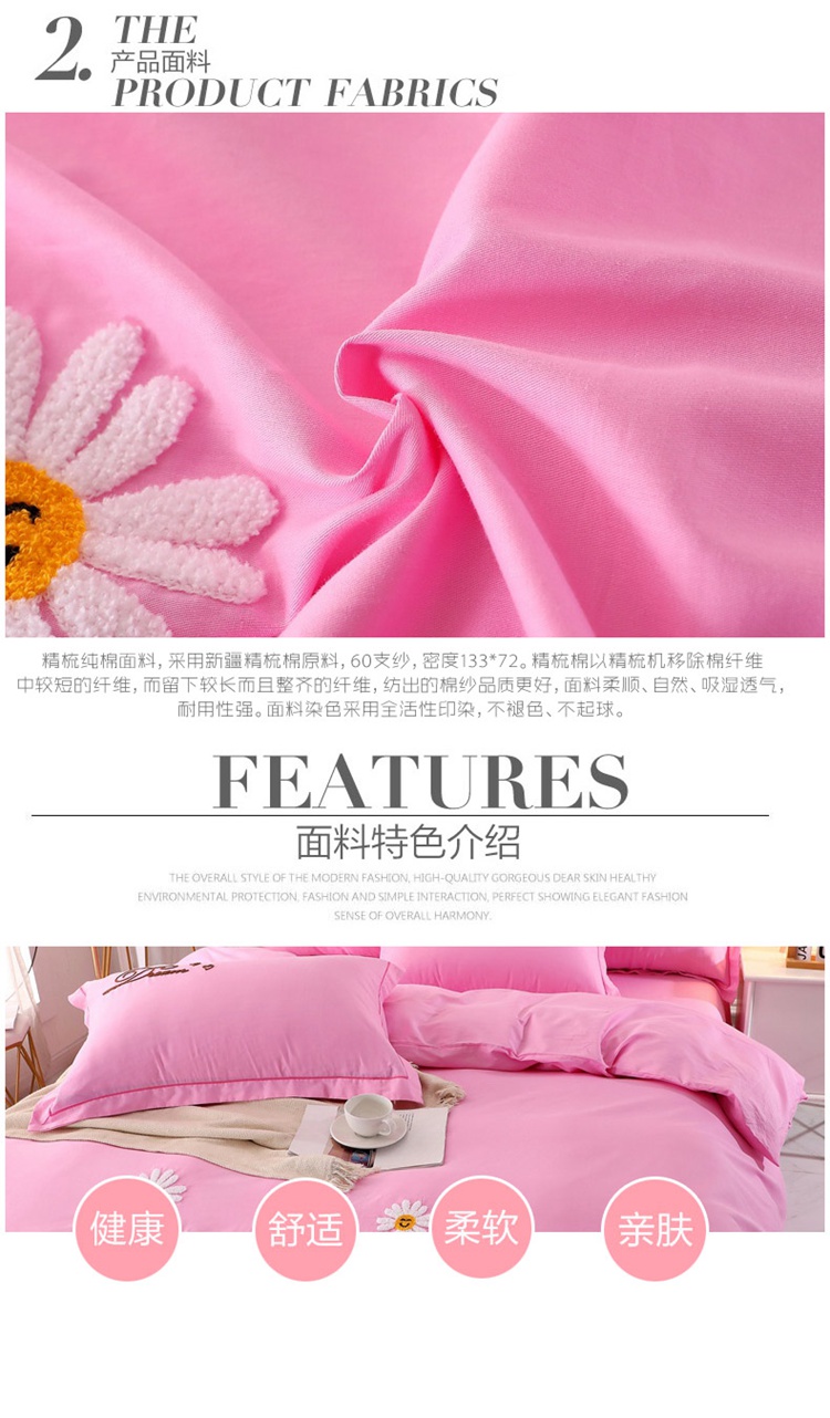 商品名称:晶缦家纺 美梦雏菊全棉13372毛巾绣四件套 美梦雏菊-粉色