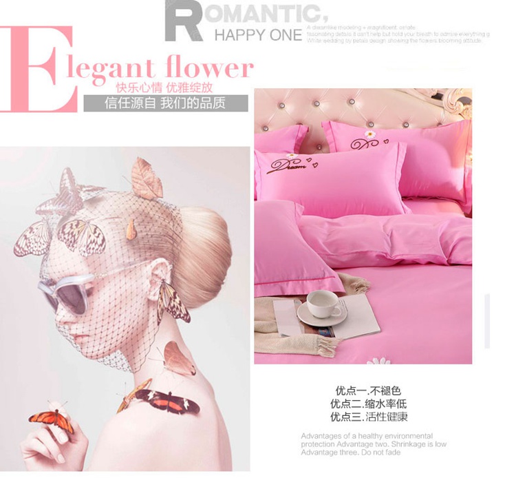 晶缦家纺 美梦雏菊全棉13372毛巾绣四件套 美梦雏菊-粉色