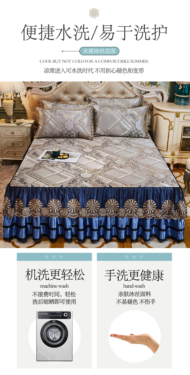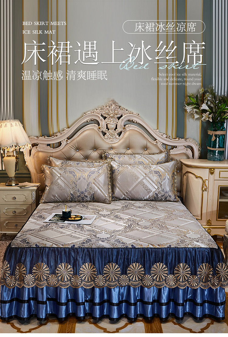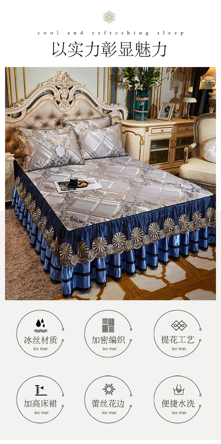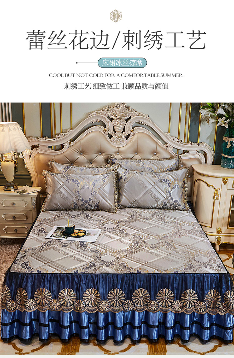 商品名称:网红馆 2025新款大提花冰丝凉席床裙款三件套 欧陆风情