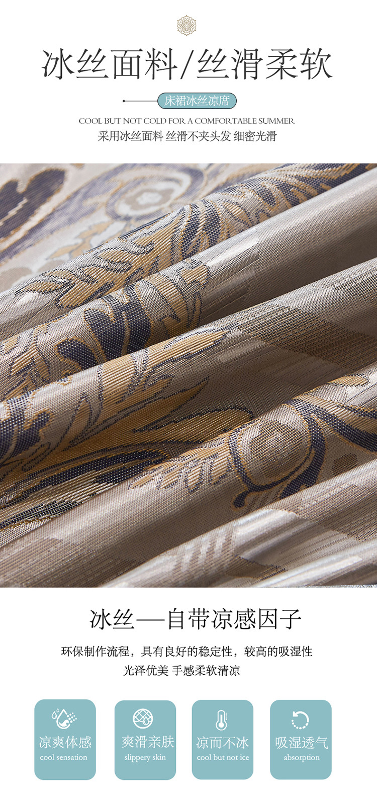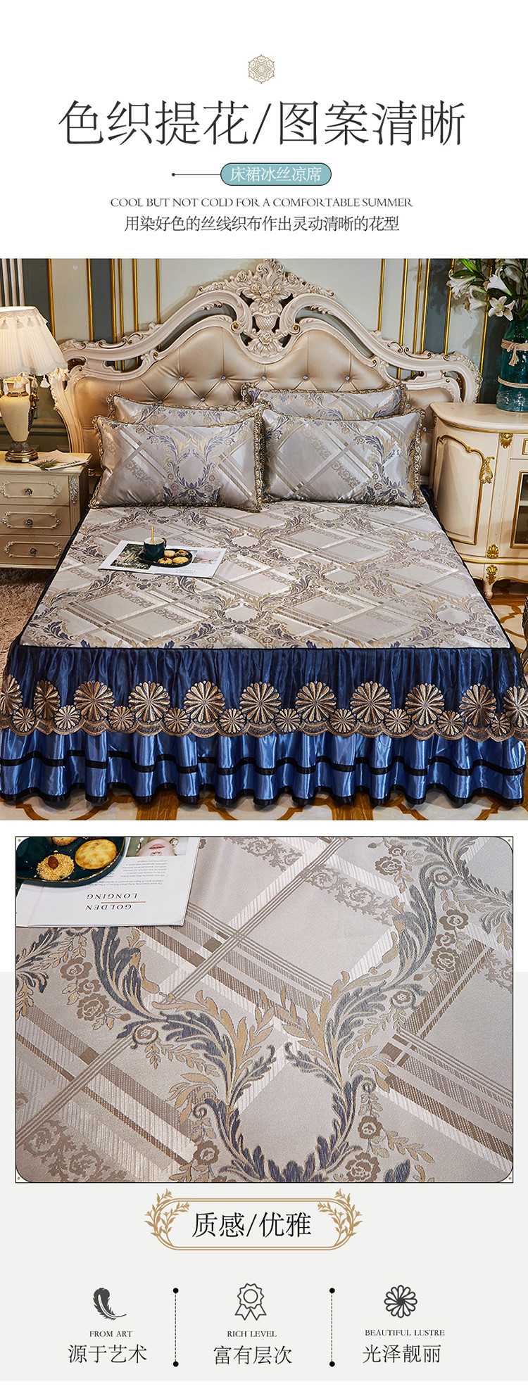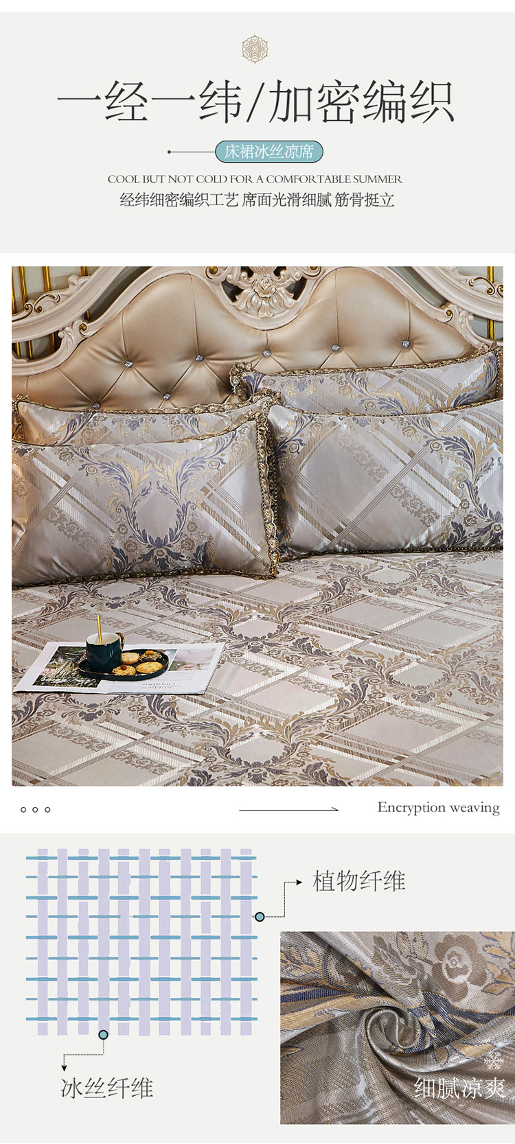 商品名称:网红馆 2025新款大提花冰丝凉席床裙款三件套 欧陆风情
