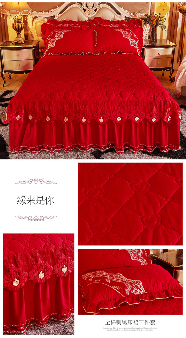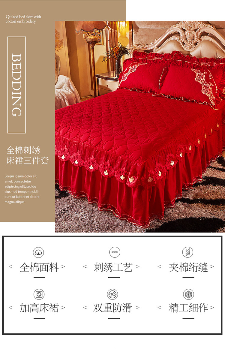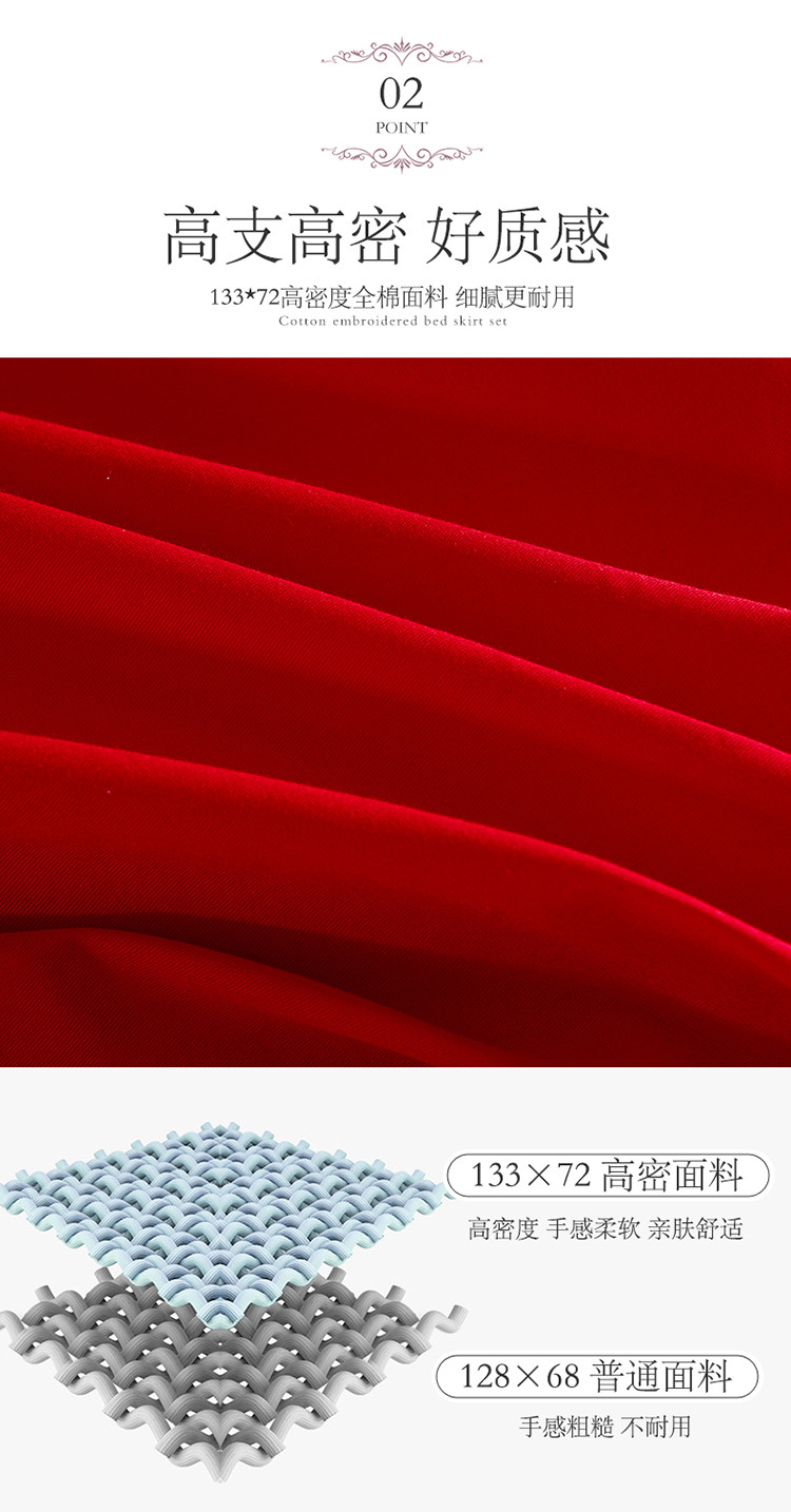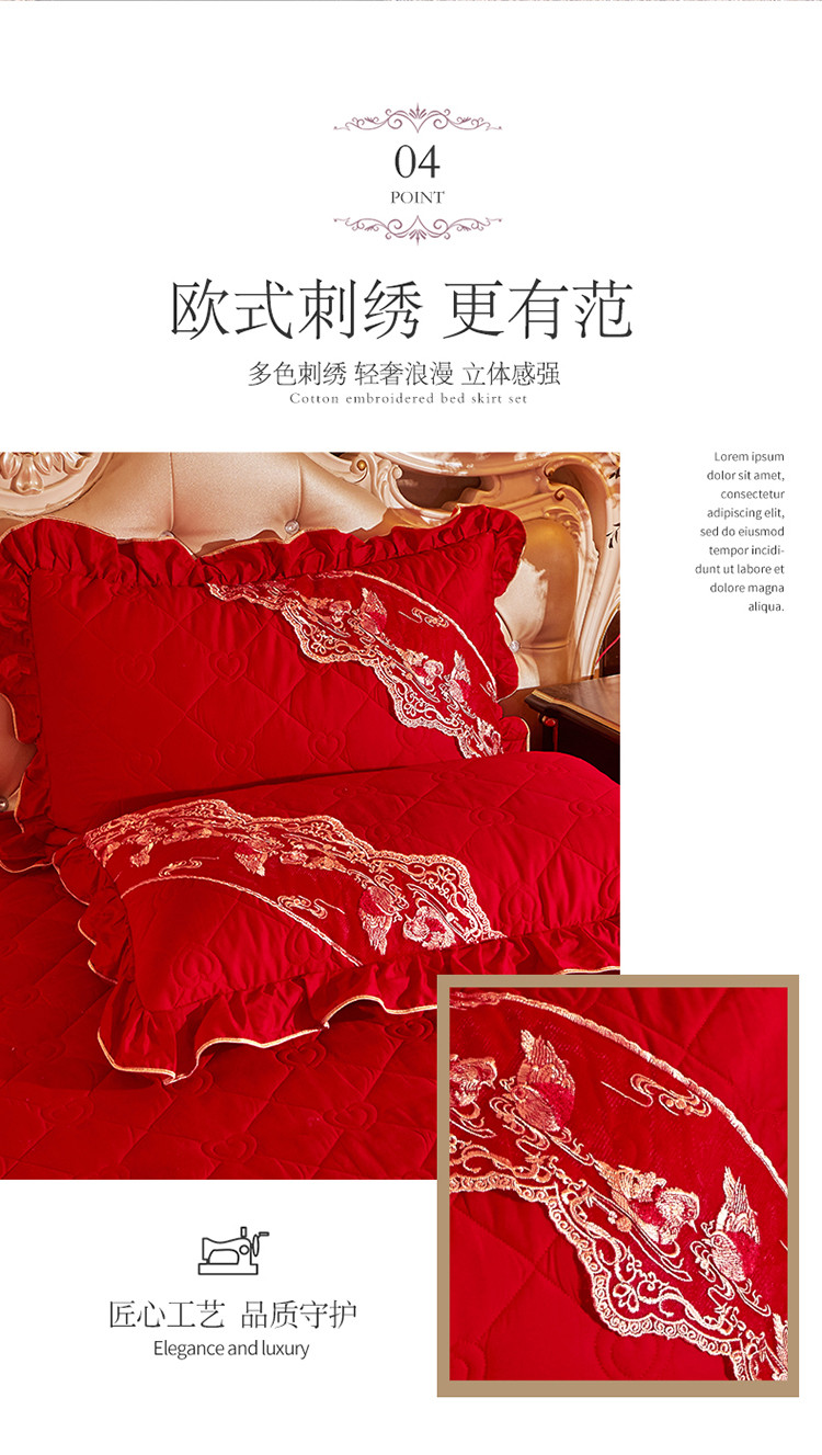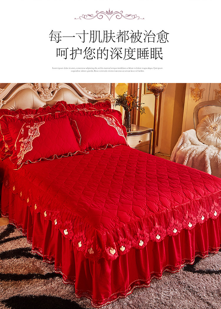 (总)宜凡家纺 2025新款婴儿绒压花全夹棉床裙四件套,韵雅-中国红,韵雅-黑天鹅