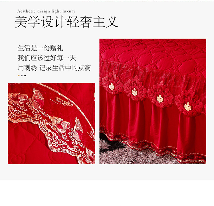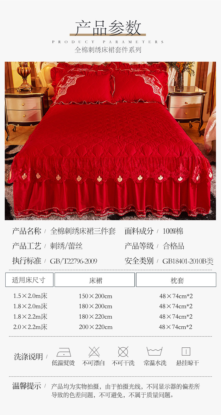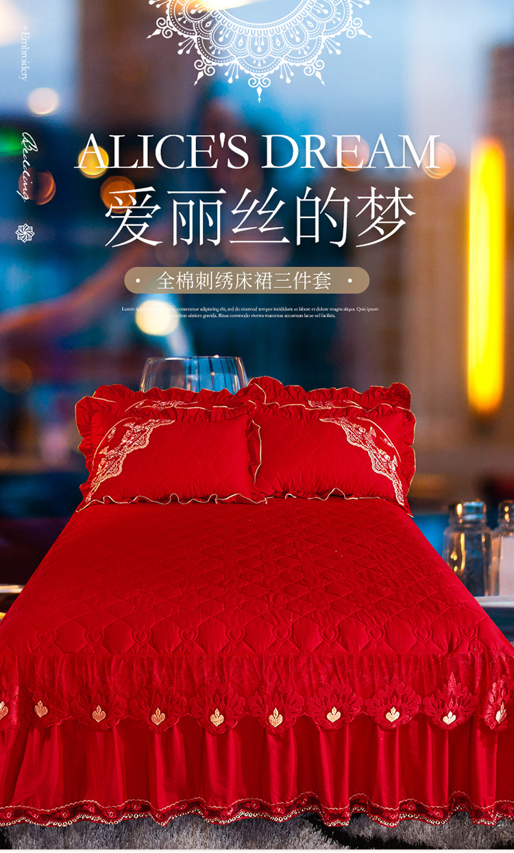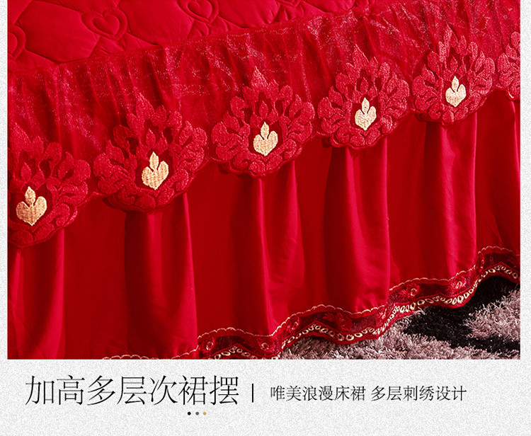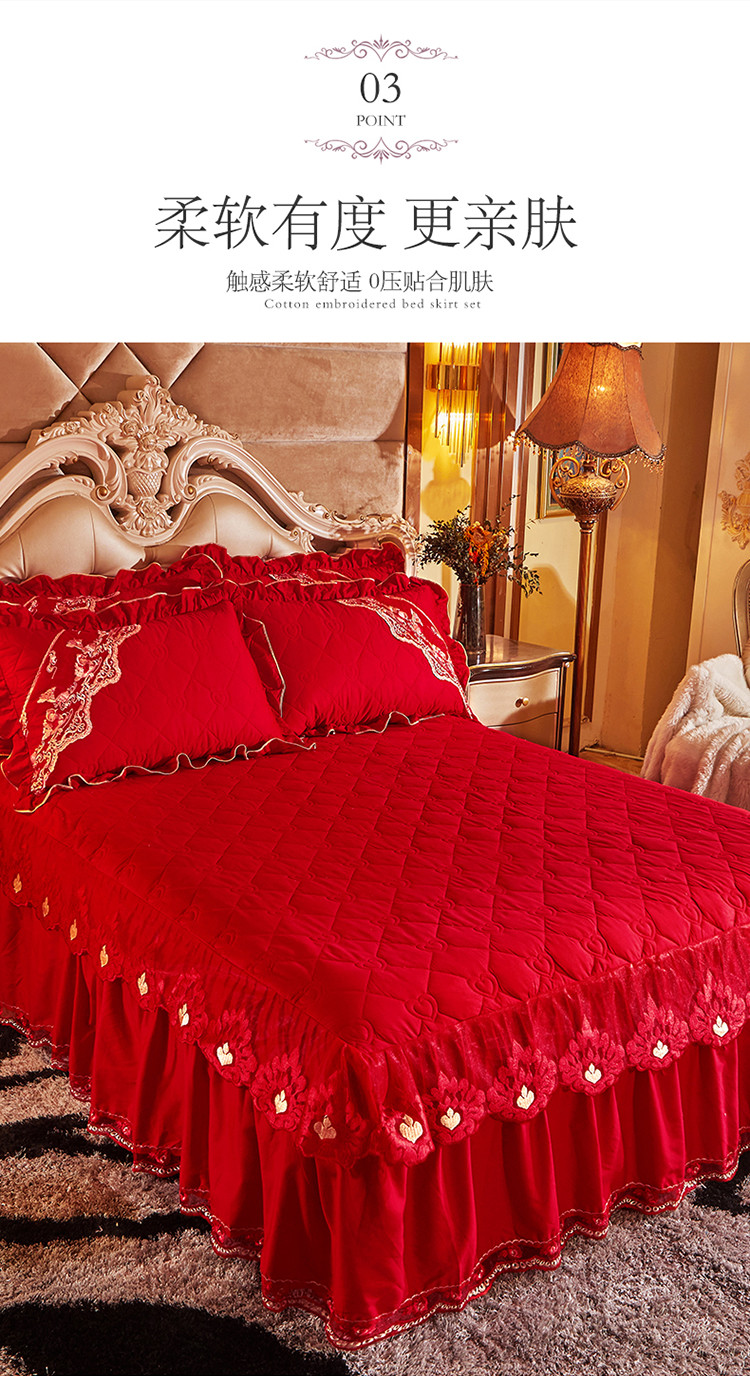 (总)宜凡家纺 2025新款婴儿绒压花全夹棉床裙四件套,韵雅-中国红,韵雅-黑天鹅